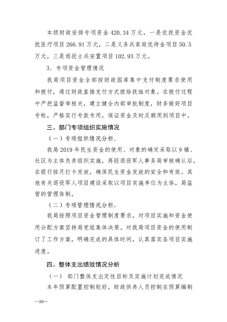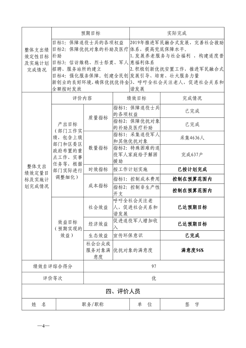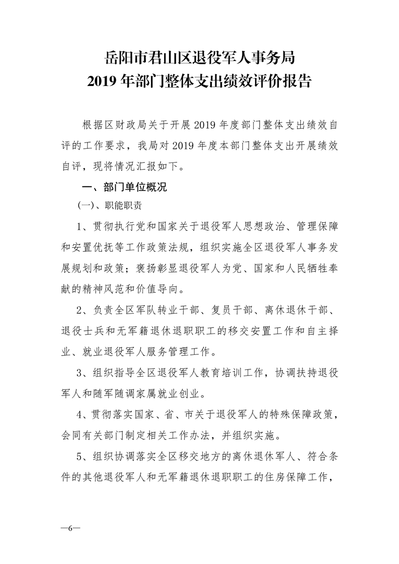 君山区2019年度退役军人事务局整体支出绩效评价自评报告