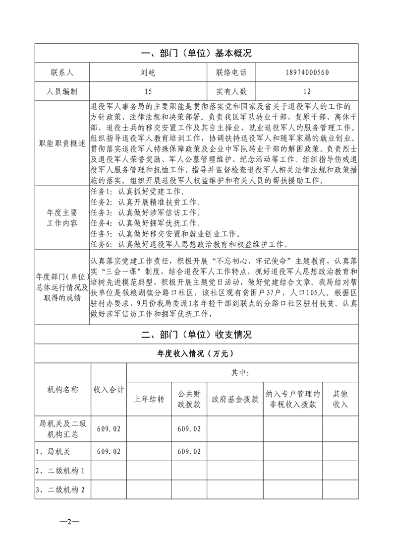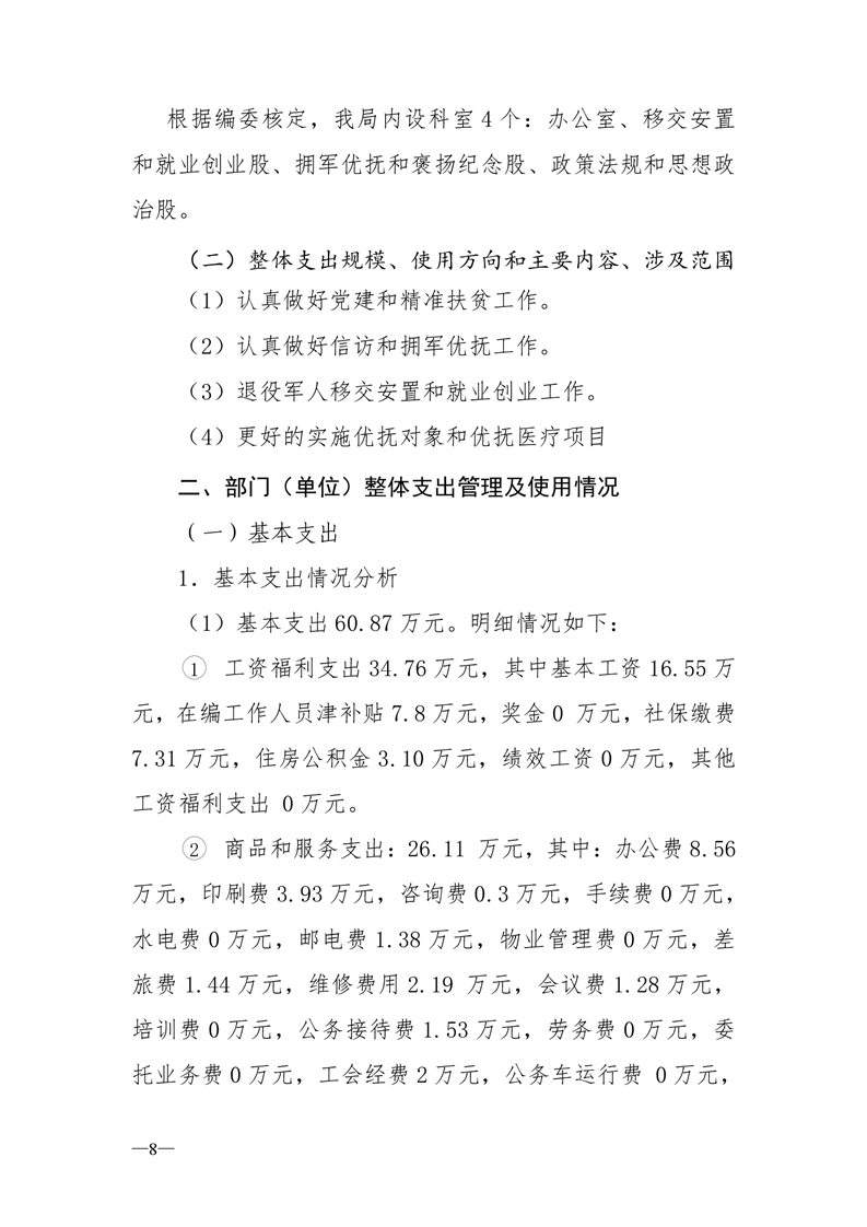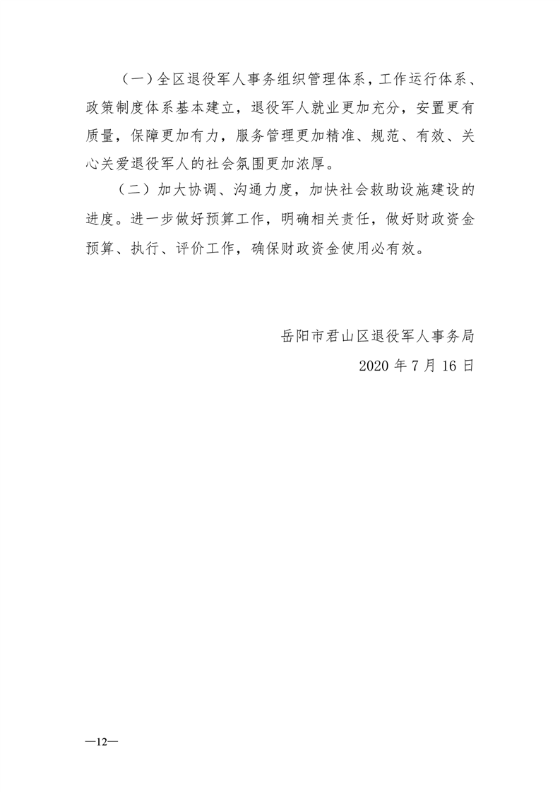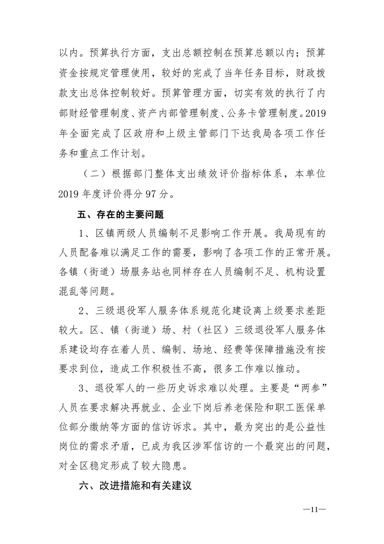 君山区2019年度退役军人事务局整体支出绩效评价自评报告