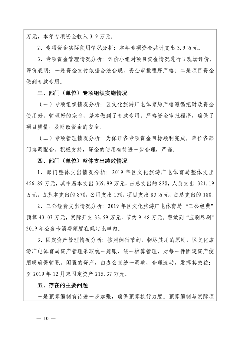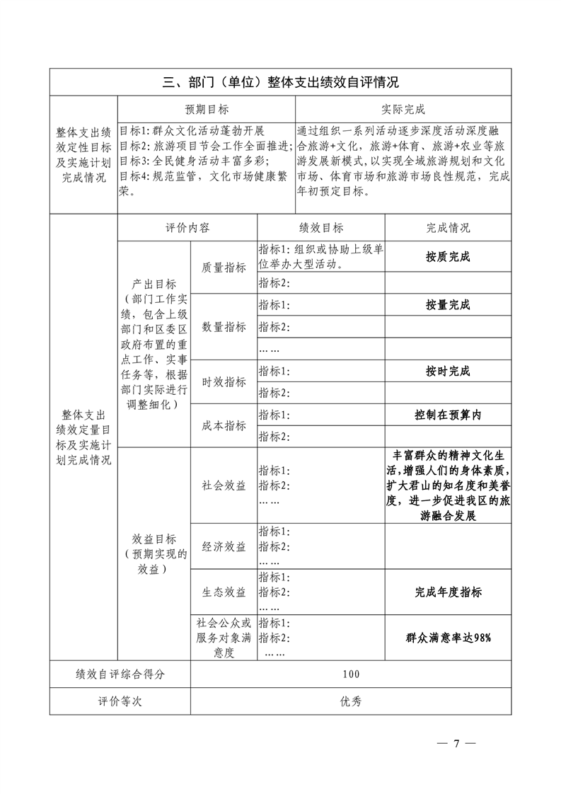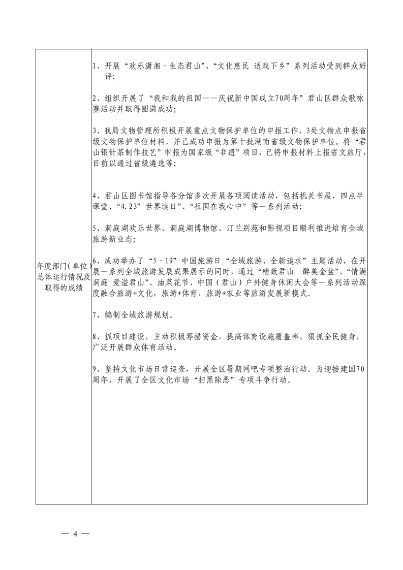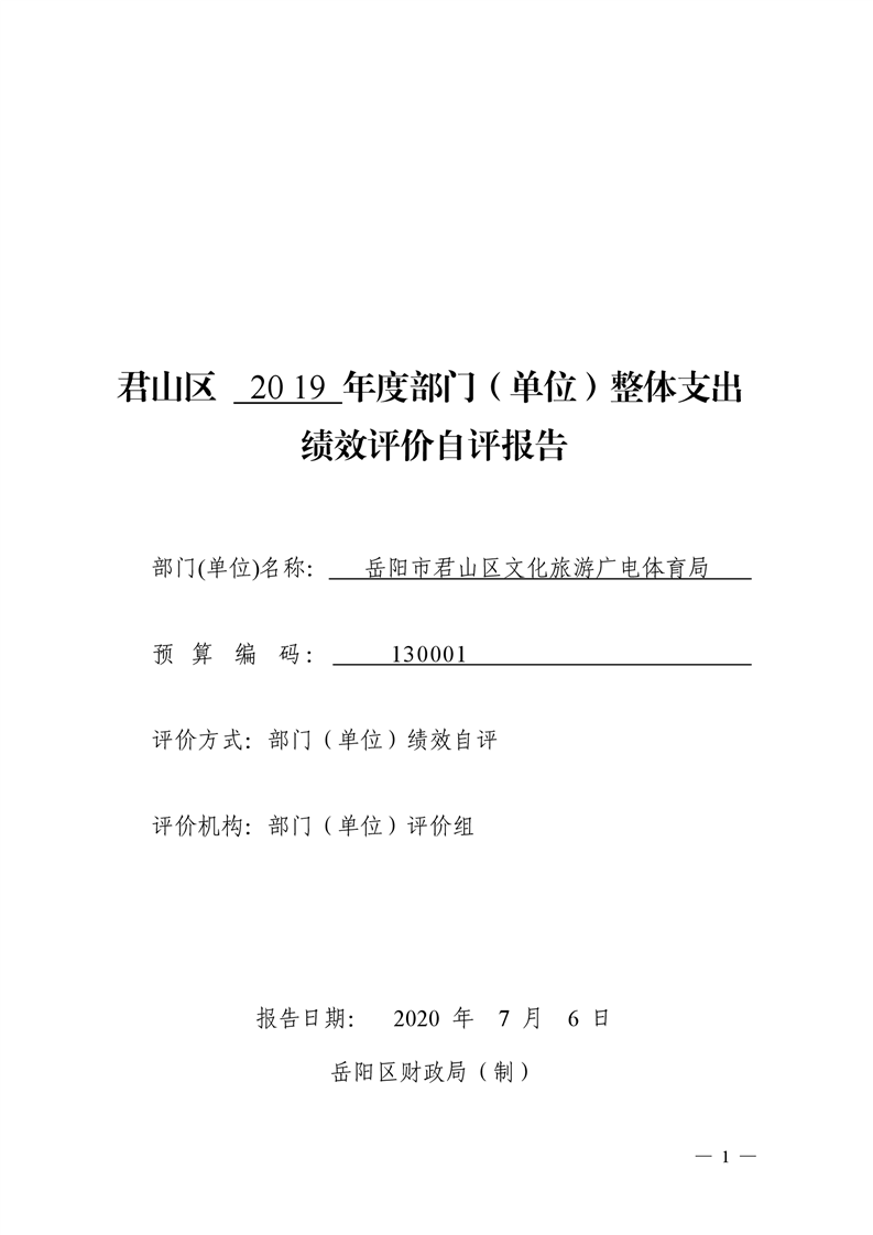 君山区2019年度文旅广体局整体支出绩效评价自评报告