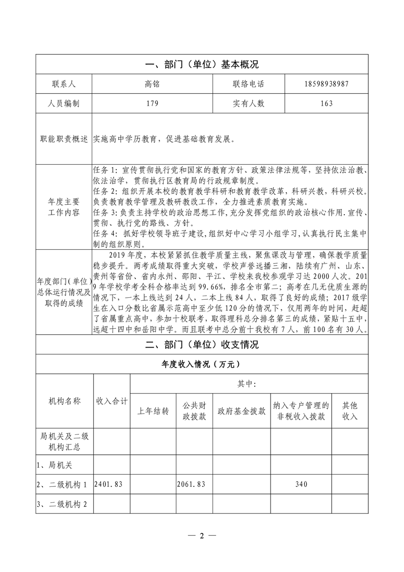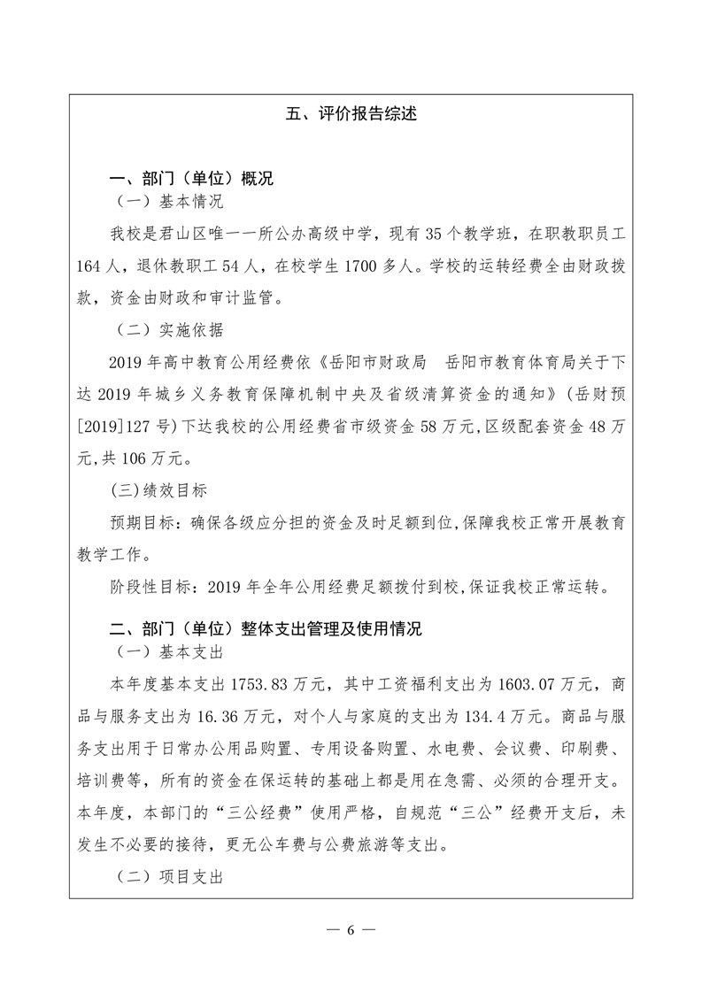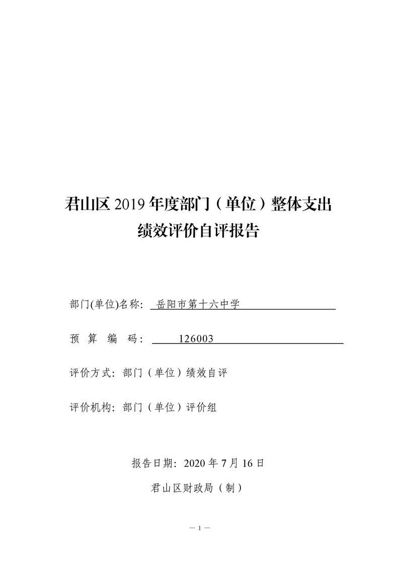 君山区2019年度岳阳市第十六中学整体支出绩效评价自评报告