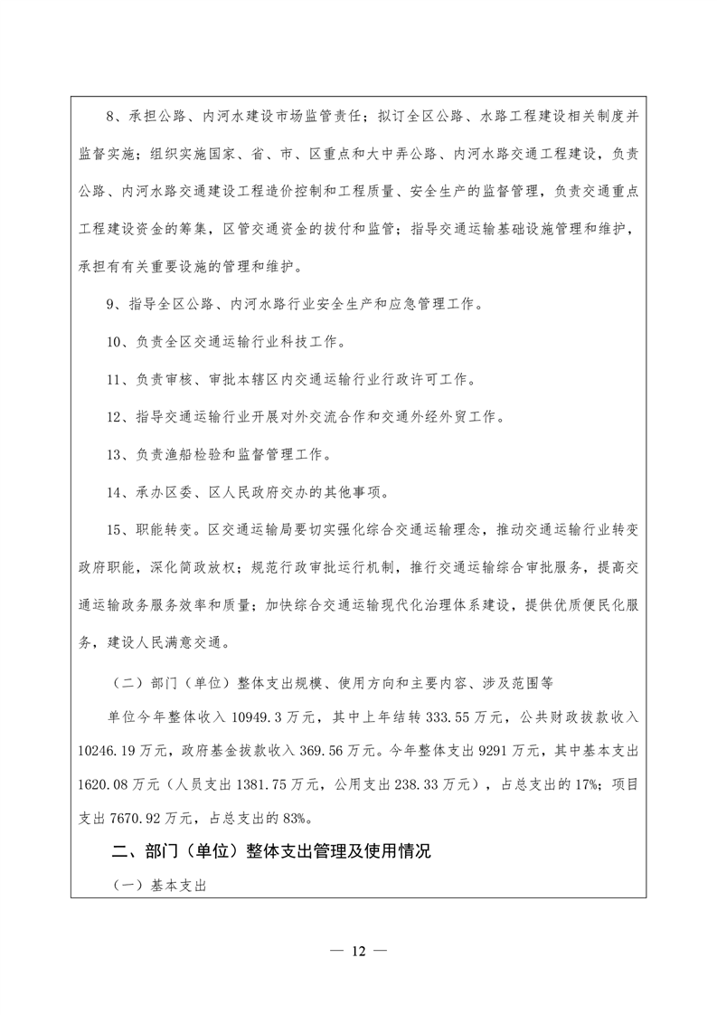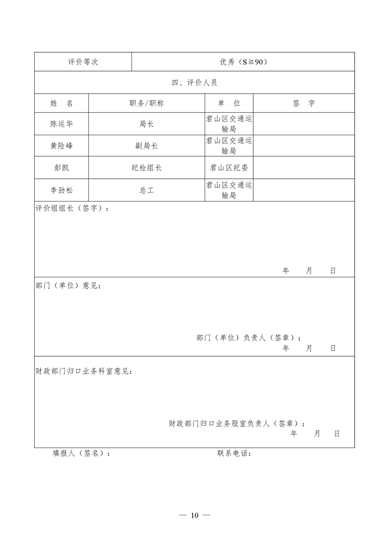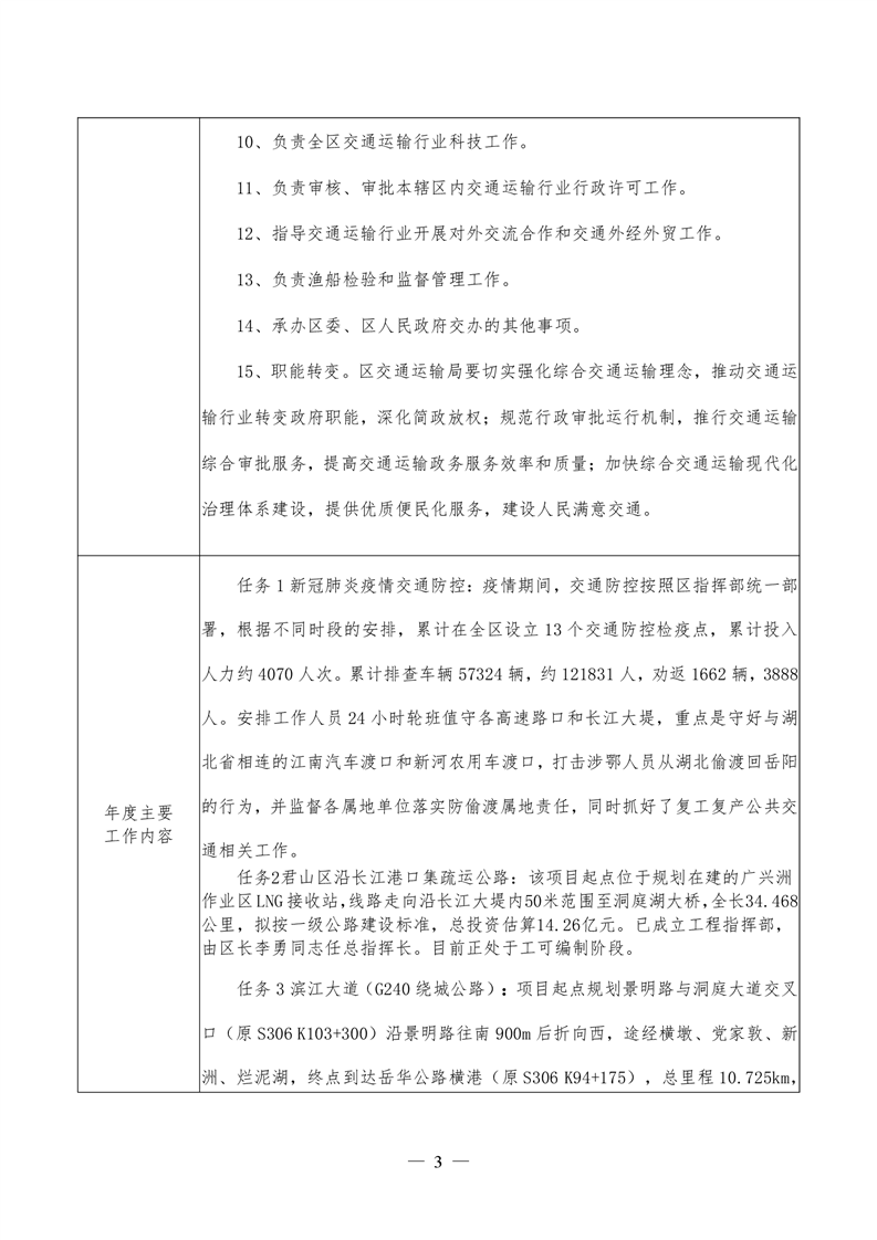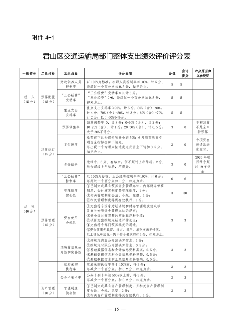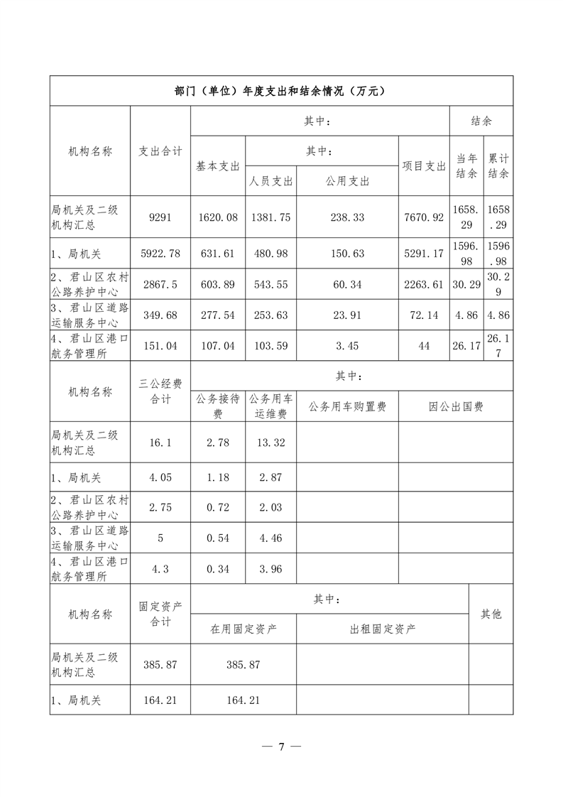 君山区2020年度交通运输局整体支出绩效评价自评报告