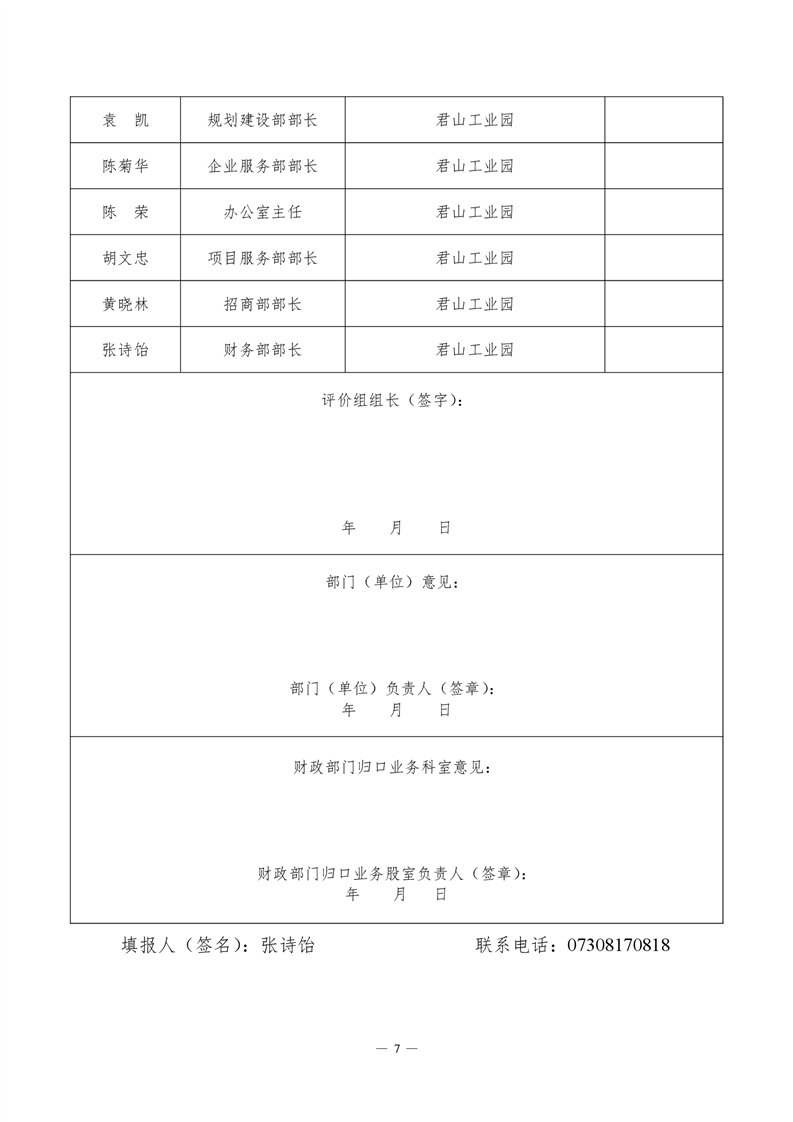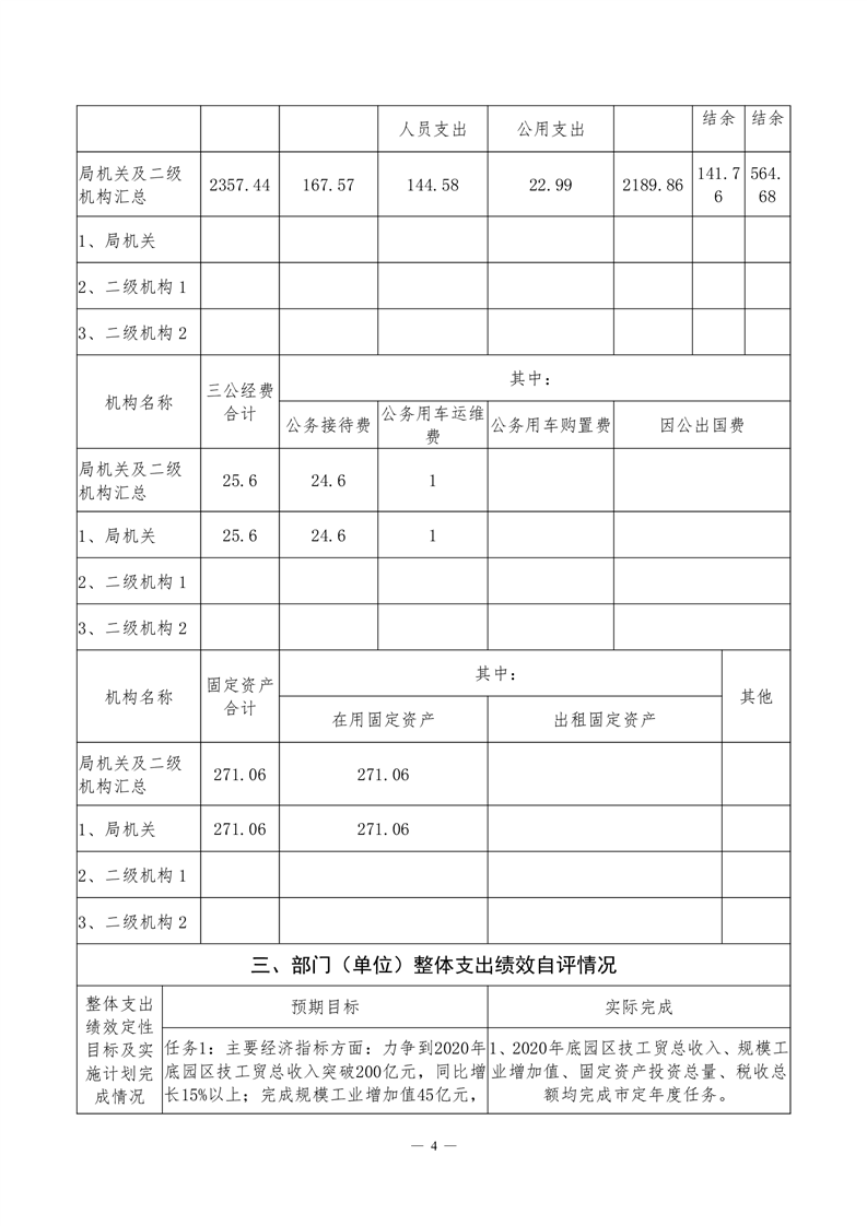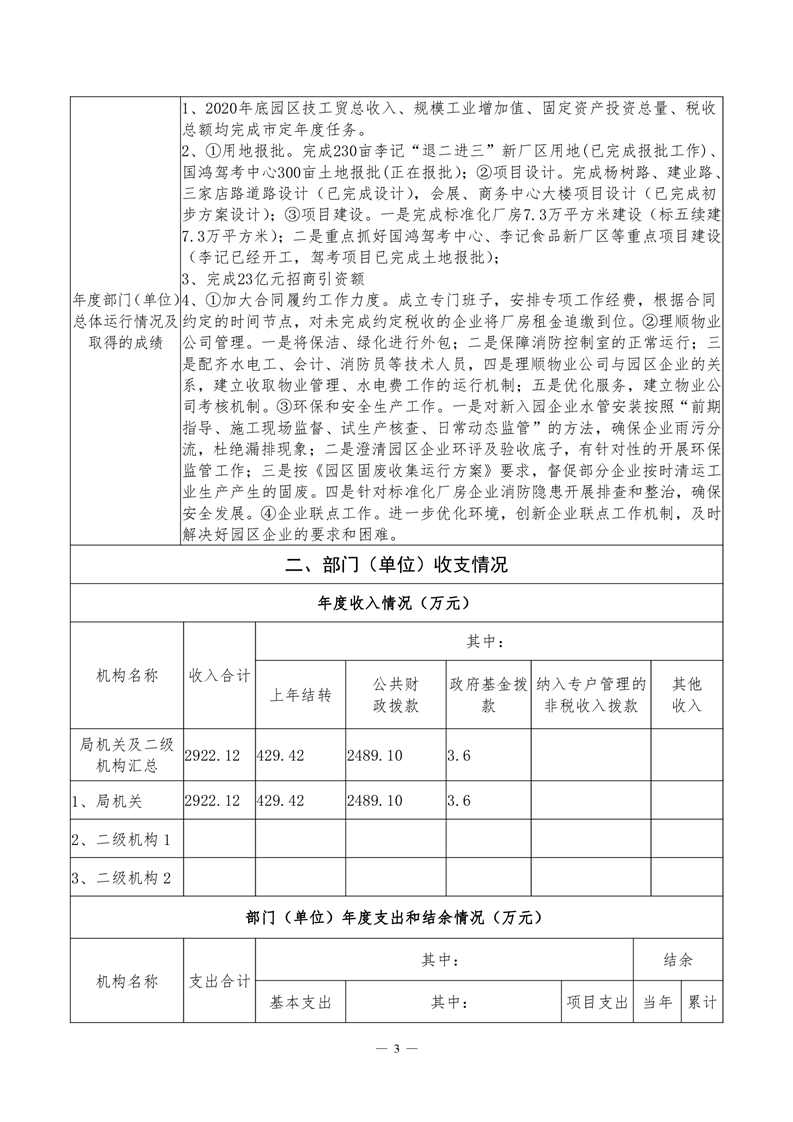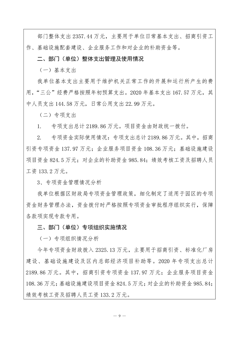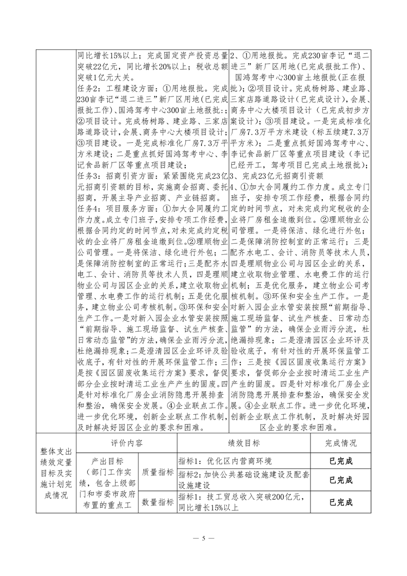 君山区2020年度工业园管委会整体支出绩效评价自评报告