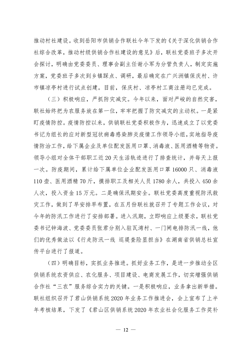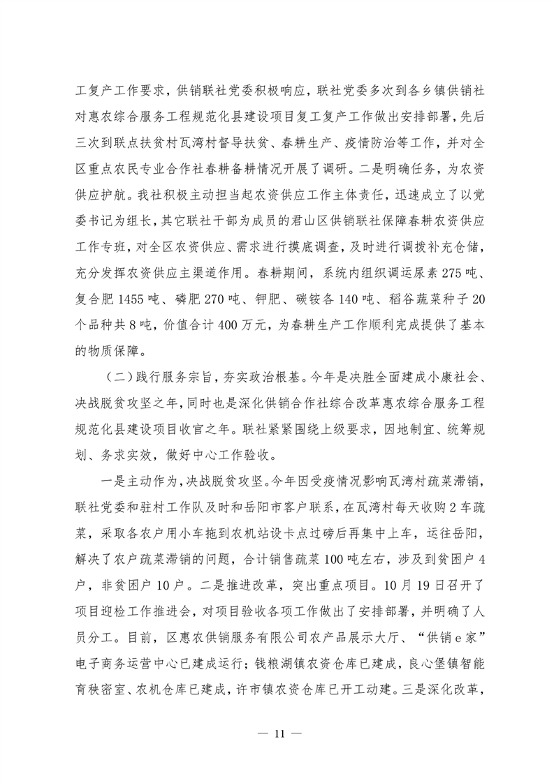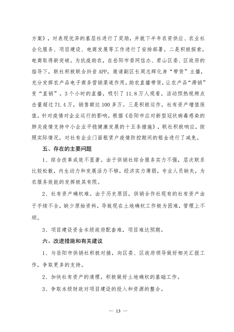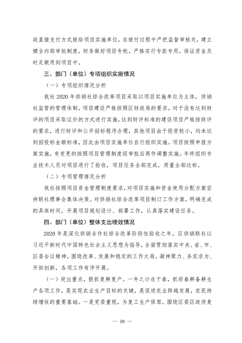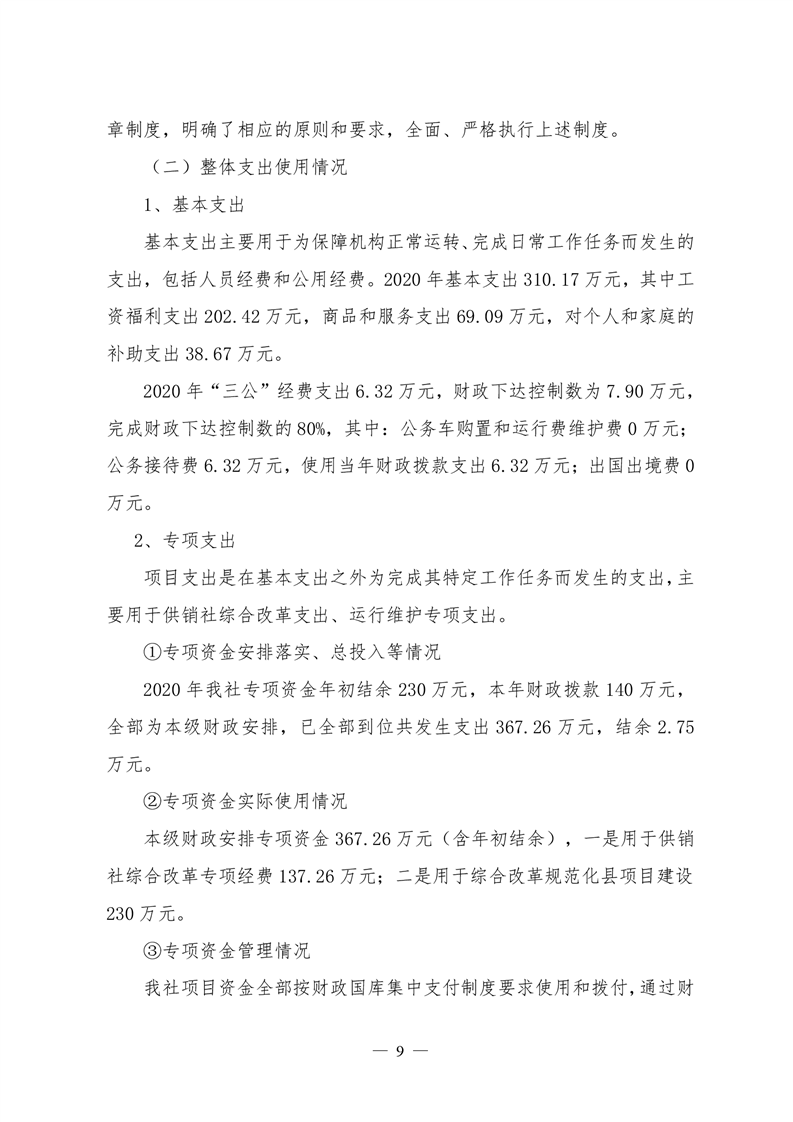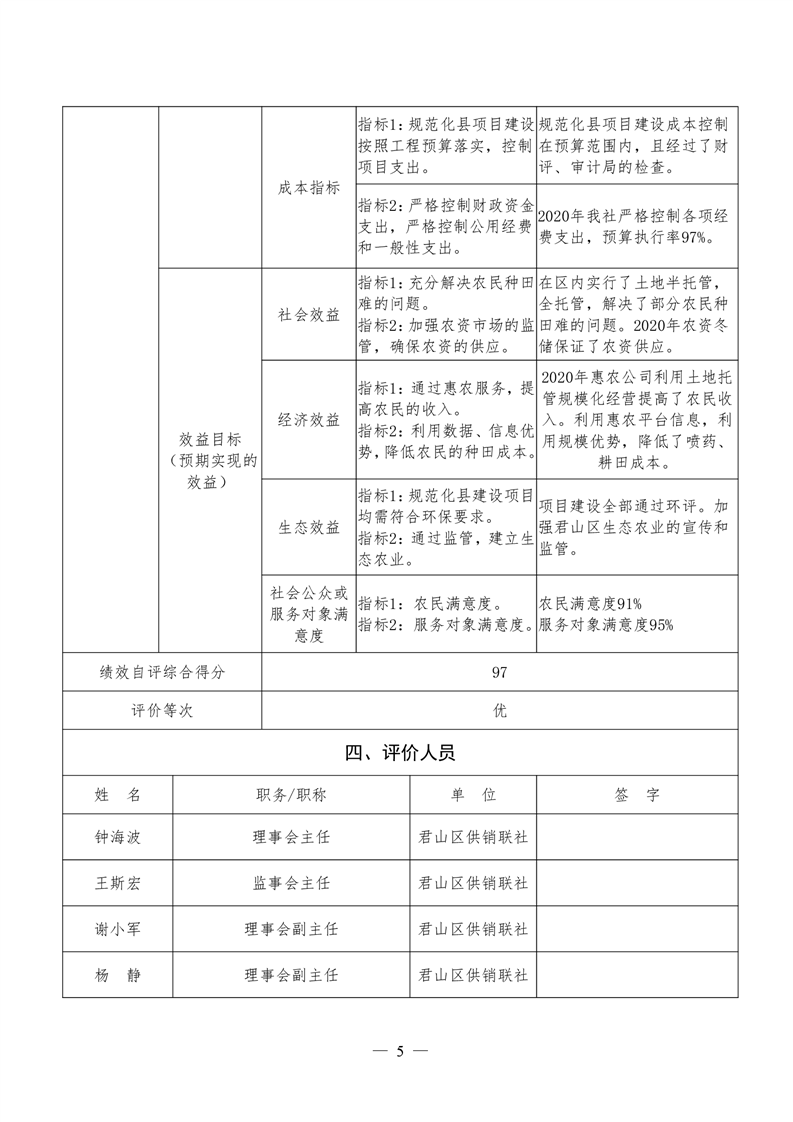 君山区2020年度供销合作联社整体支出绩效评价自评报告