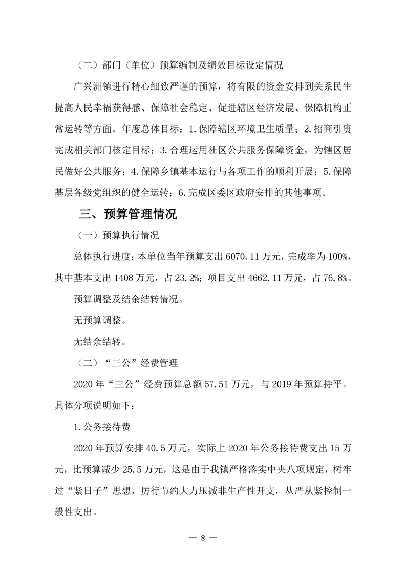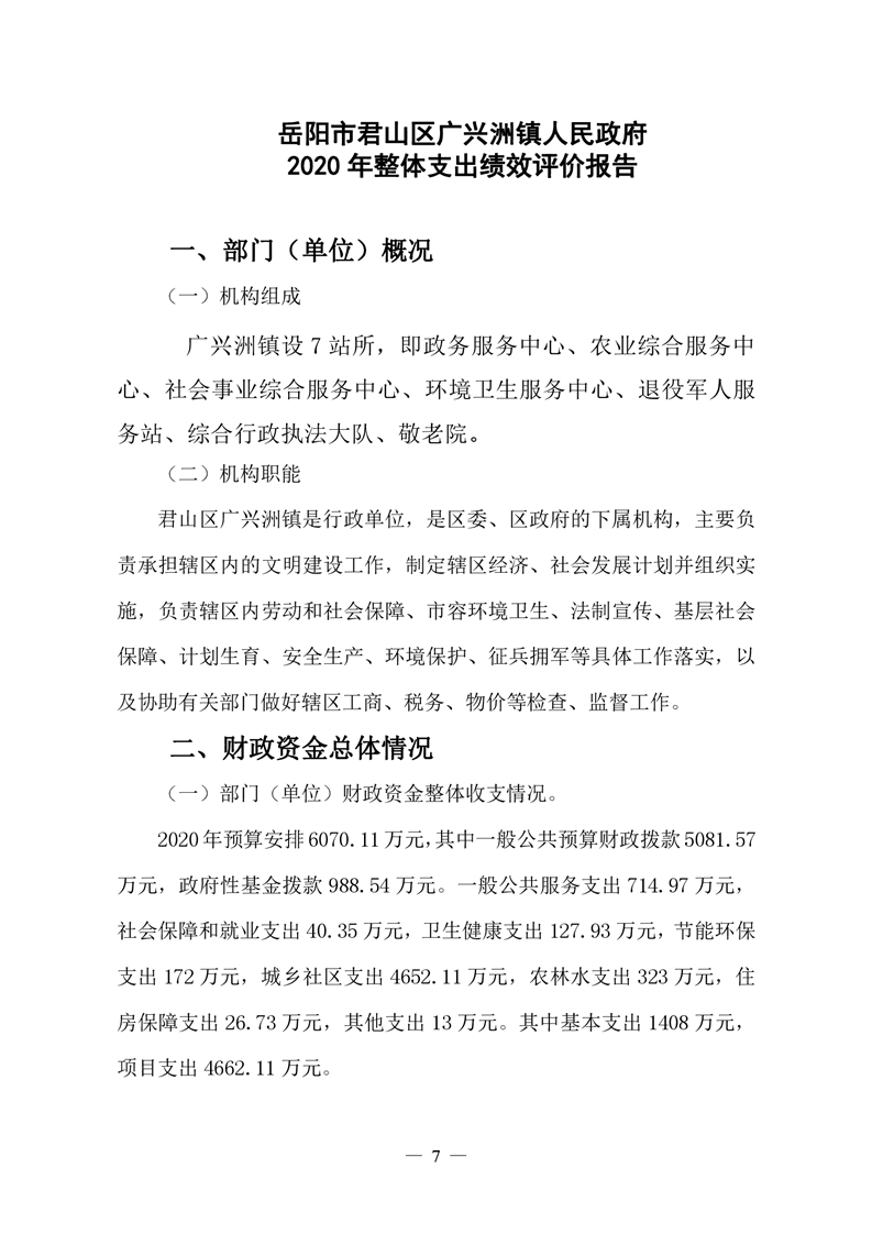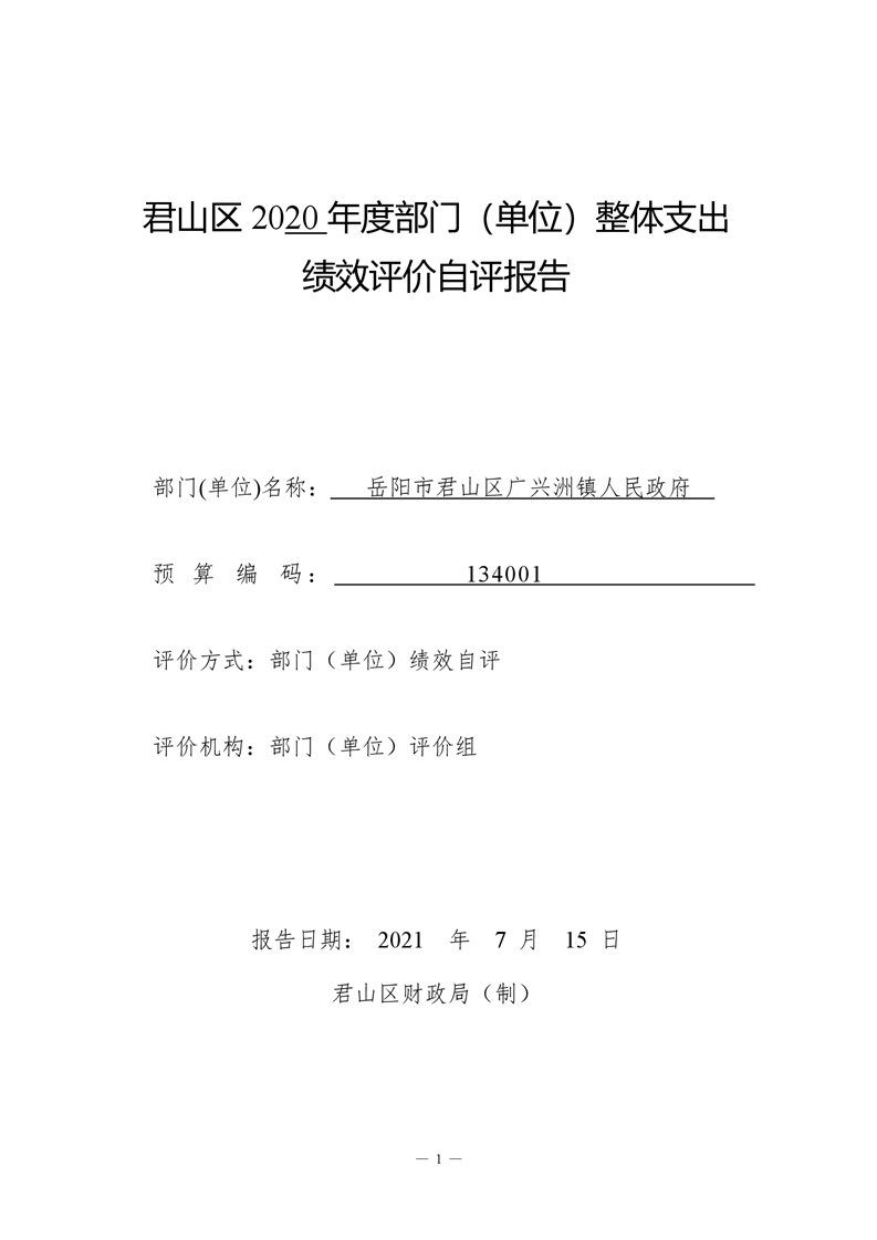君山区2020年度广兴洲镇整体支出绩效评价自评报告