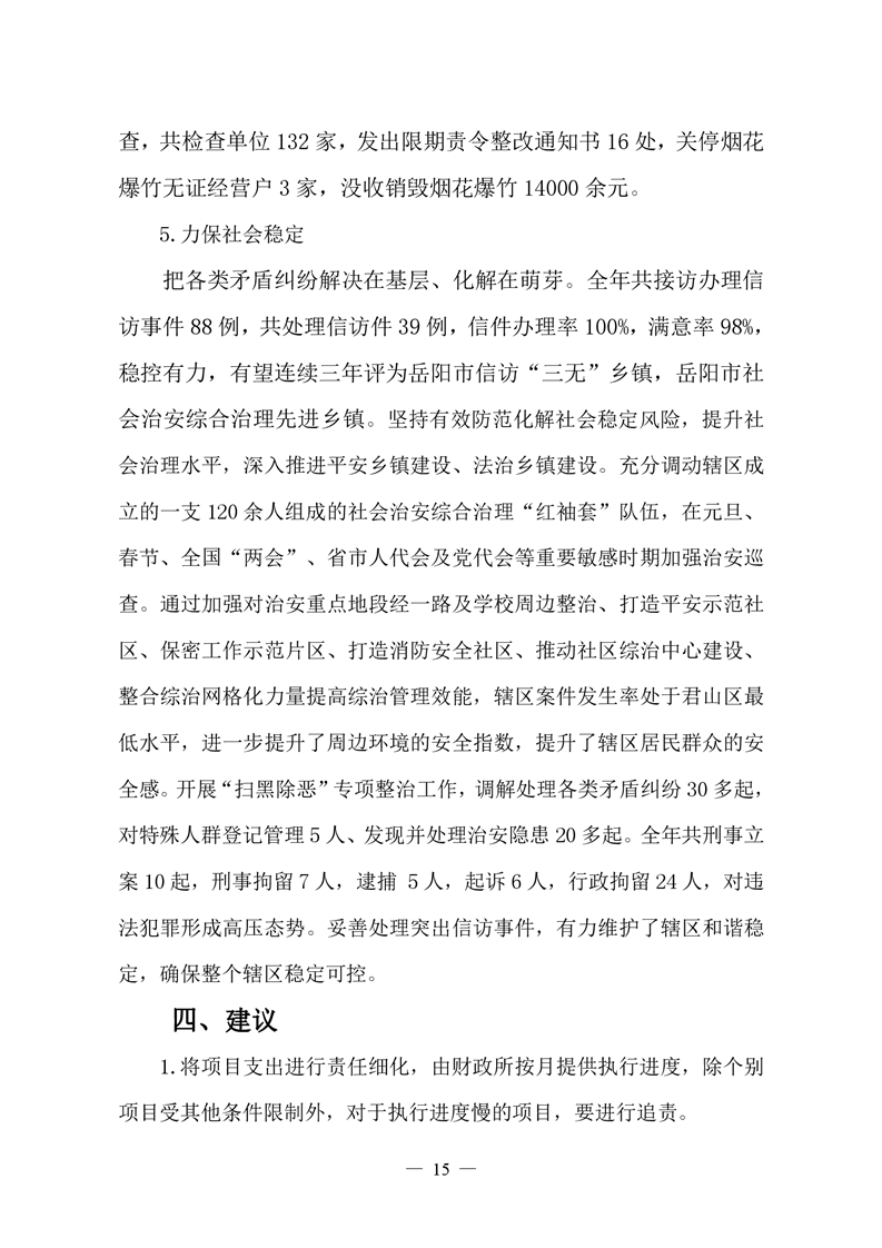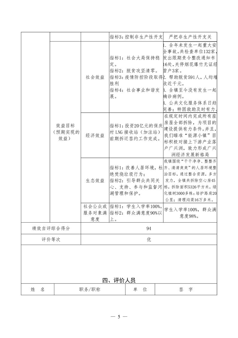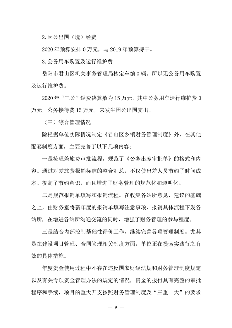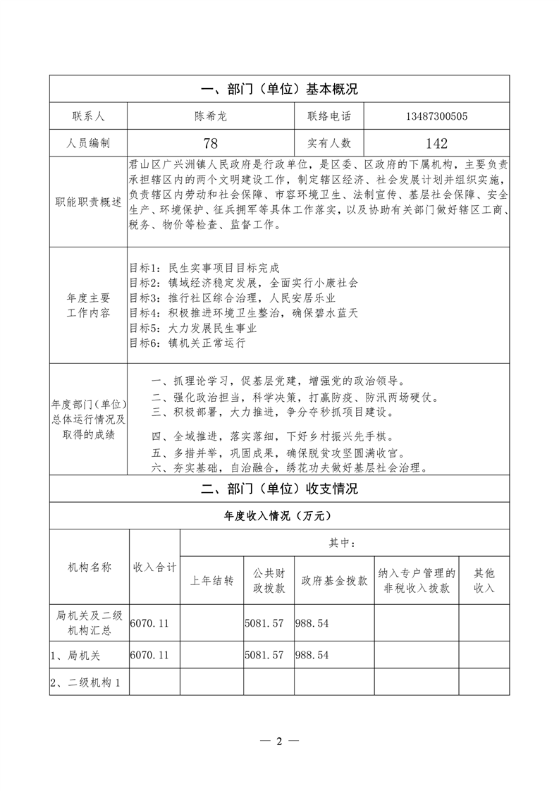 君山区2020年度广兴洲镇整体支出绩效评价自评报告
