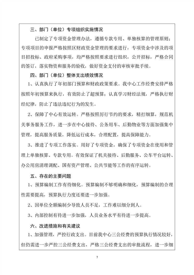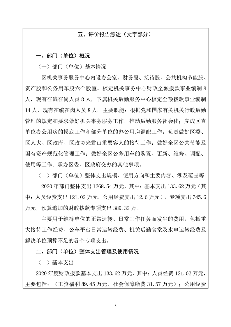 君山区2020年度机关事务服务中心整体支出绩效评价自评报告
