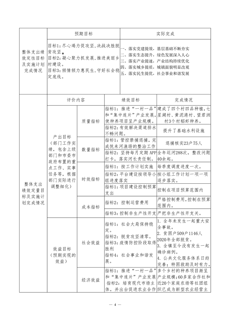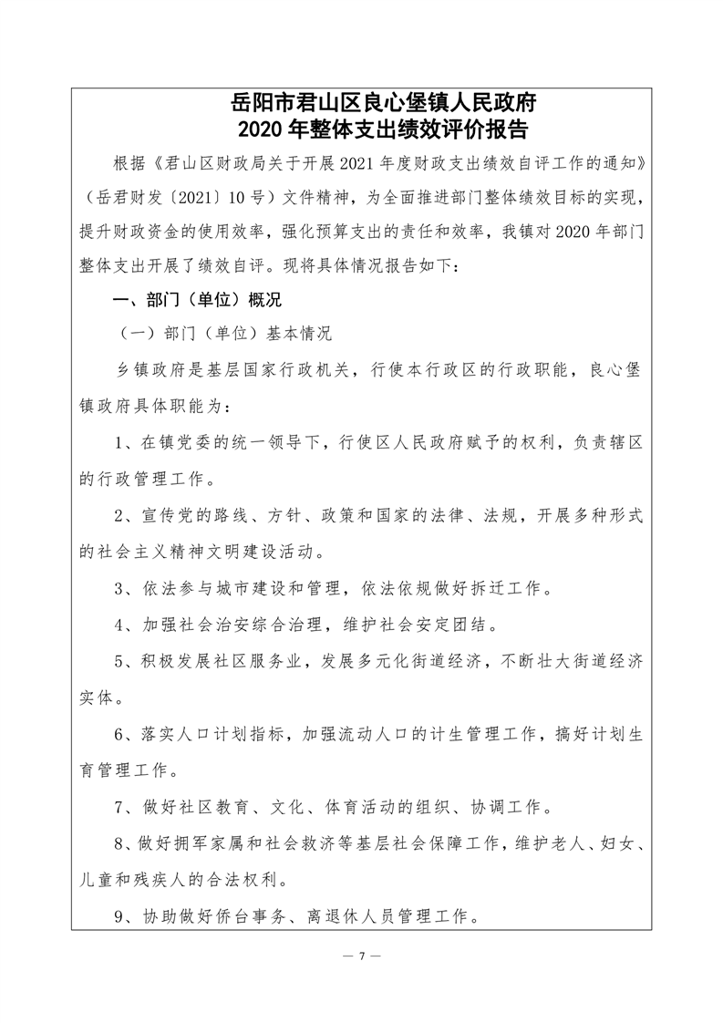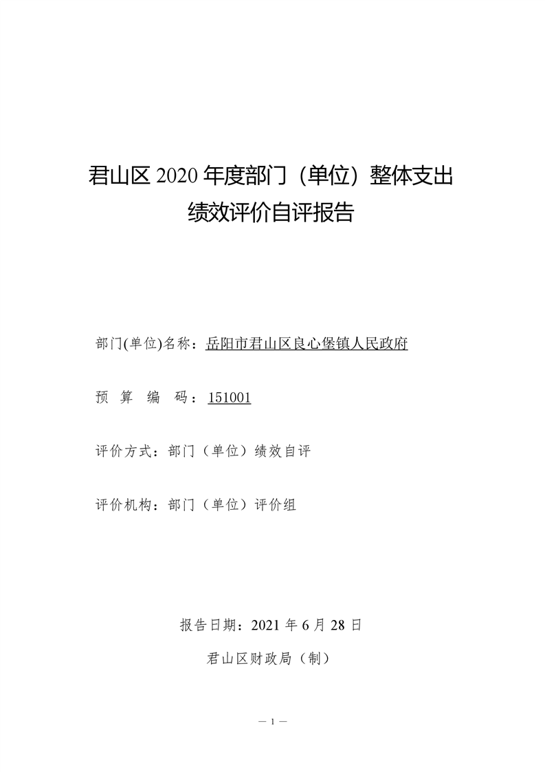 君山区2020年度良心堡镇整体支出绩效评价自评报告