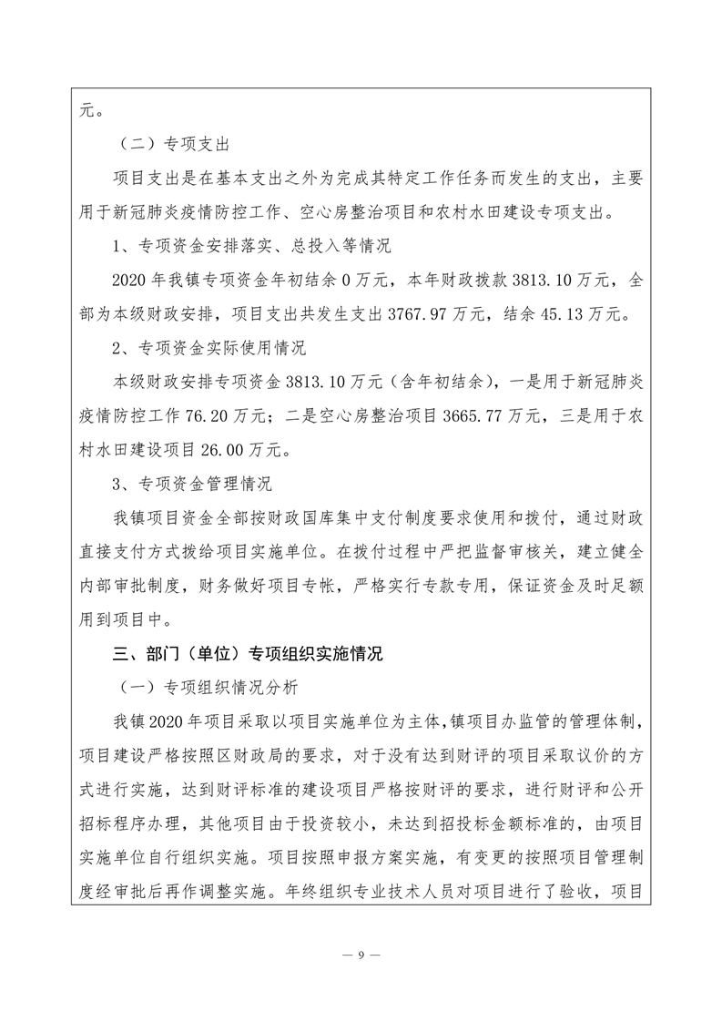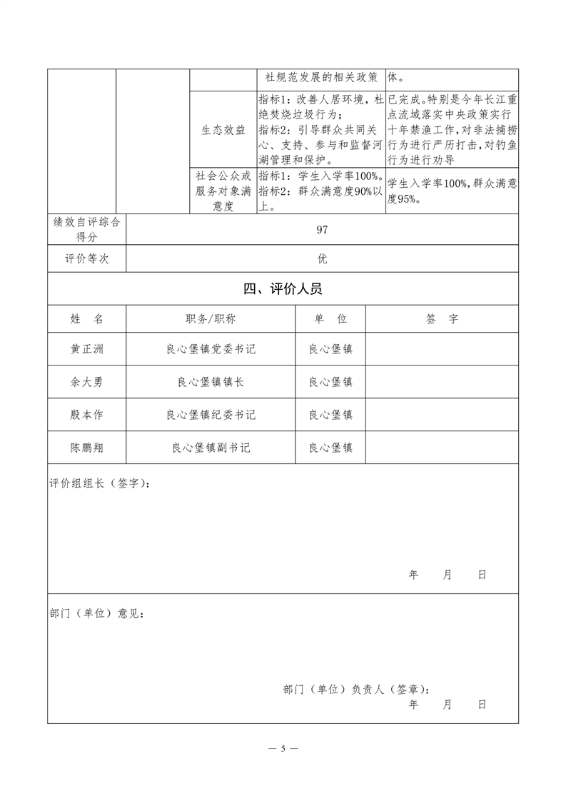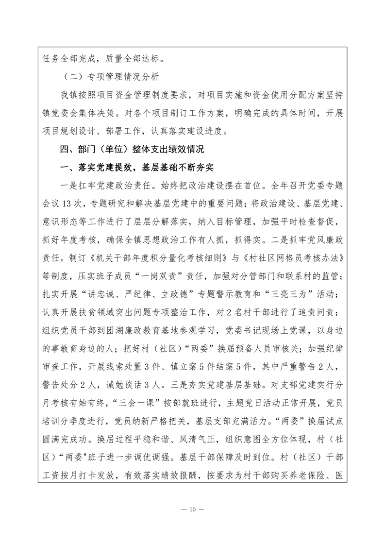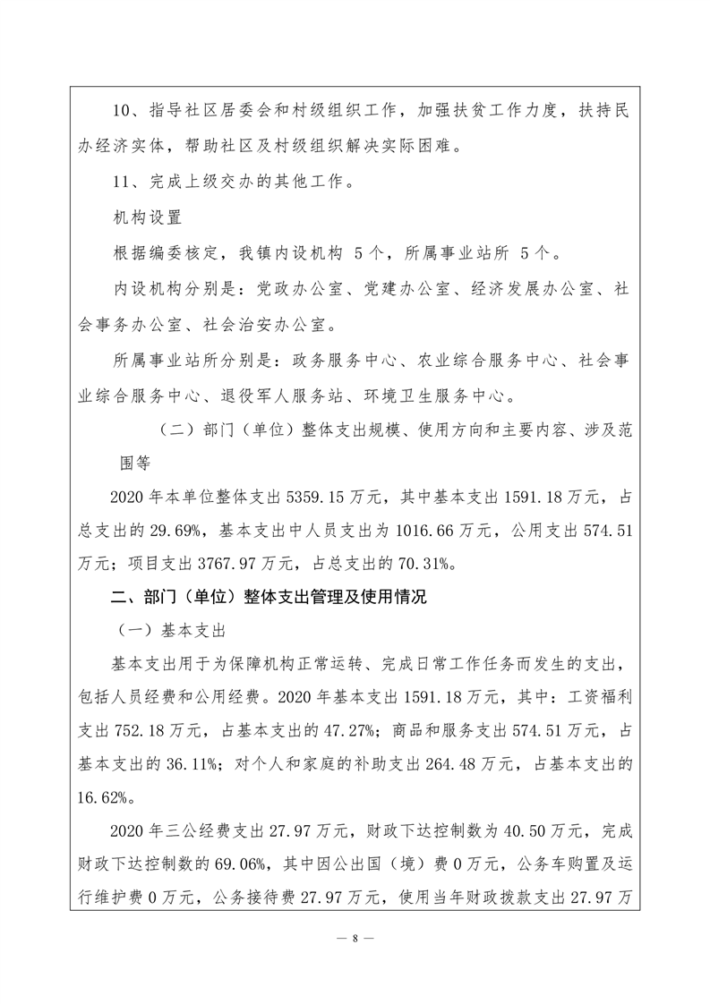 君山区2020年度良心堡镇整体支出绩效评价自评报告