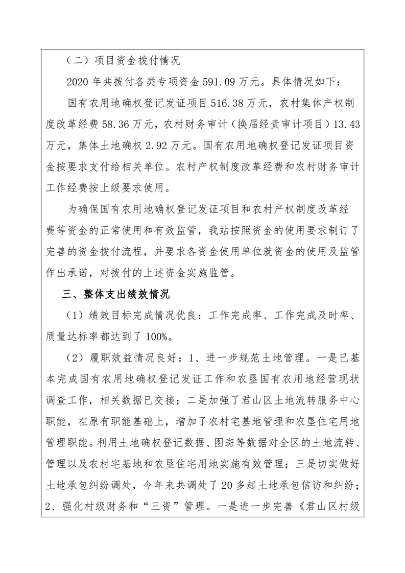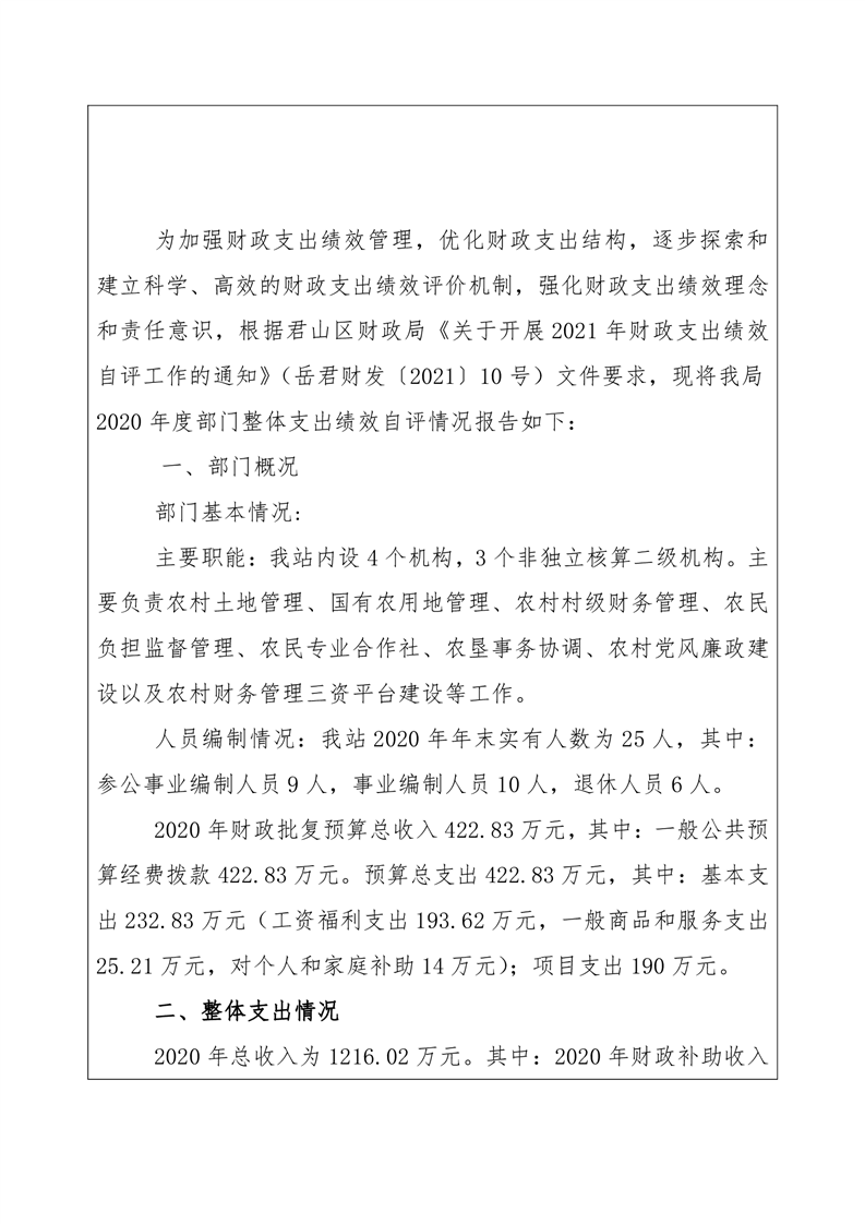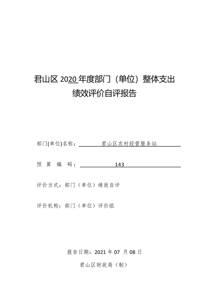 君山区2020年度农村经营服务站局整体支出绩效评价自评报告