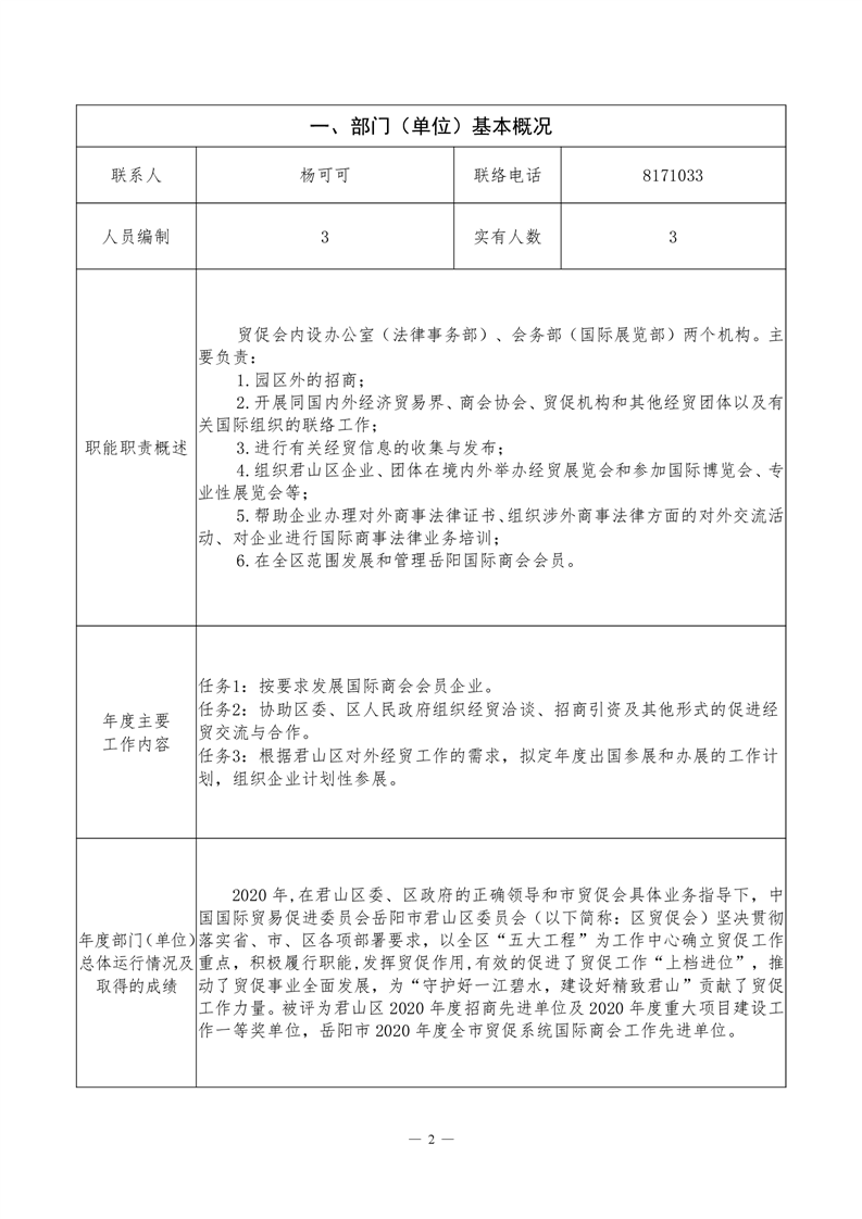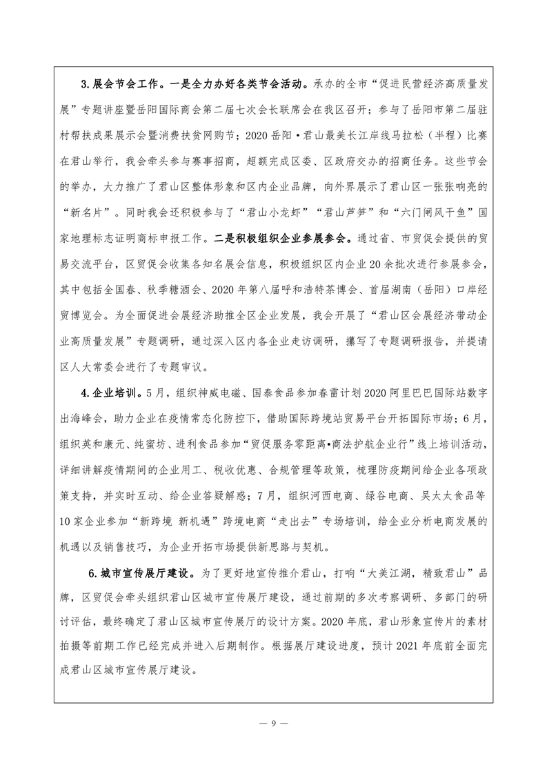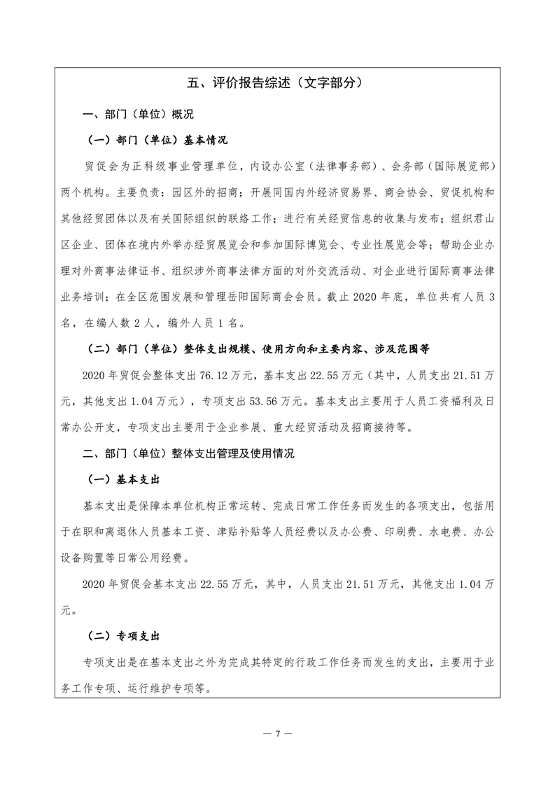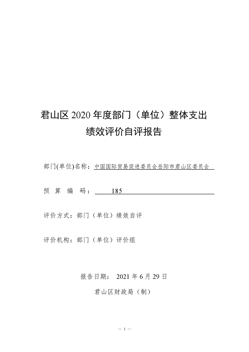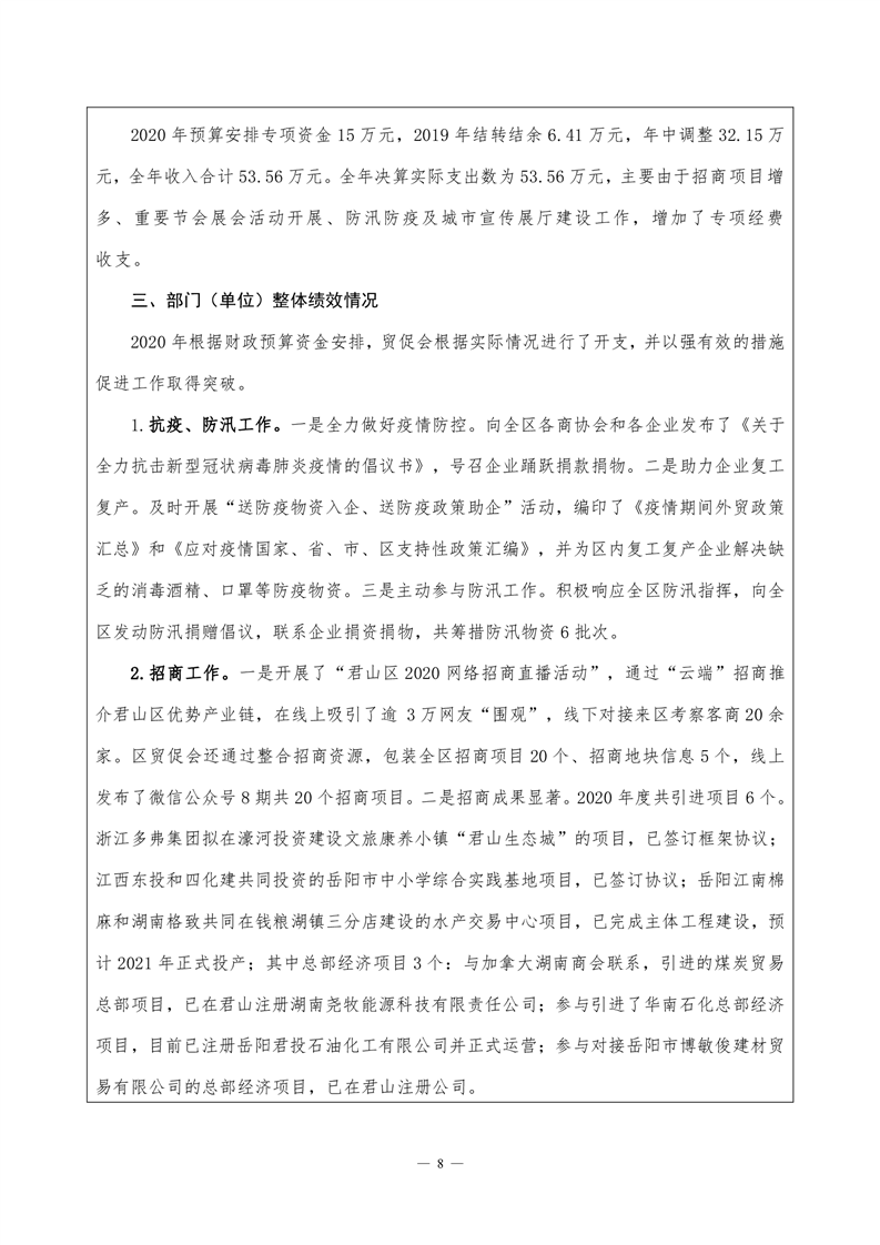 君山区2020年度贸促会整体支出绩效评价自评报告