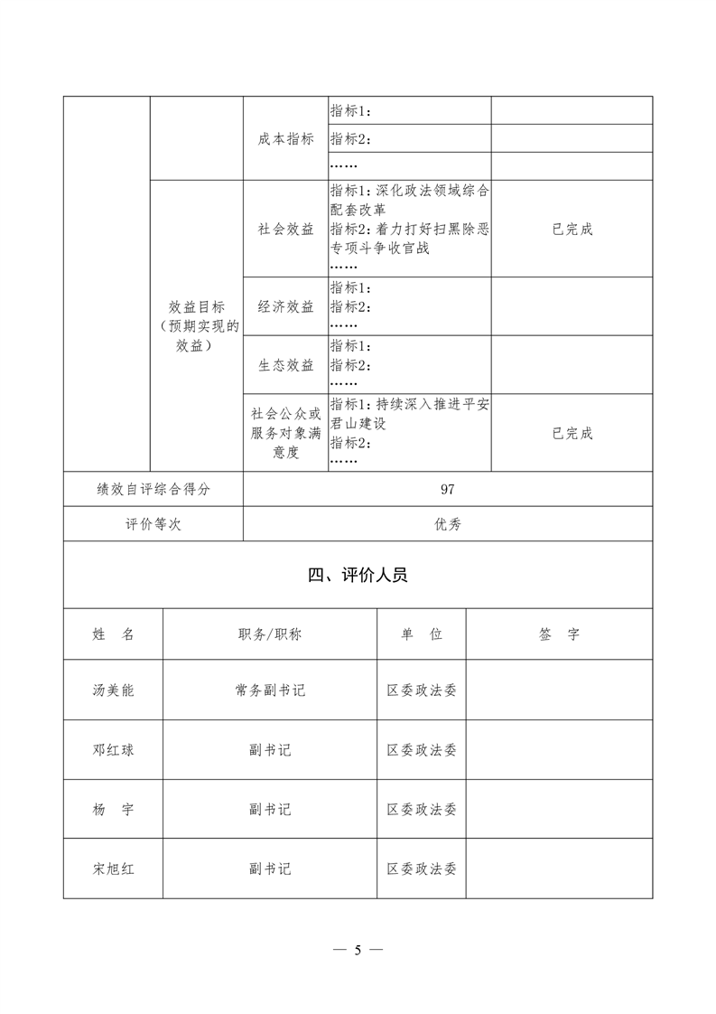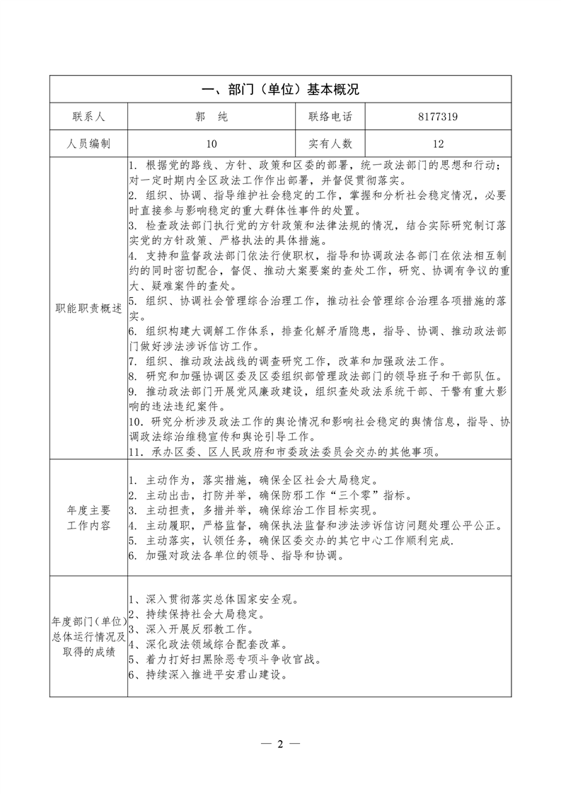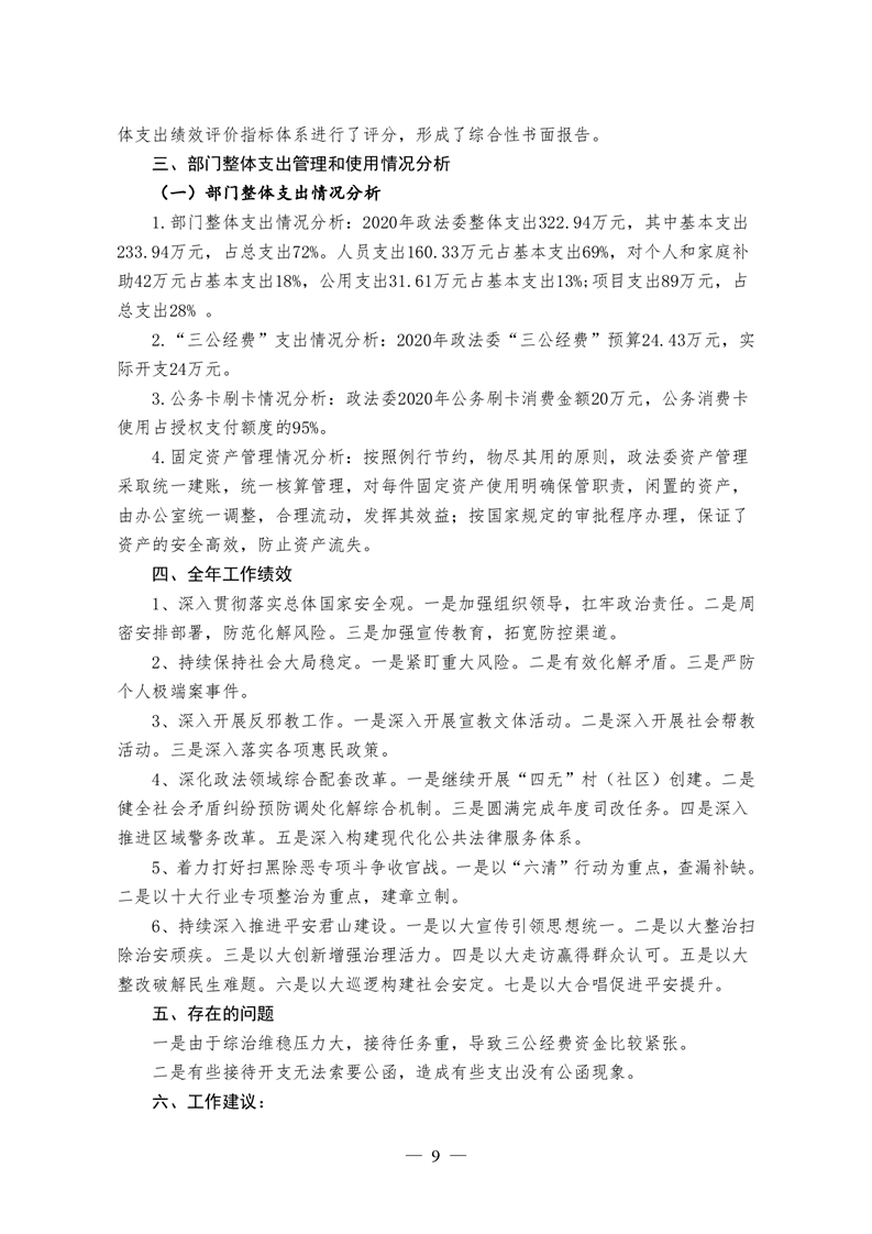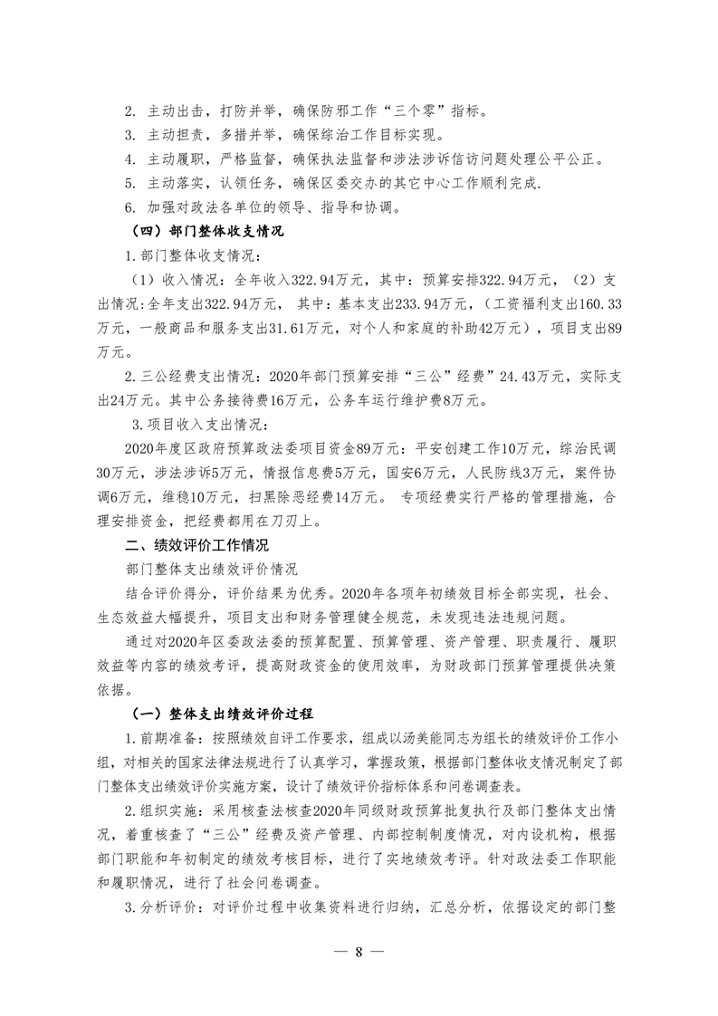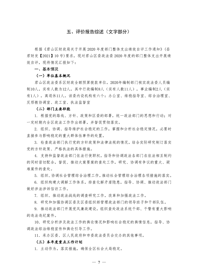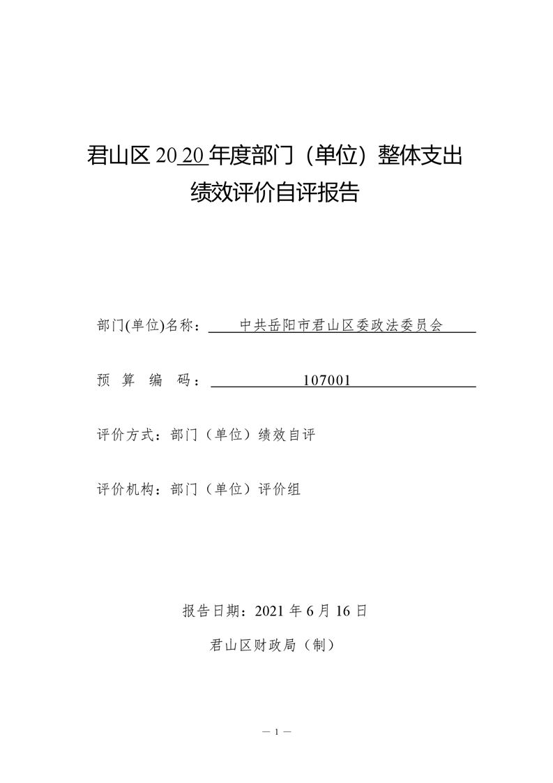 君山区2020年度区委政法委整体支出绩效评价自评报告