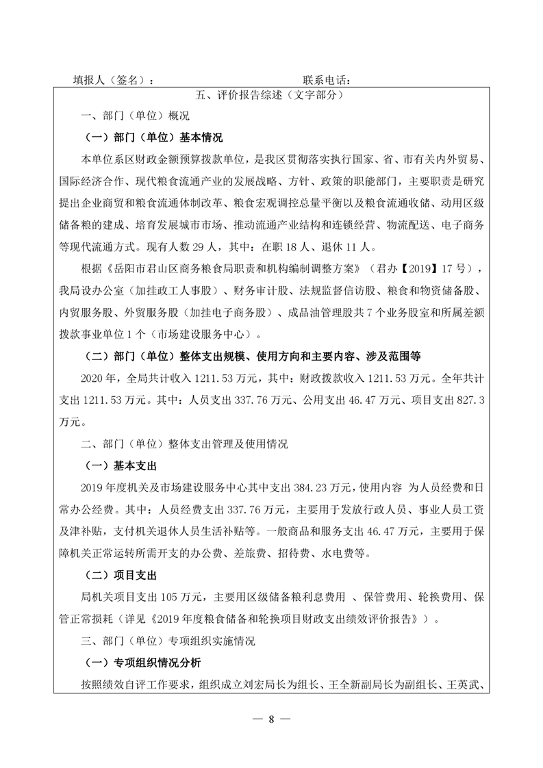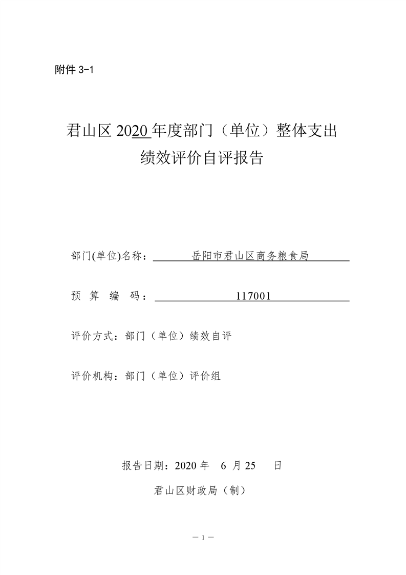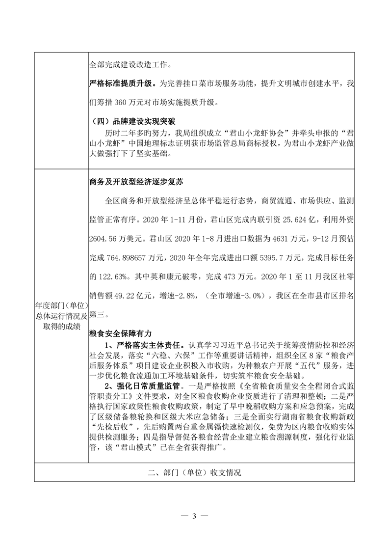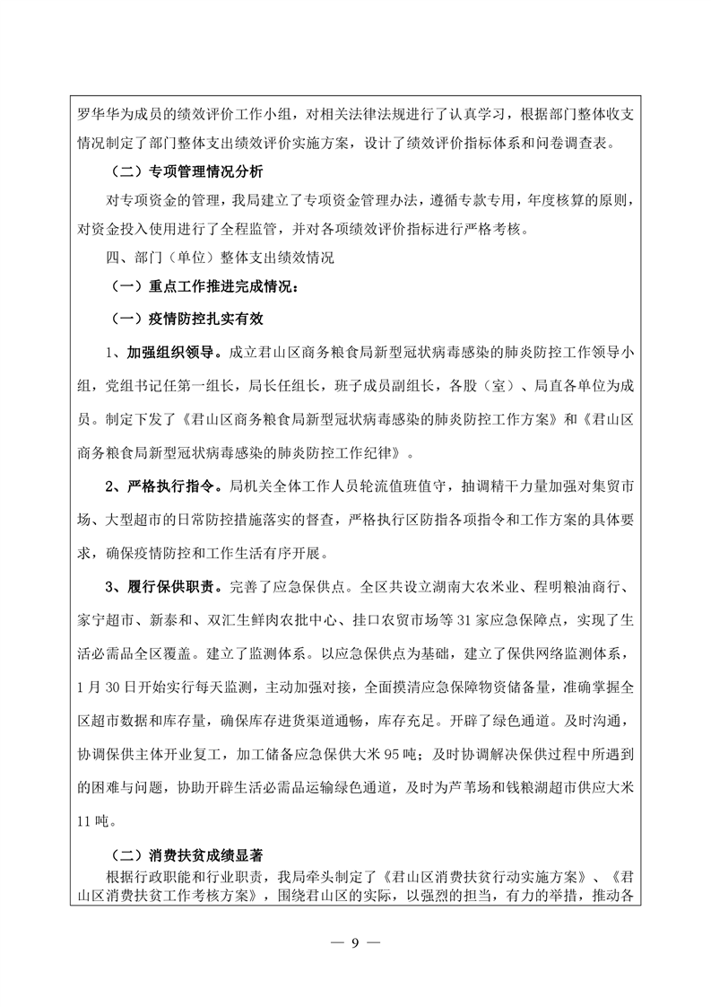 君山区2020年度商务粮食局整体支出绩效评价自评报告