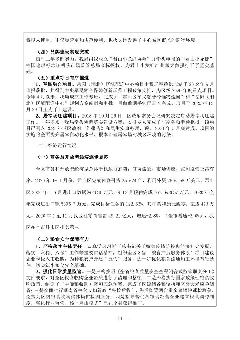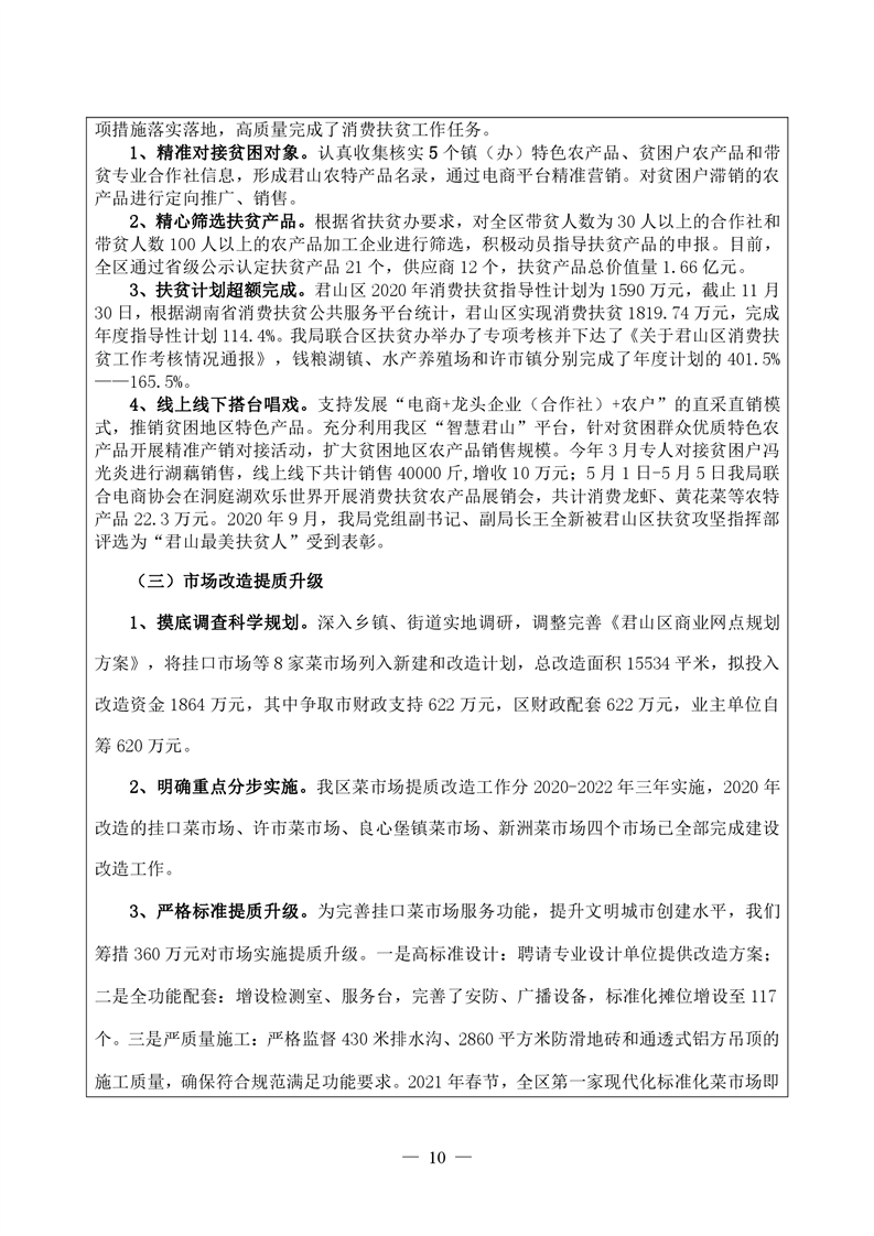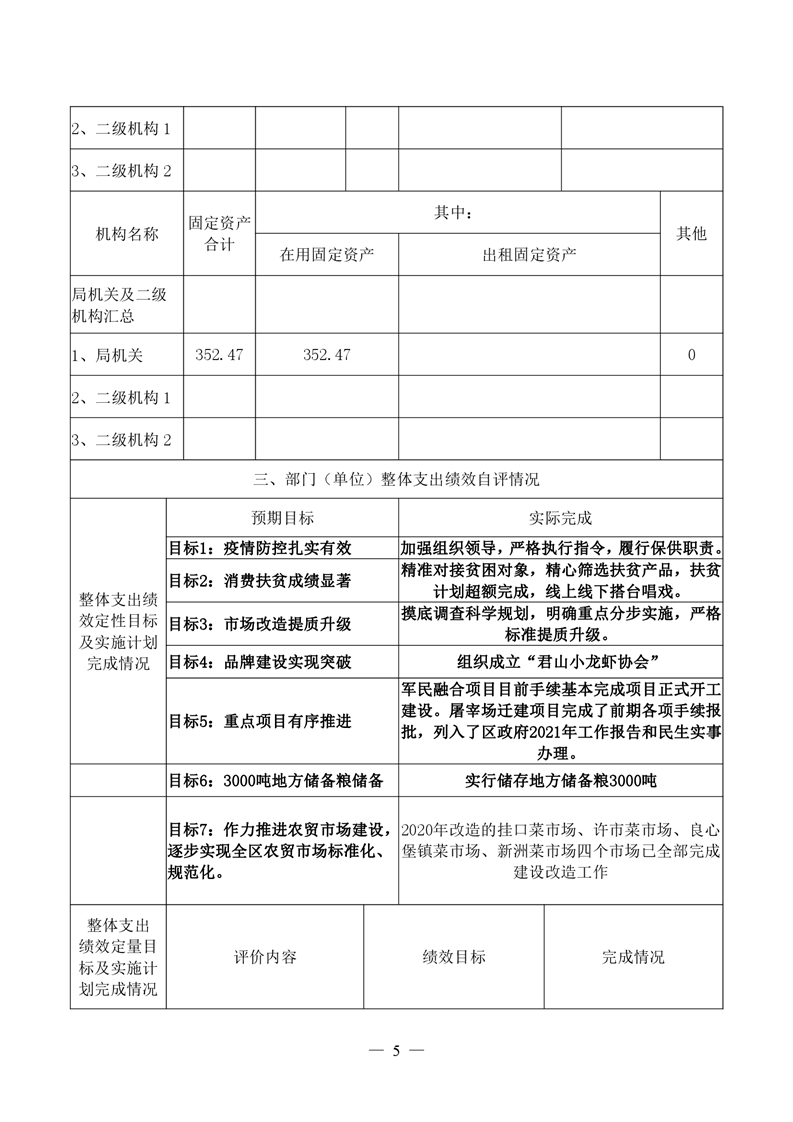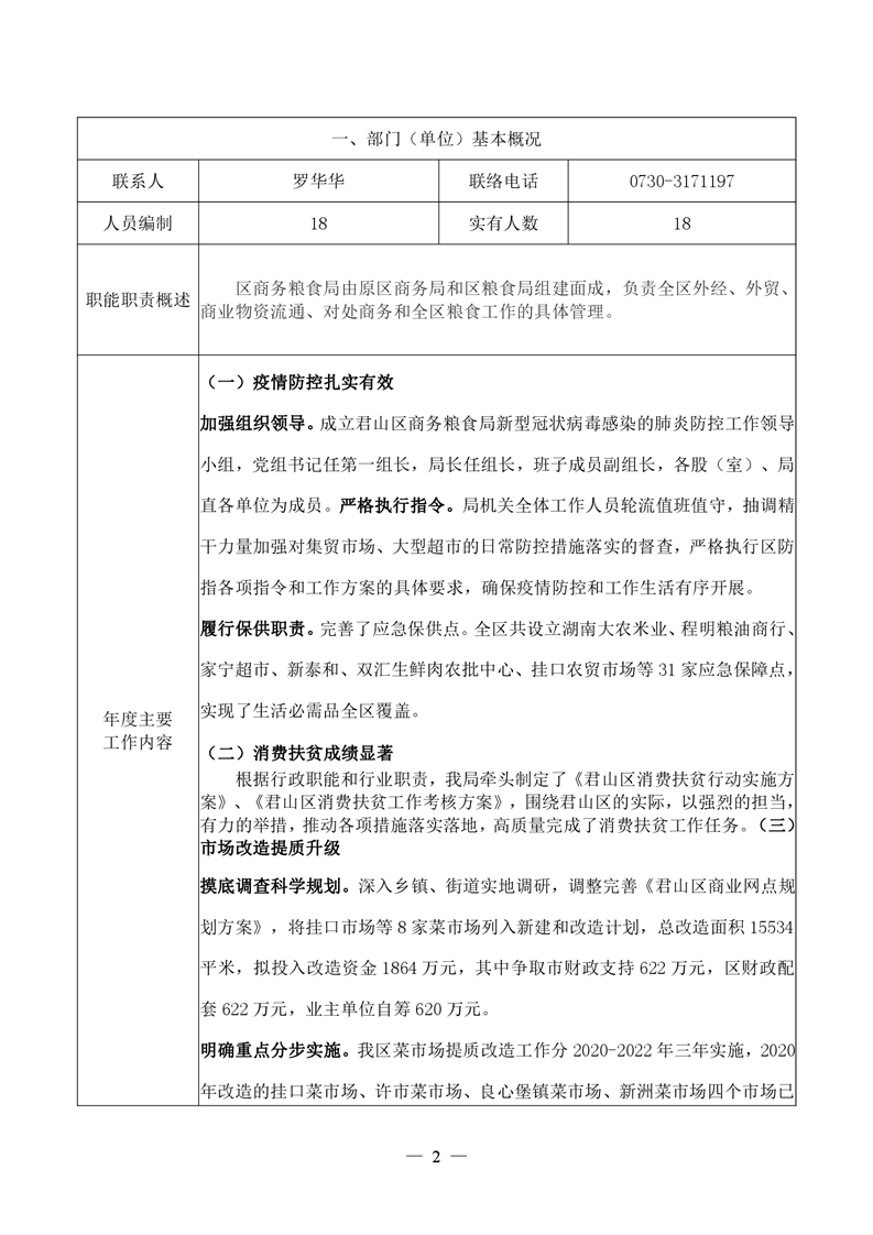 君山区2020年度商务粮食局整体支出绩效评价自评报告