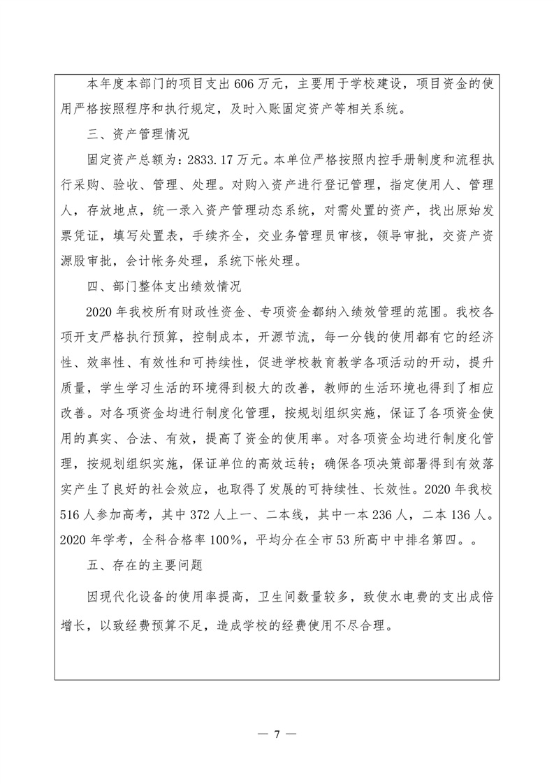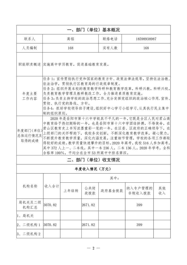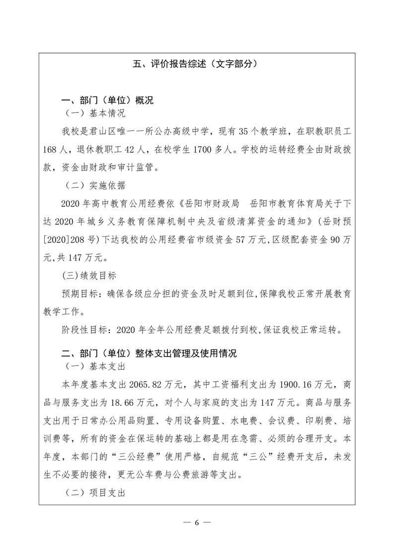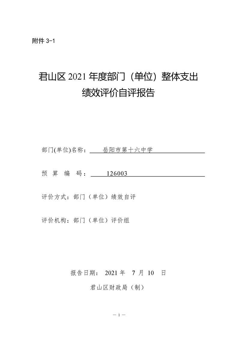 君山区2020年度岳阳市第十六中学整体支出绩效评价自评报告