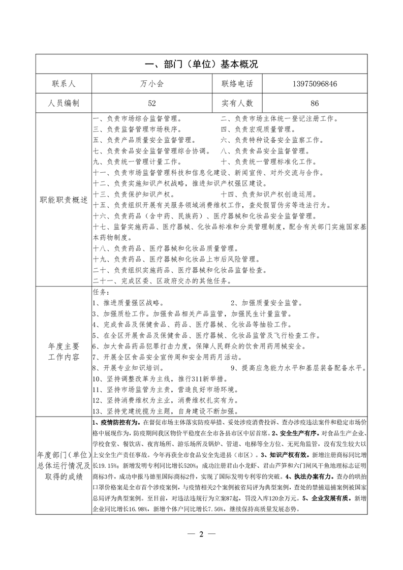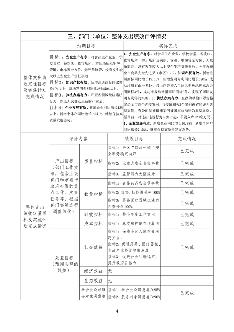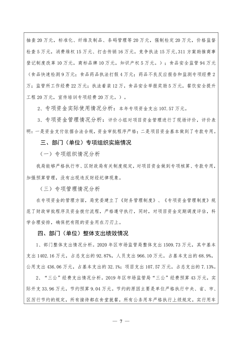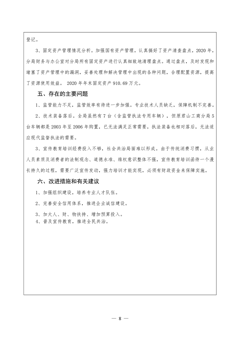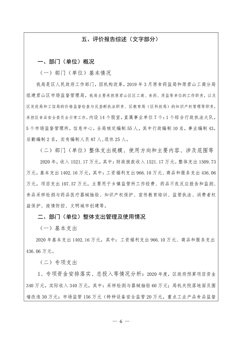 君山区2020年度市场监督管理局整体支出绩效评价自评报告