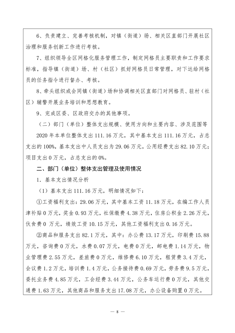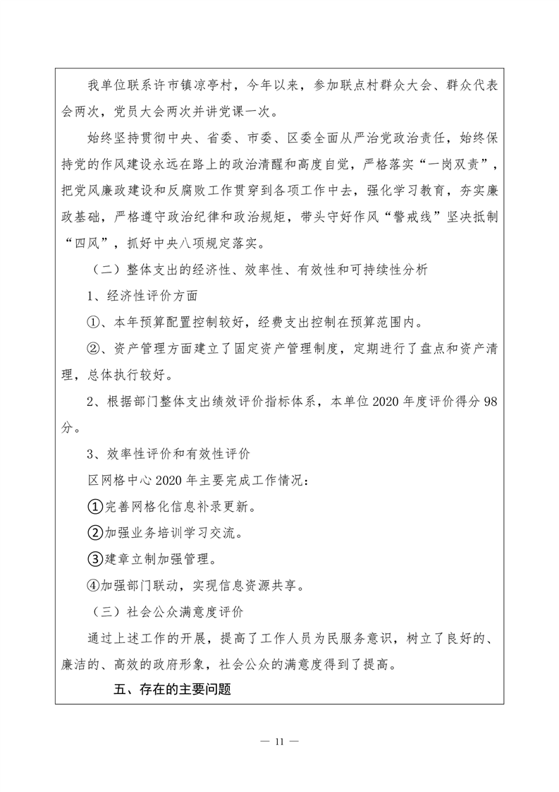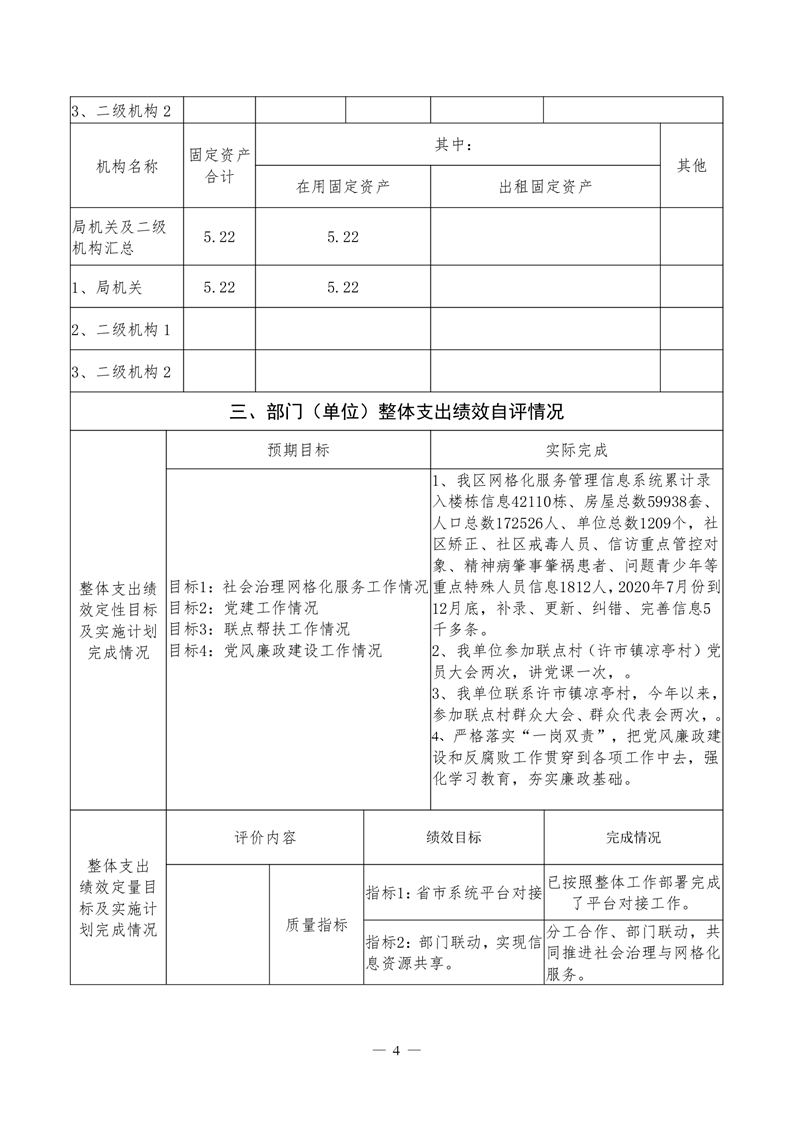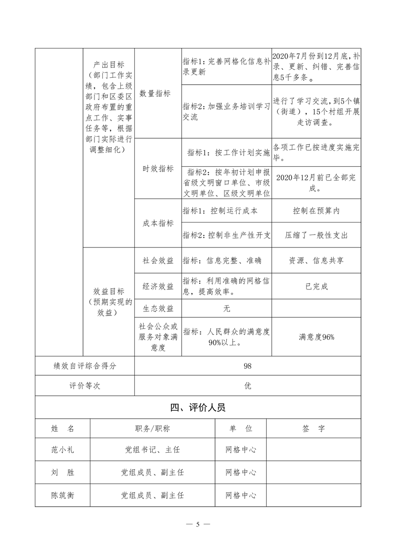 君山区2020年度网格化服务中心整体支出绩效评价自评报告