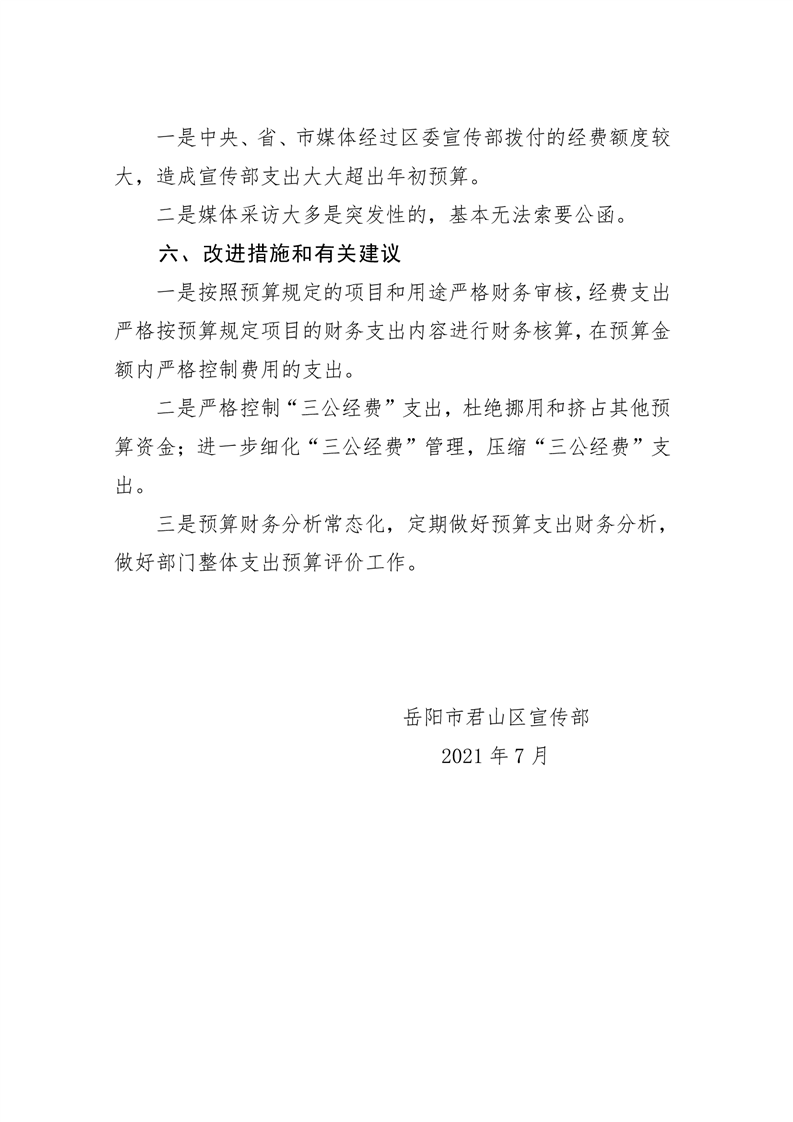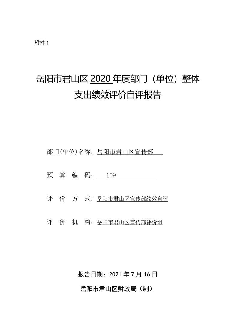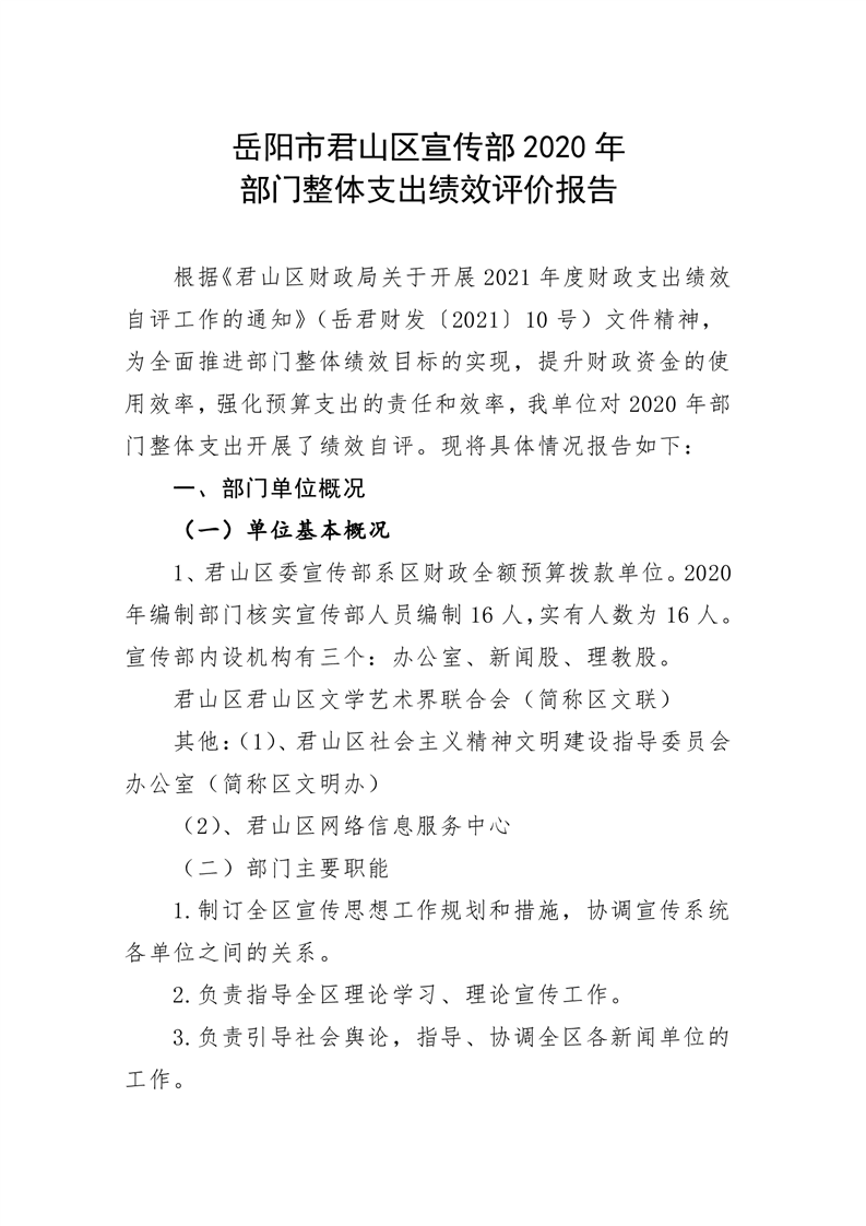 君山区2020年度宣传部整体支出绩效评价自评报告
