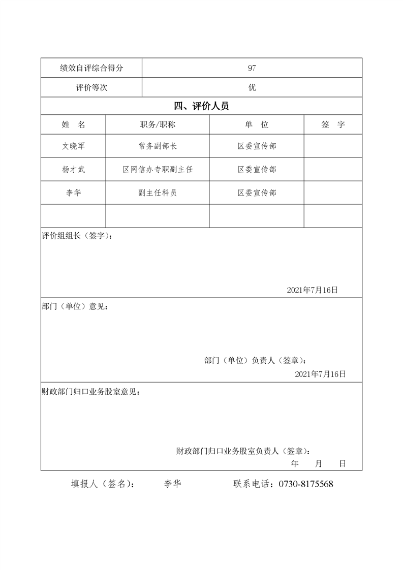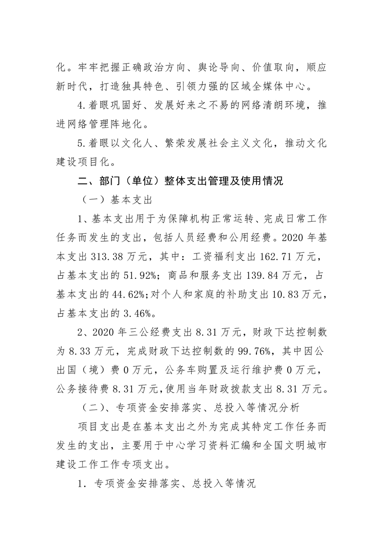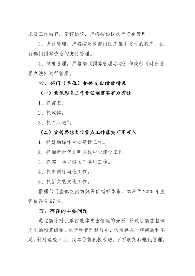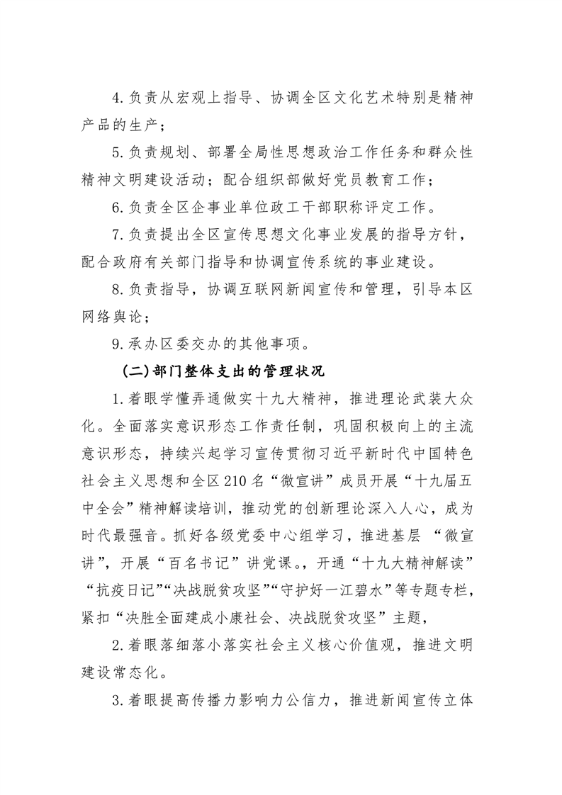 君山区2020年度宣传部整体支出绩效评价自评报告