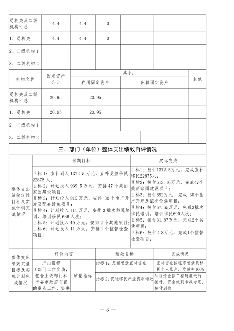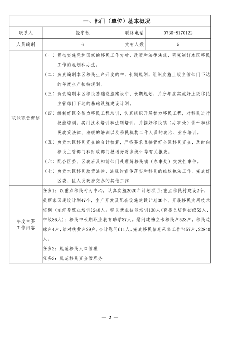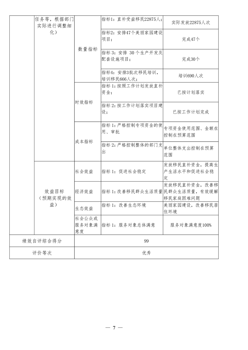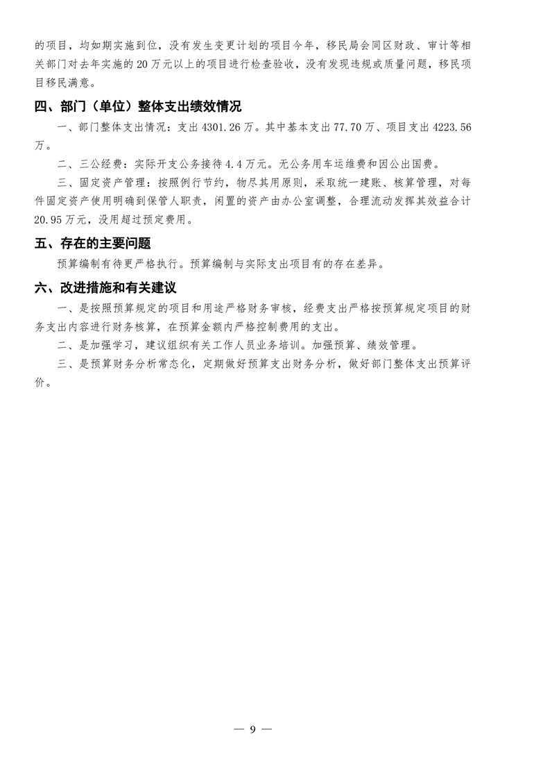 君山区2020年度库区移民服务中心整体支出绩效评价自评报告