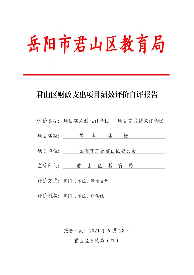 2020年度君山区教育局教师体检项目支出绩效自评报告