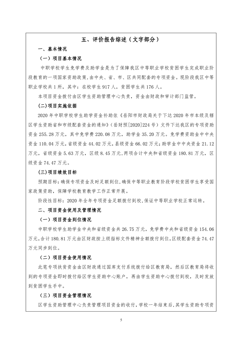 2020年度君山区教育局中职免学费及助学金项目支出绩效自评报告