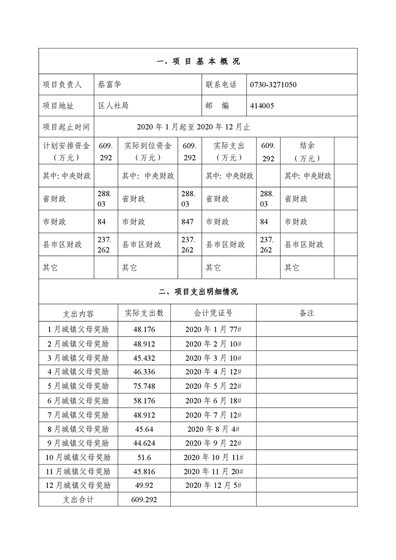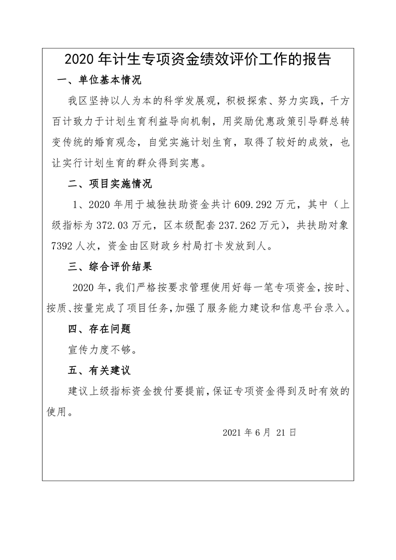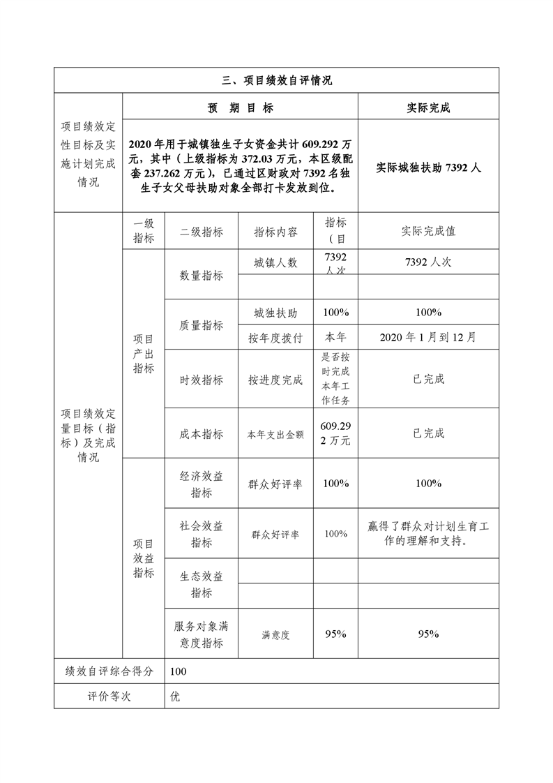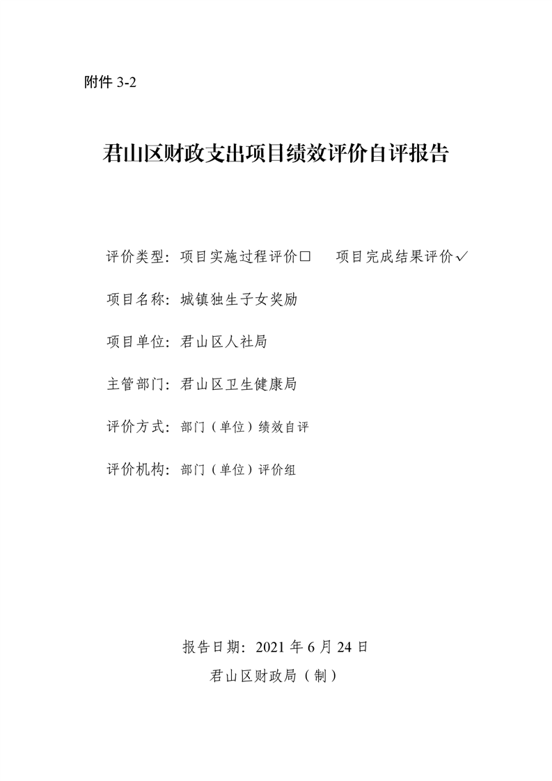 2020年度君山区卫健局城镇独生子女奖励项目支出绩效自评报告