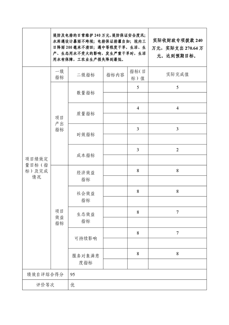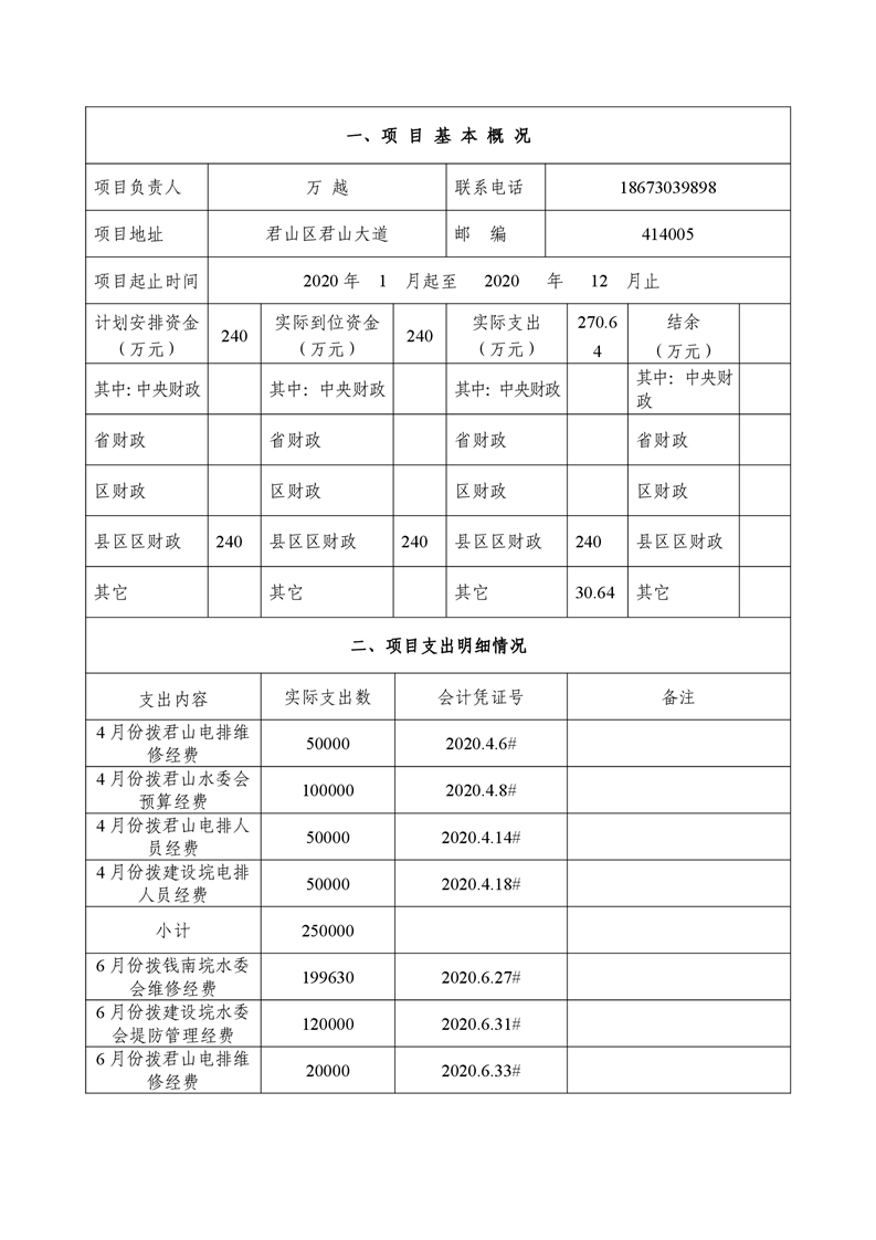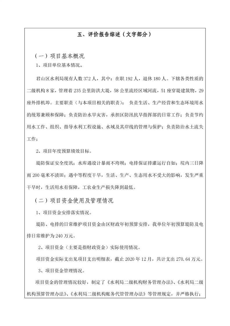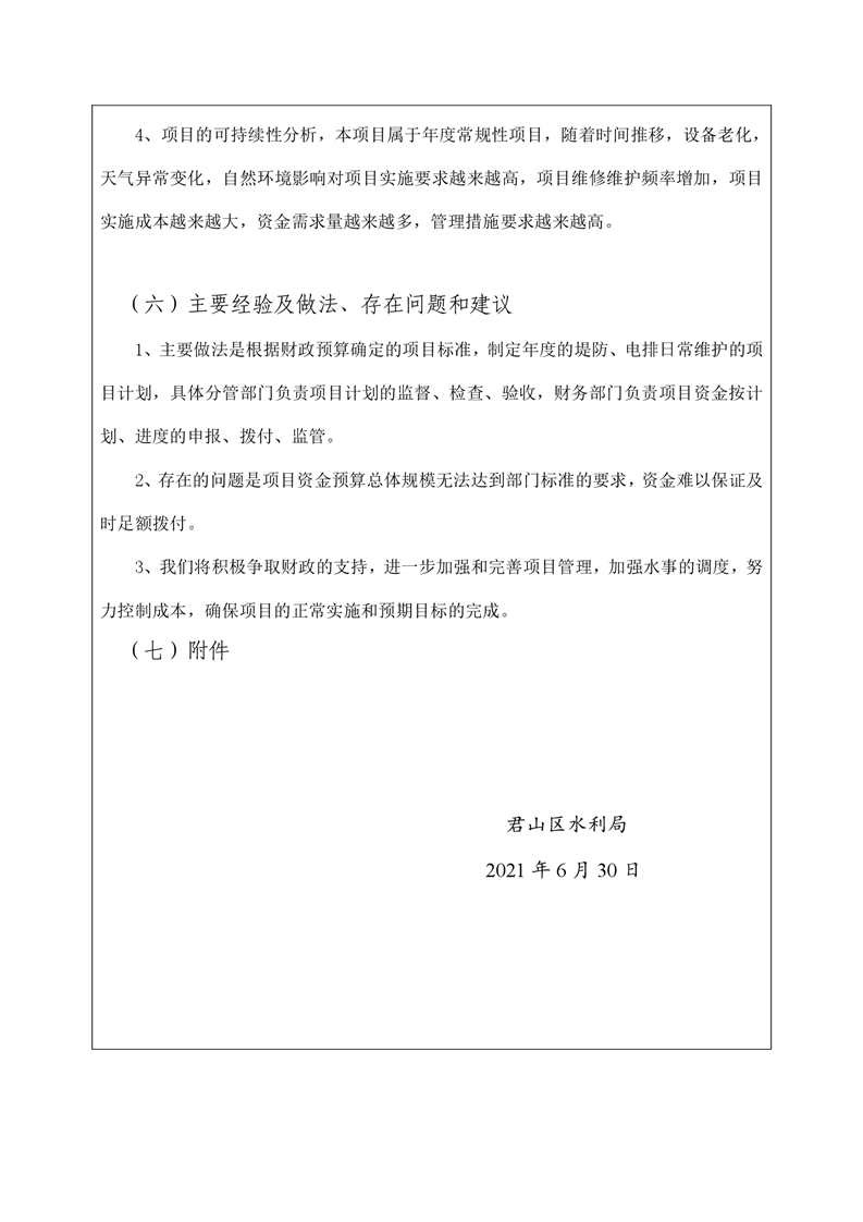 2020年度君山区水利局提防及电排日常维护项目支出绩效自评报告