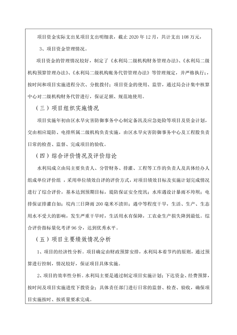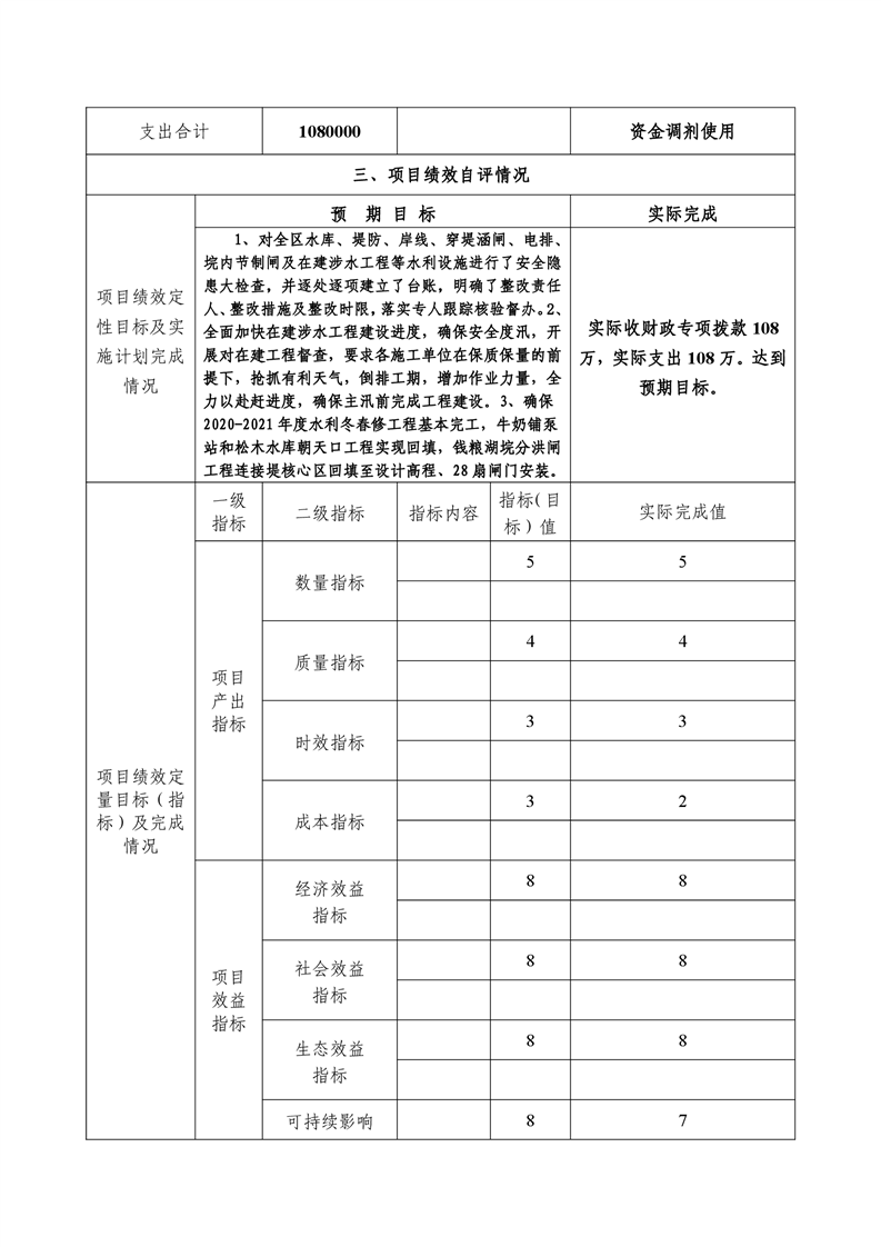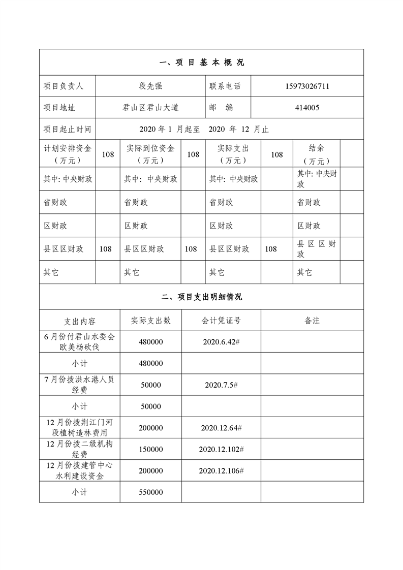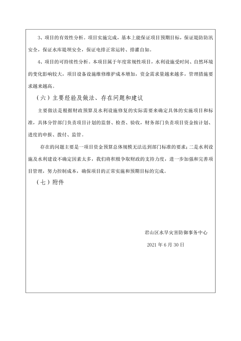 2020年度君山区水利局水利设施修复项目支出绩效自评报告