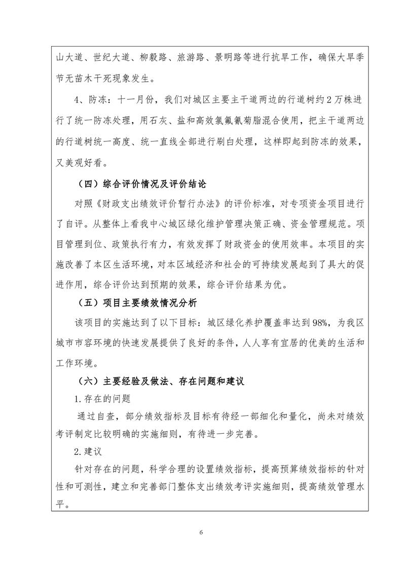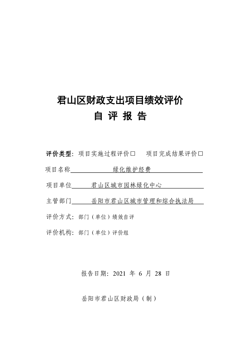 2020年度君山区城管局绿化维护经费项目支出绩效自评报告
