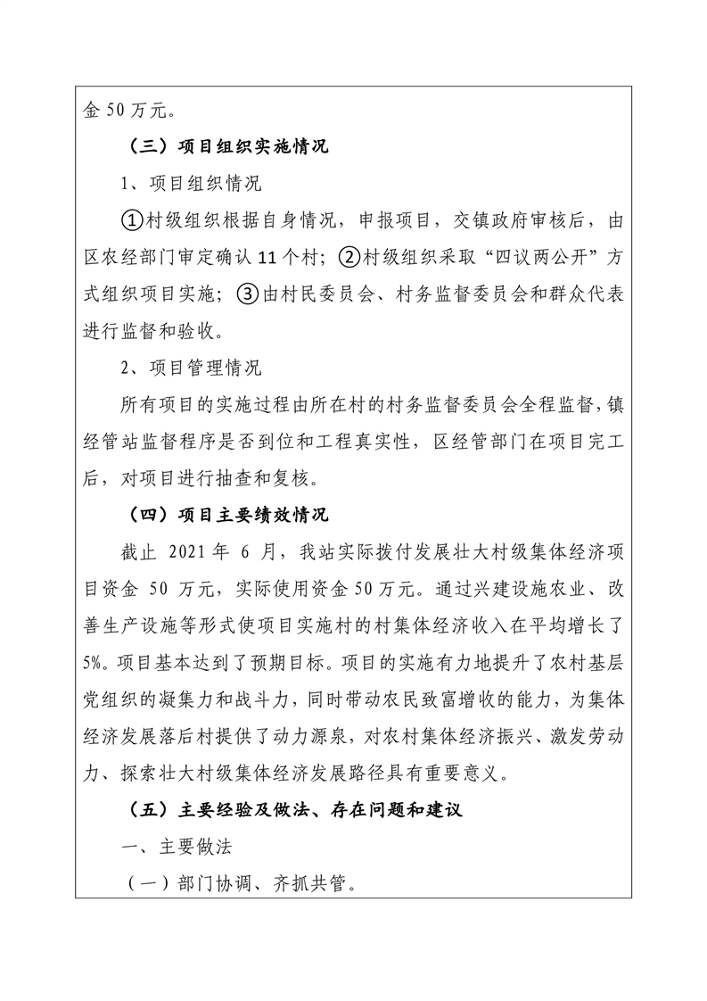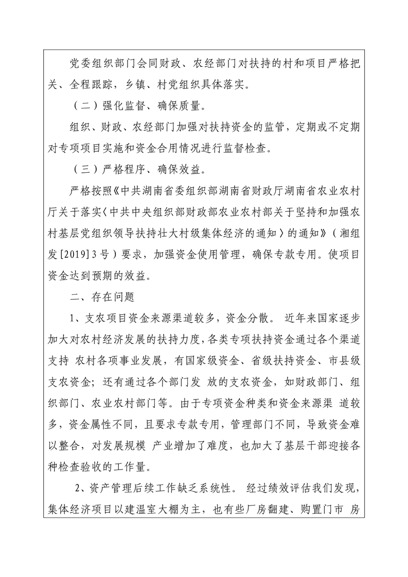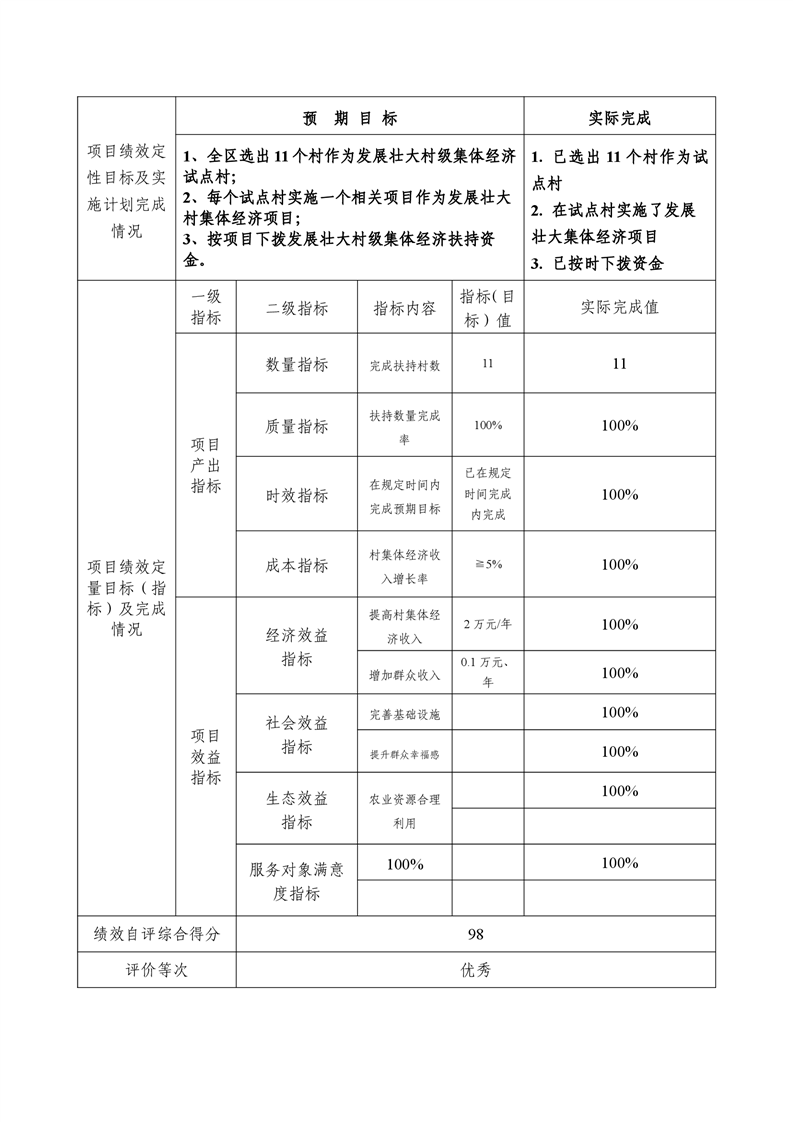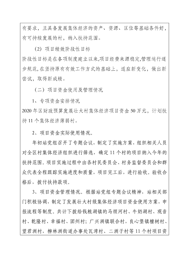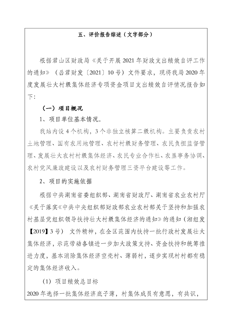 2020年度君山区农经站发展壮大村级集体经济专项资金项目支出绩效自评报告