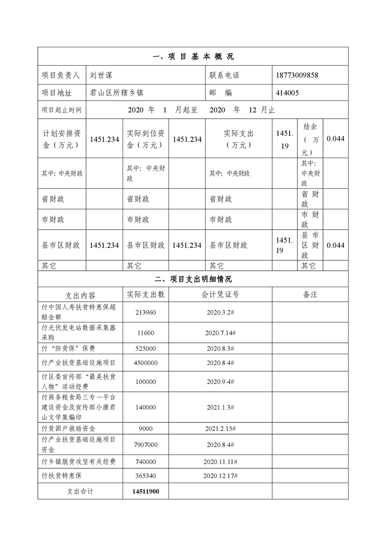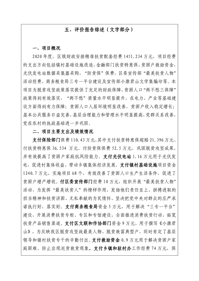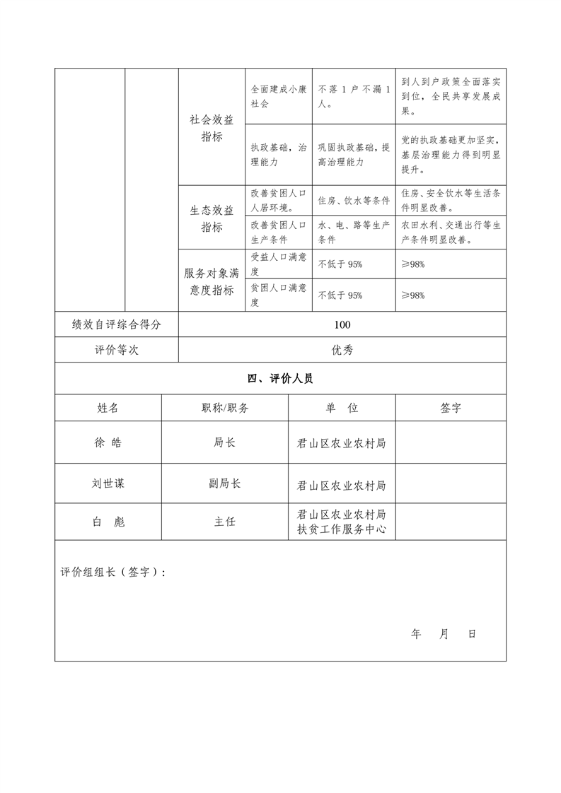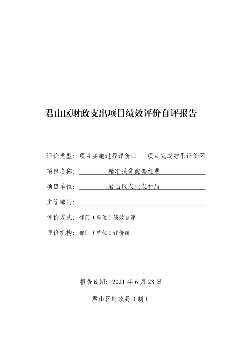 2020年度君山区农业农村局精准扶贫配套经费项目支出绩效自评报告
