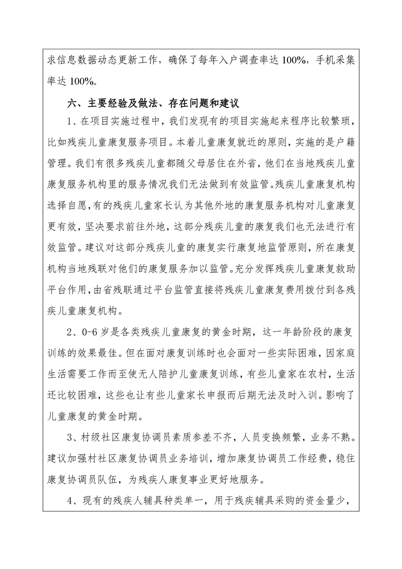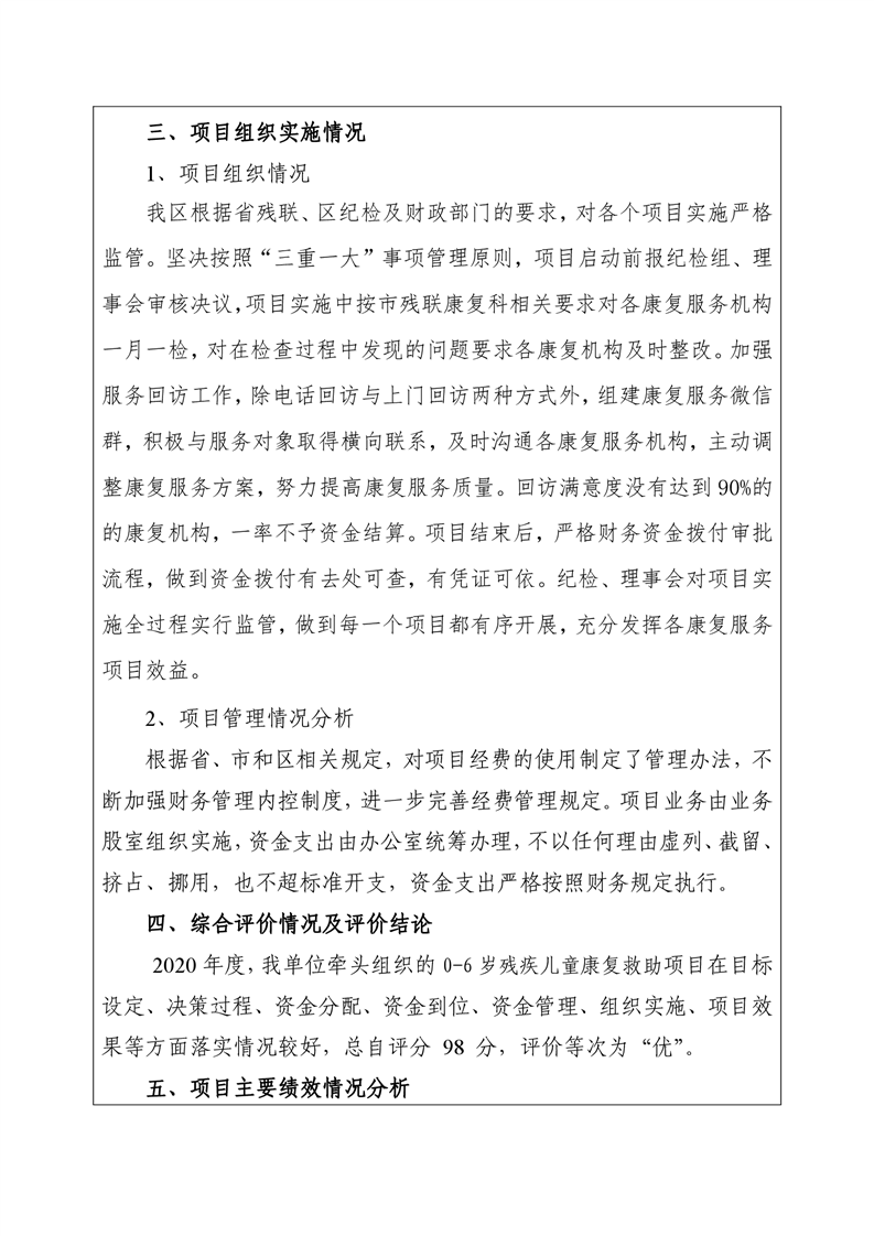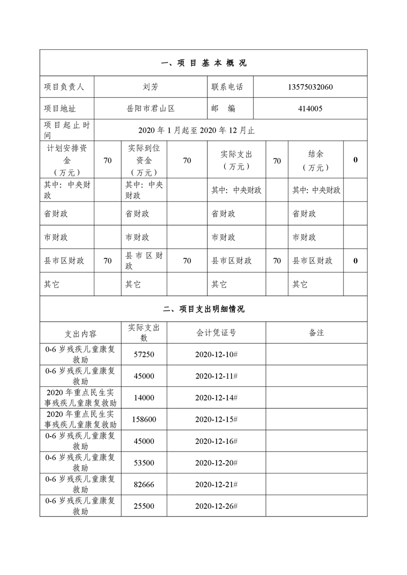 2020年度君山区残联0-6岁残疾儿童康复救助项目支出绩效自评报告