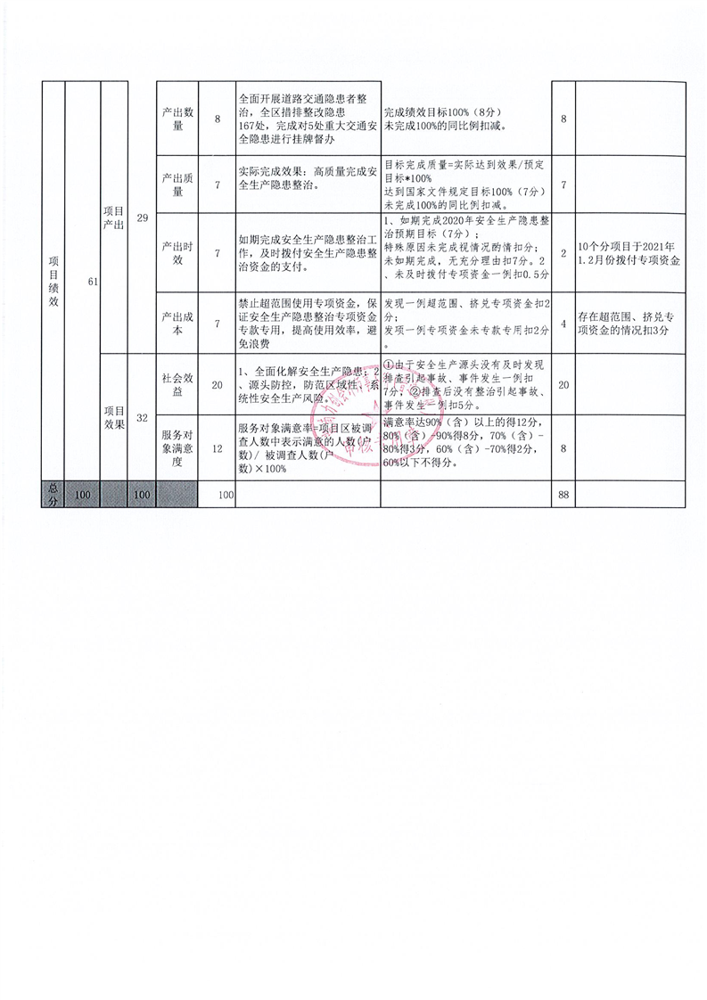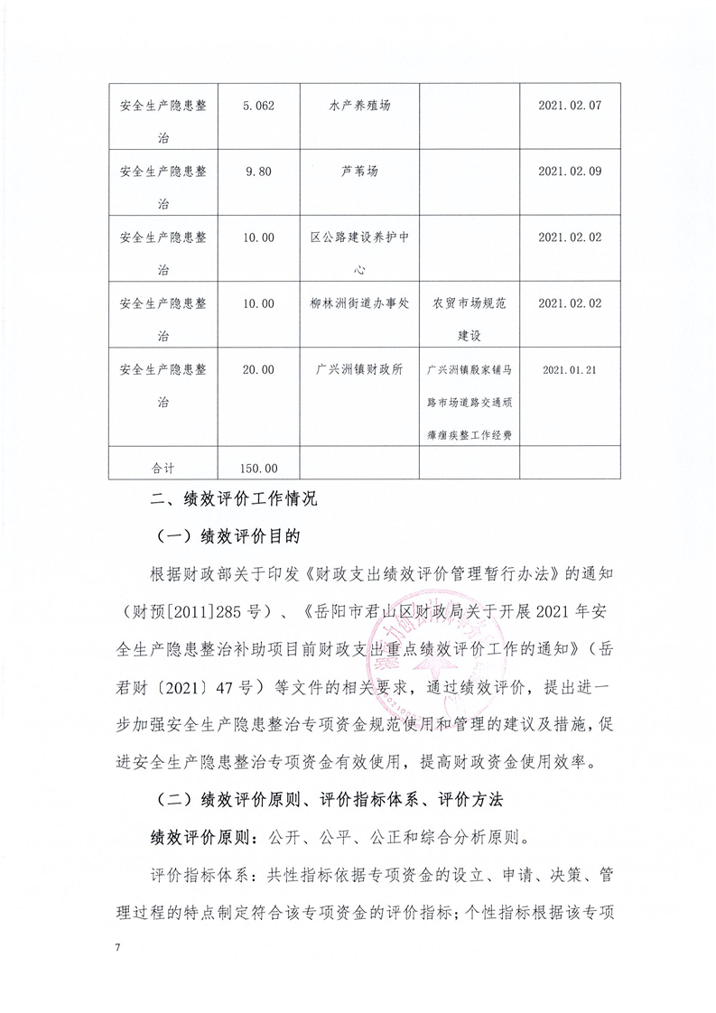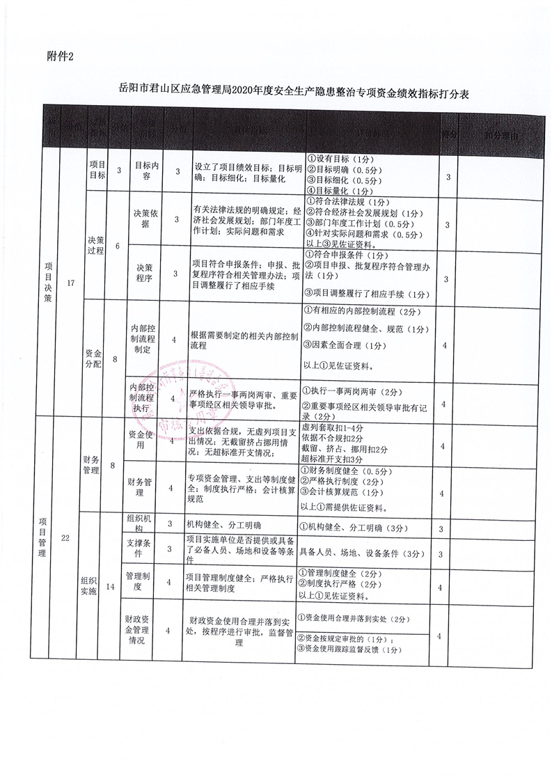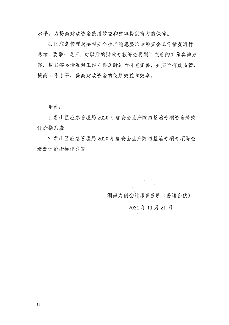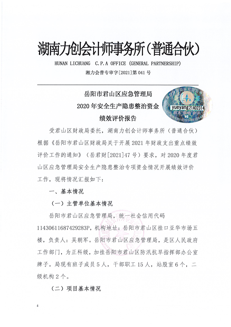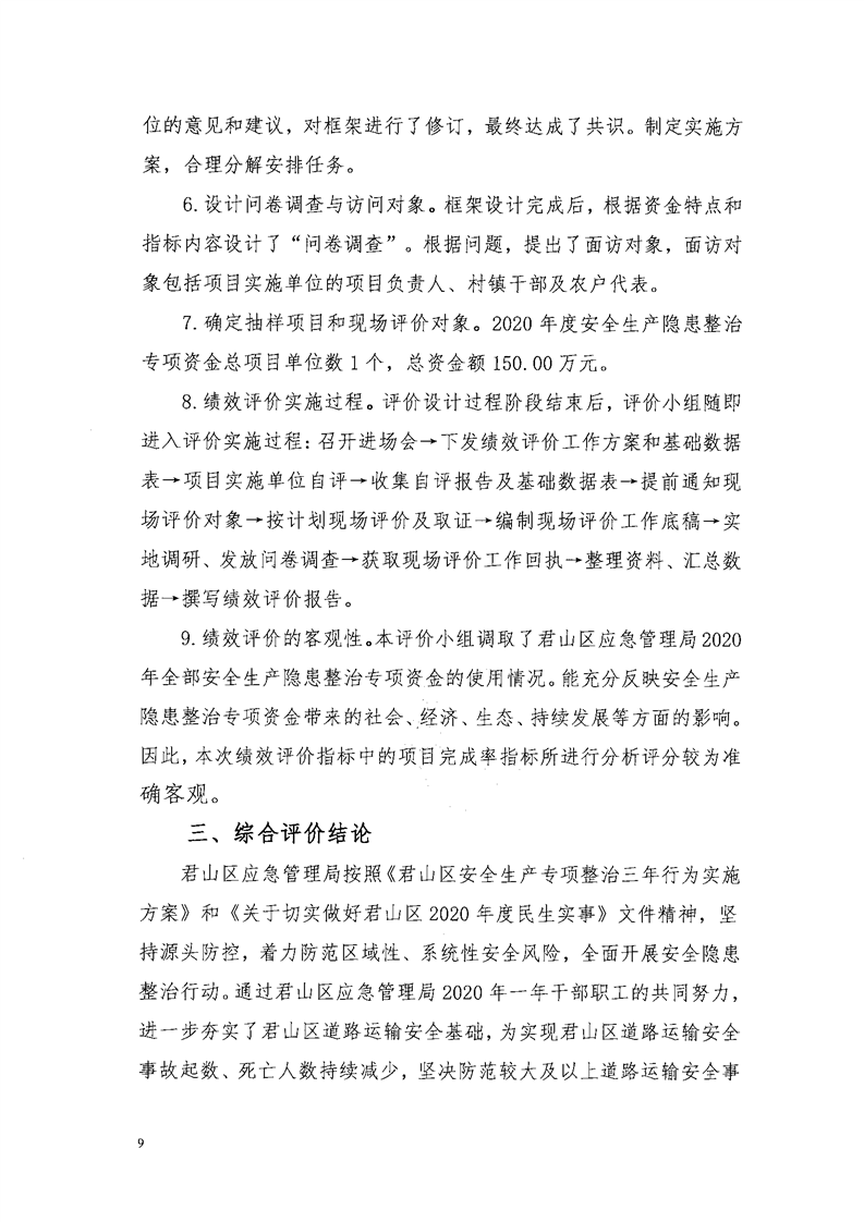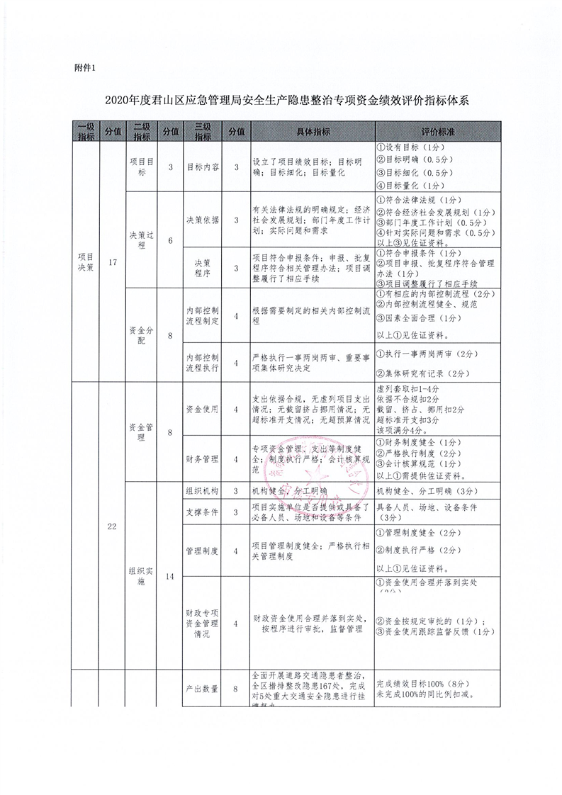 君山区应急管理局2020年安全生产隐患整治专项资金绩效评价报告书