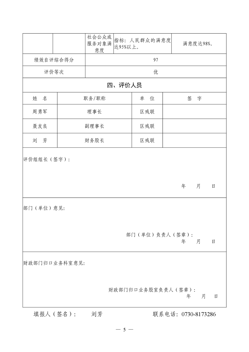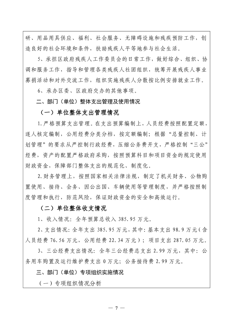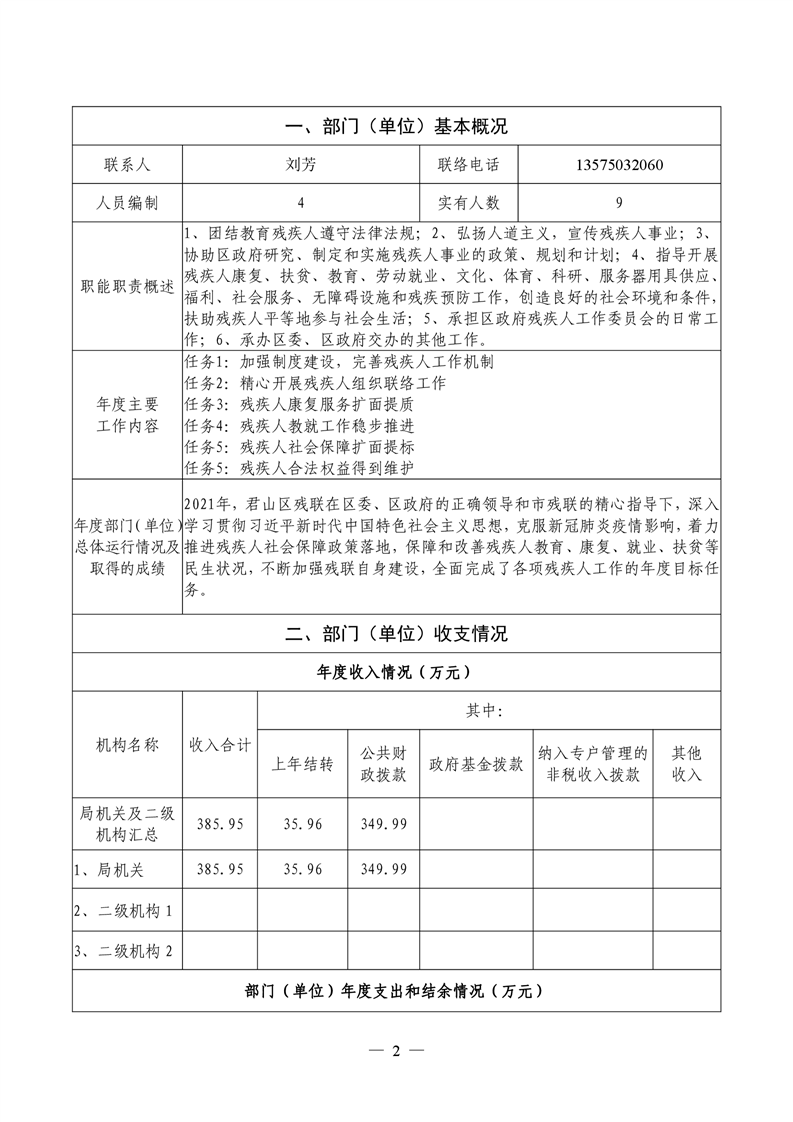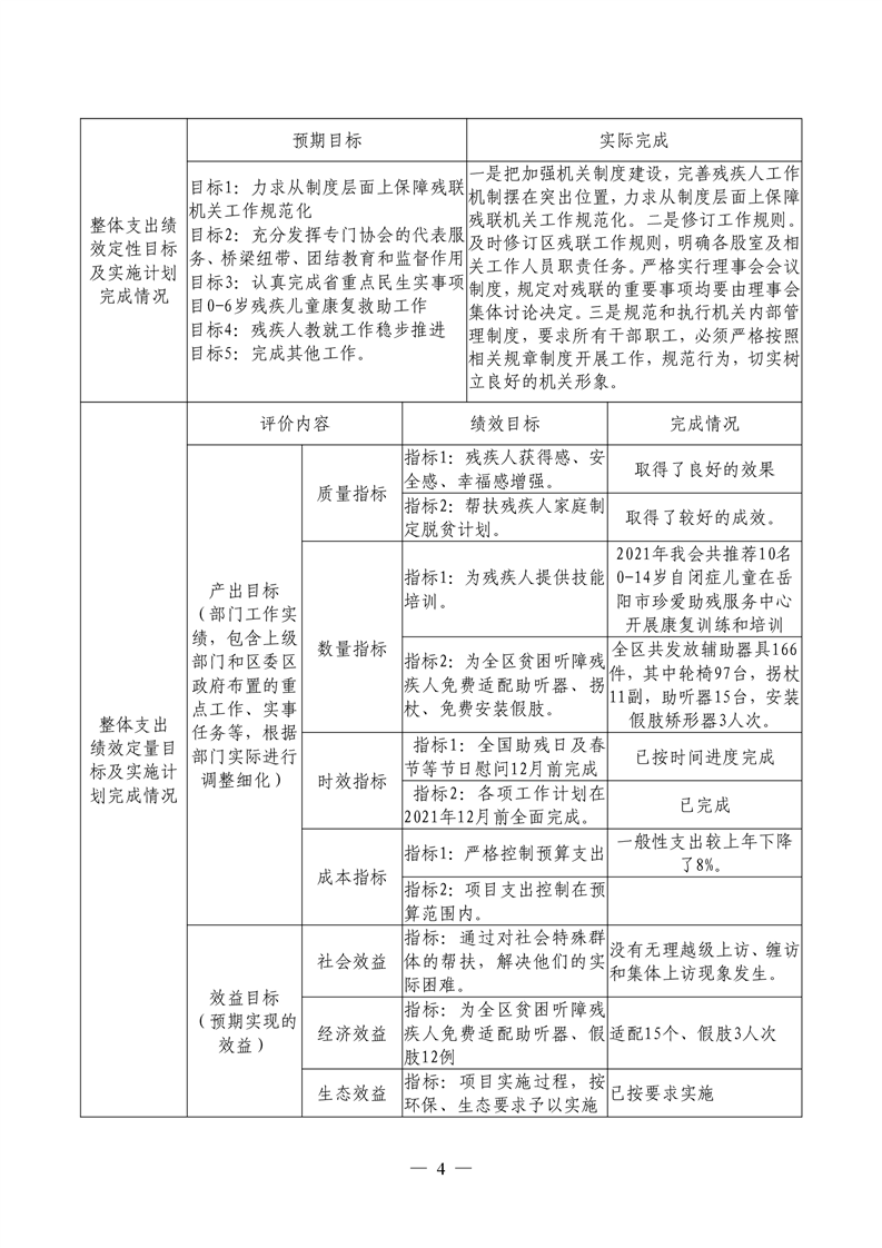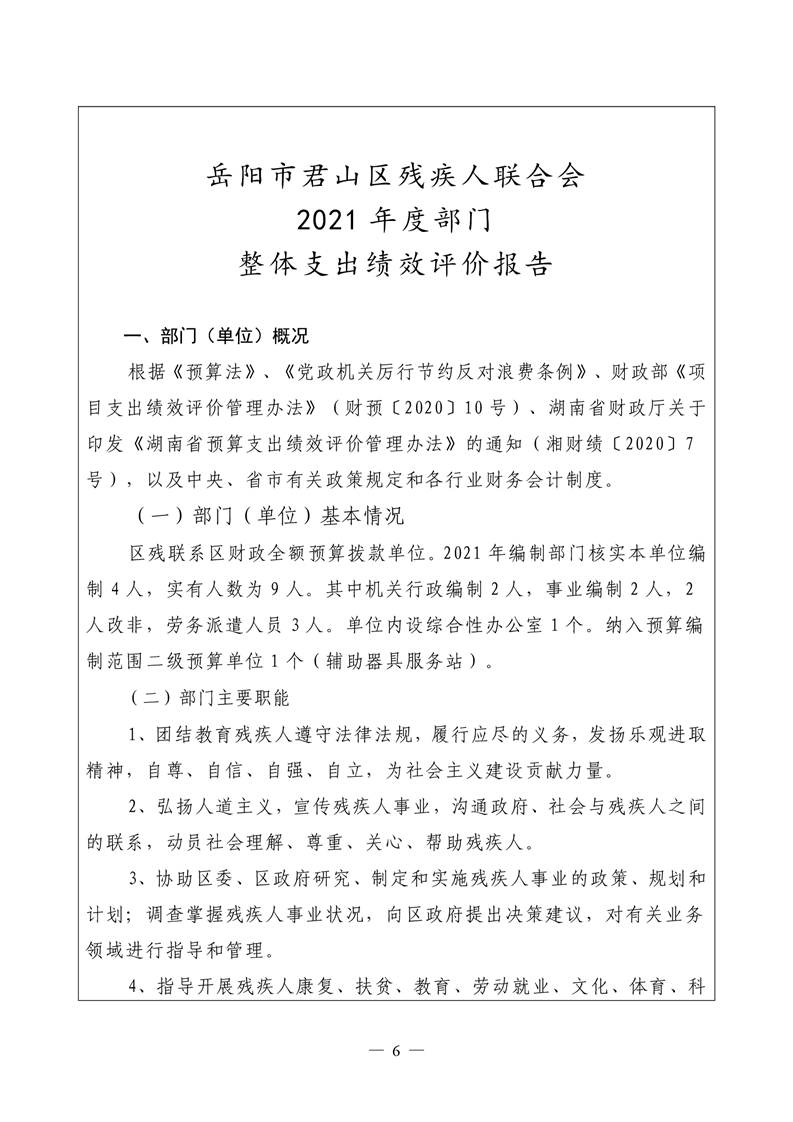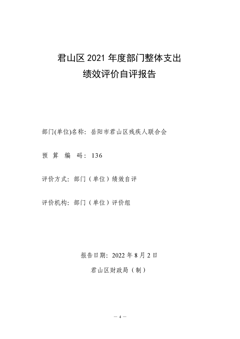 君山区2021年度残疾人联合会整体支出绩效评价自评报告