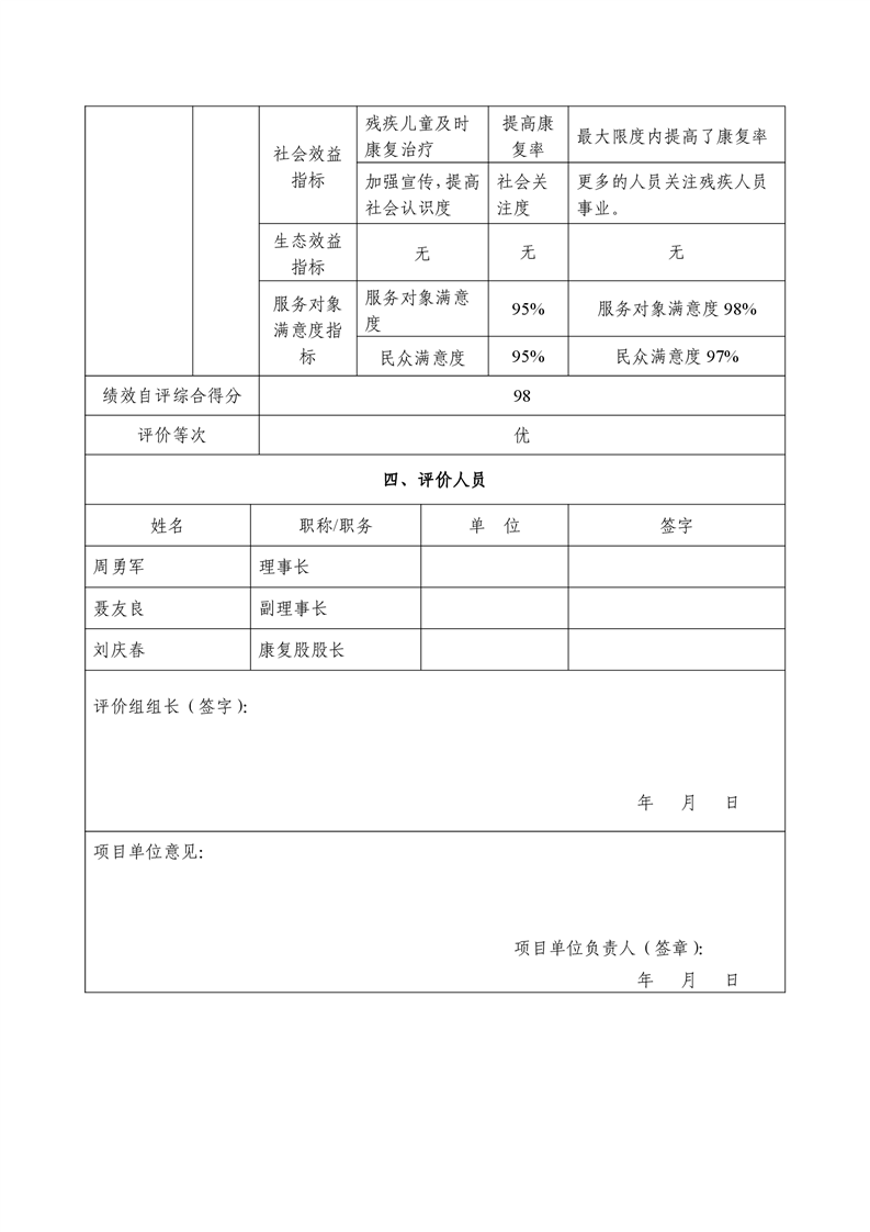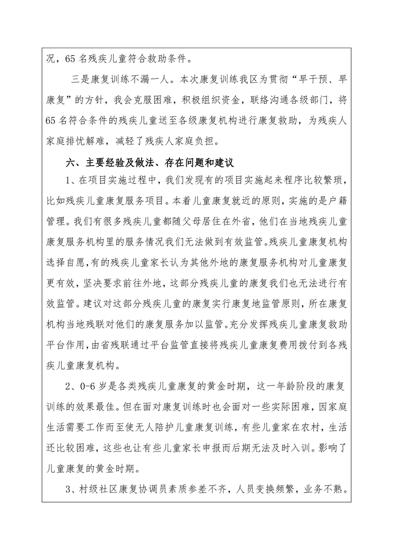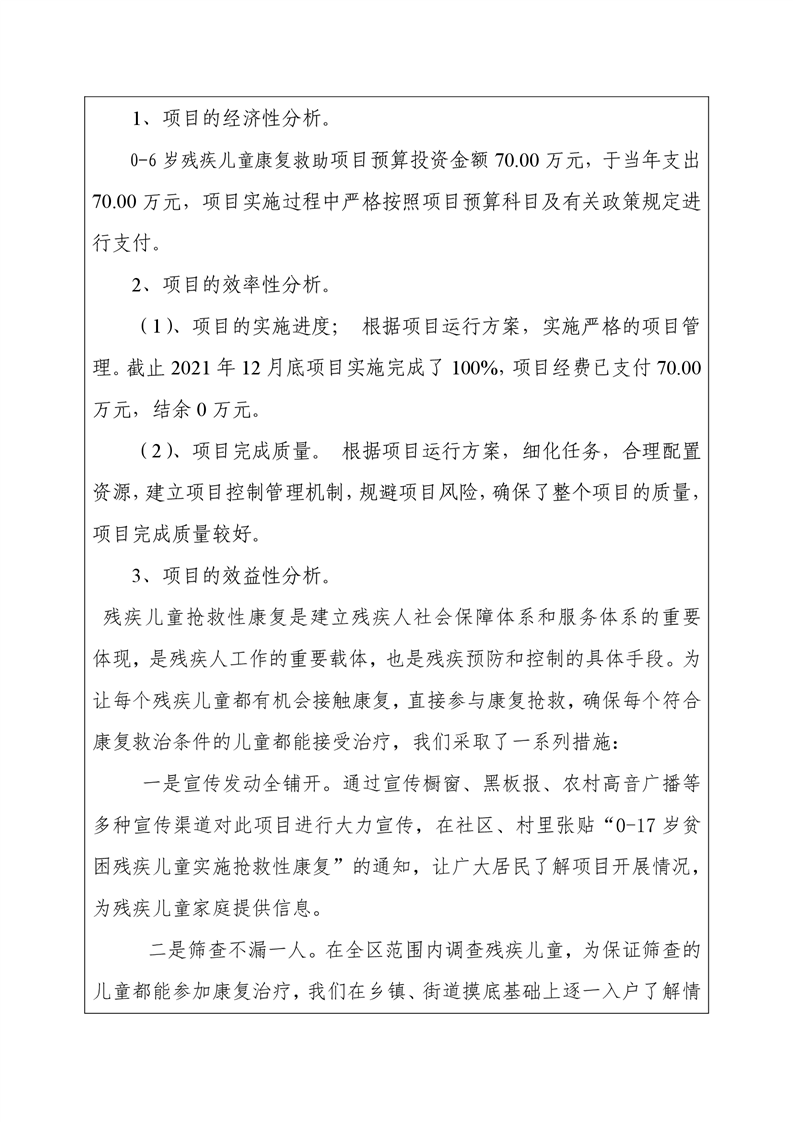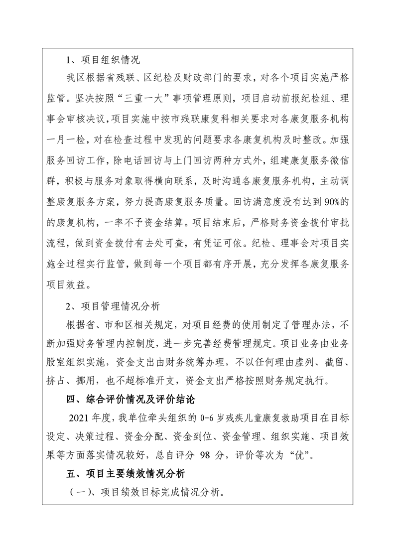 2021年度君山区残联0-6岁残疾儿童康复救助项目绩效自评报告