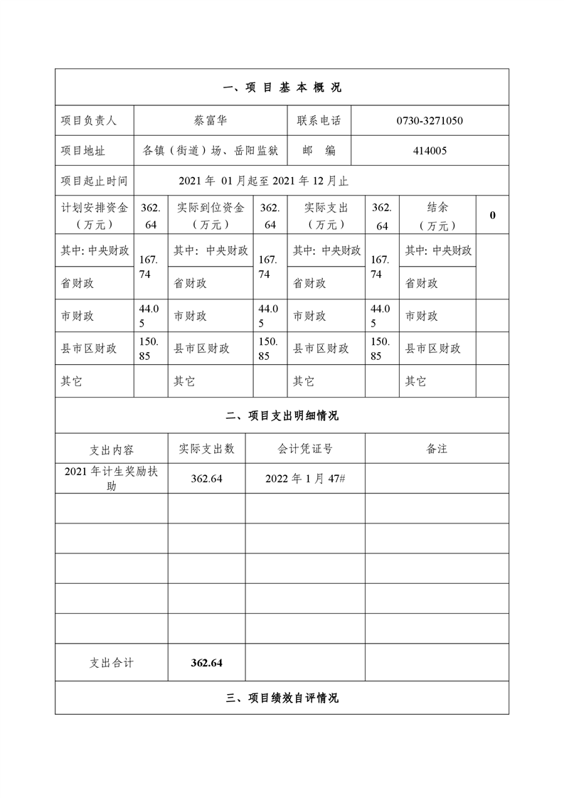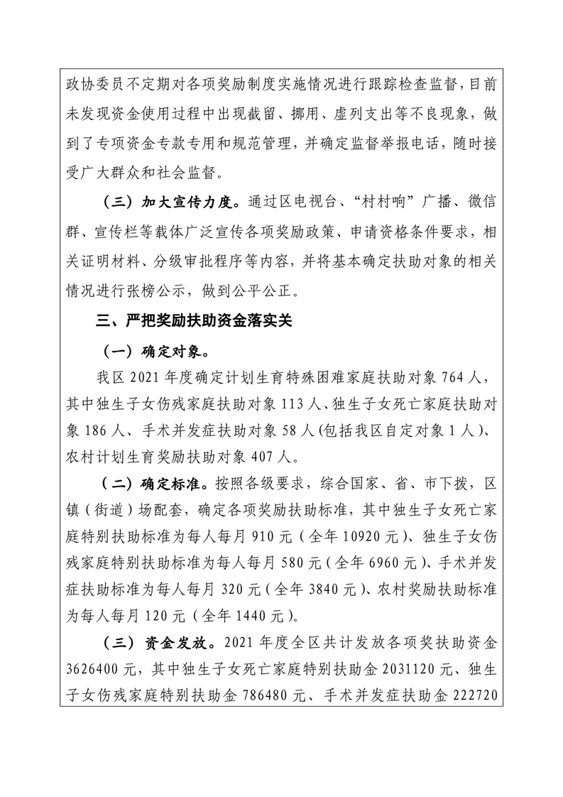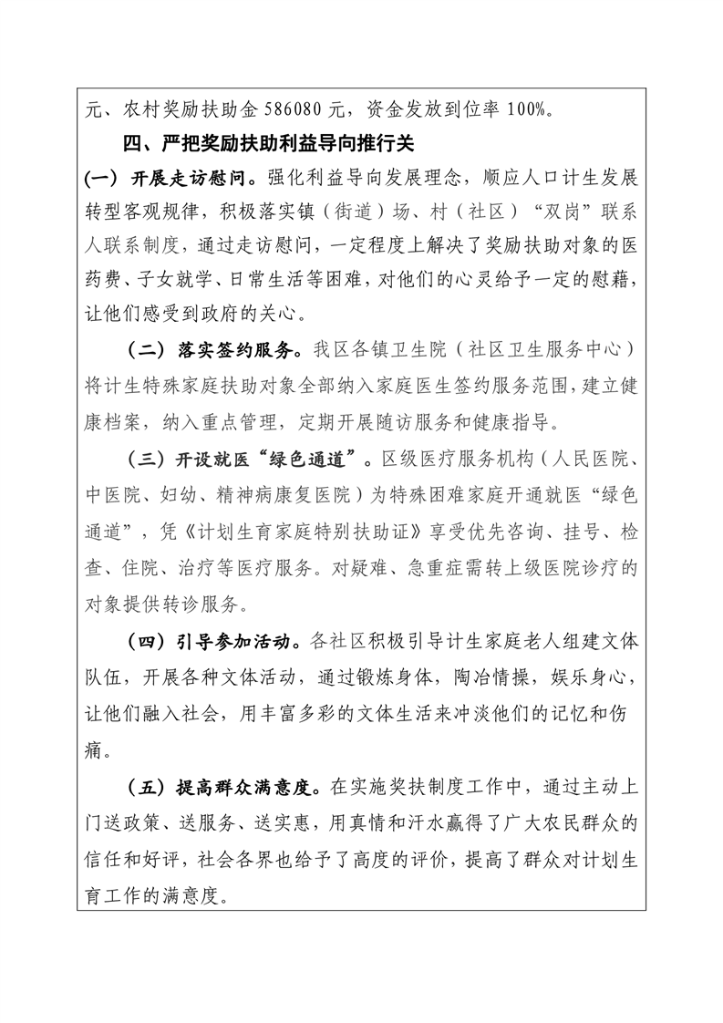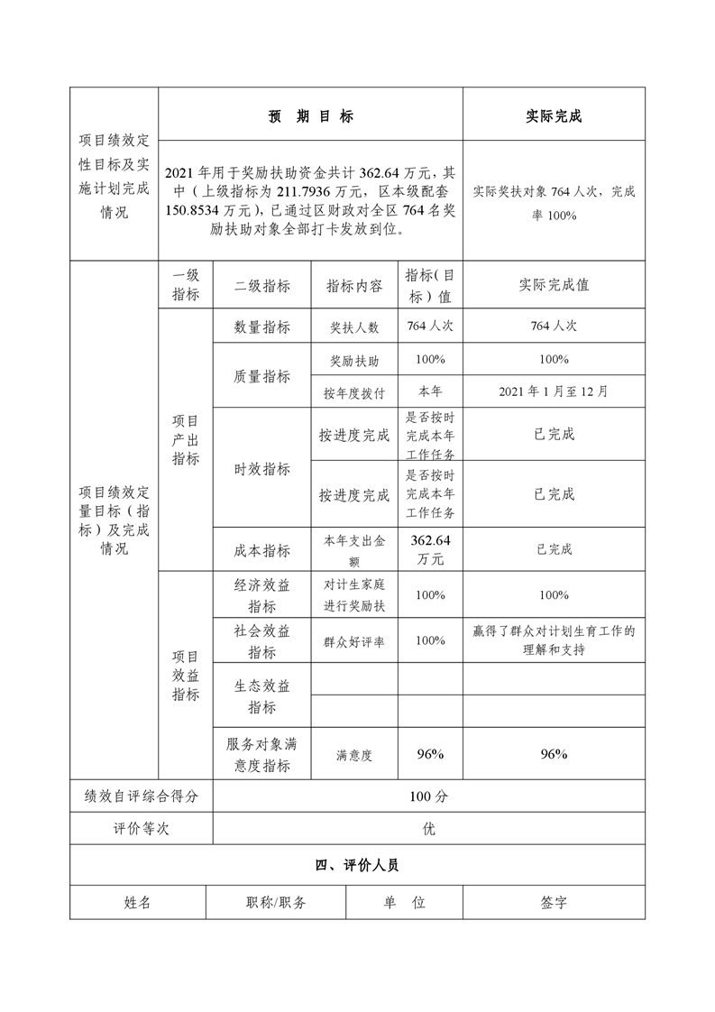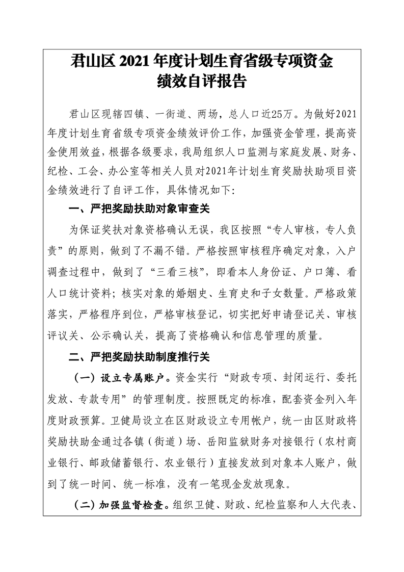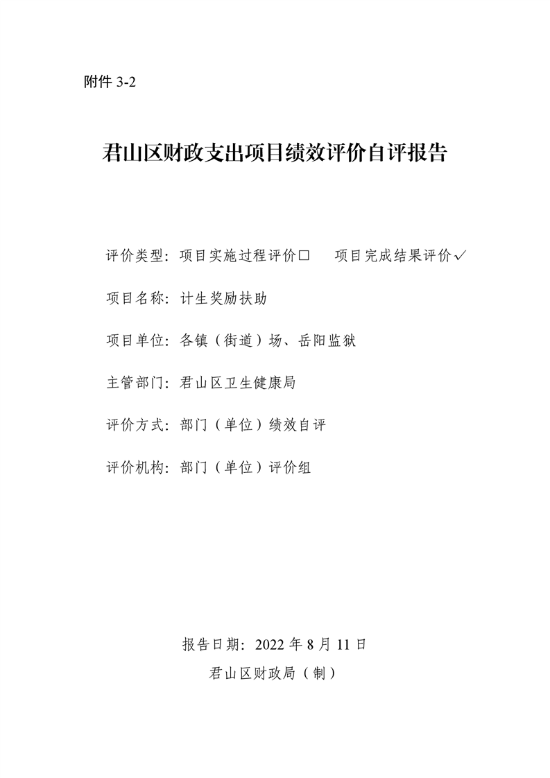 2021年度君山区卫健局计生奖励扶助项目绩效评价自评报告