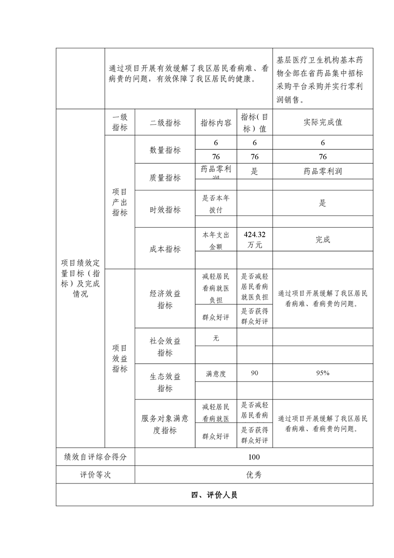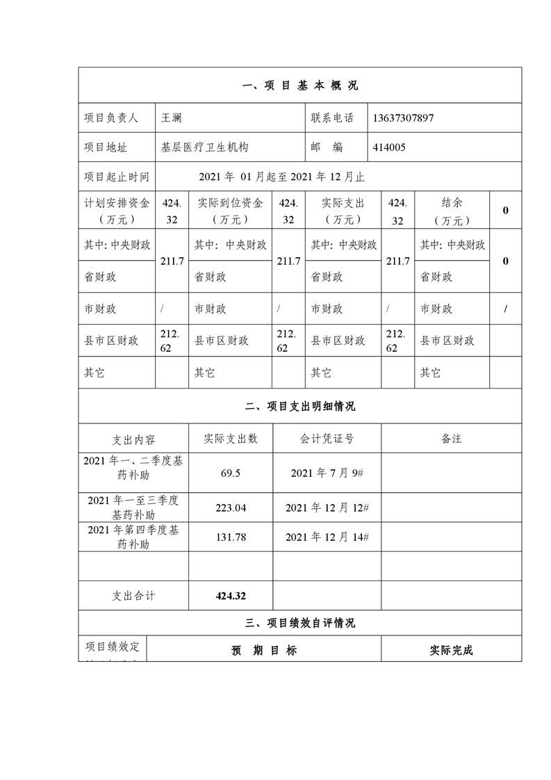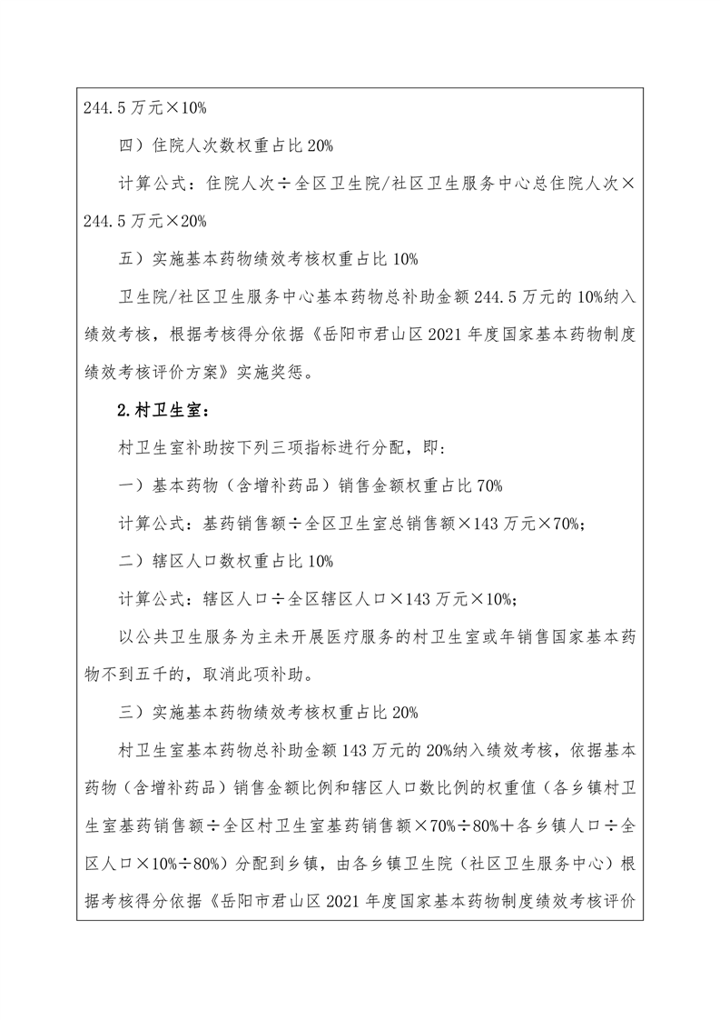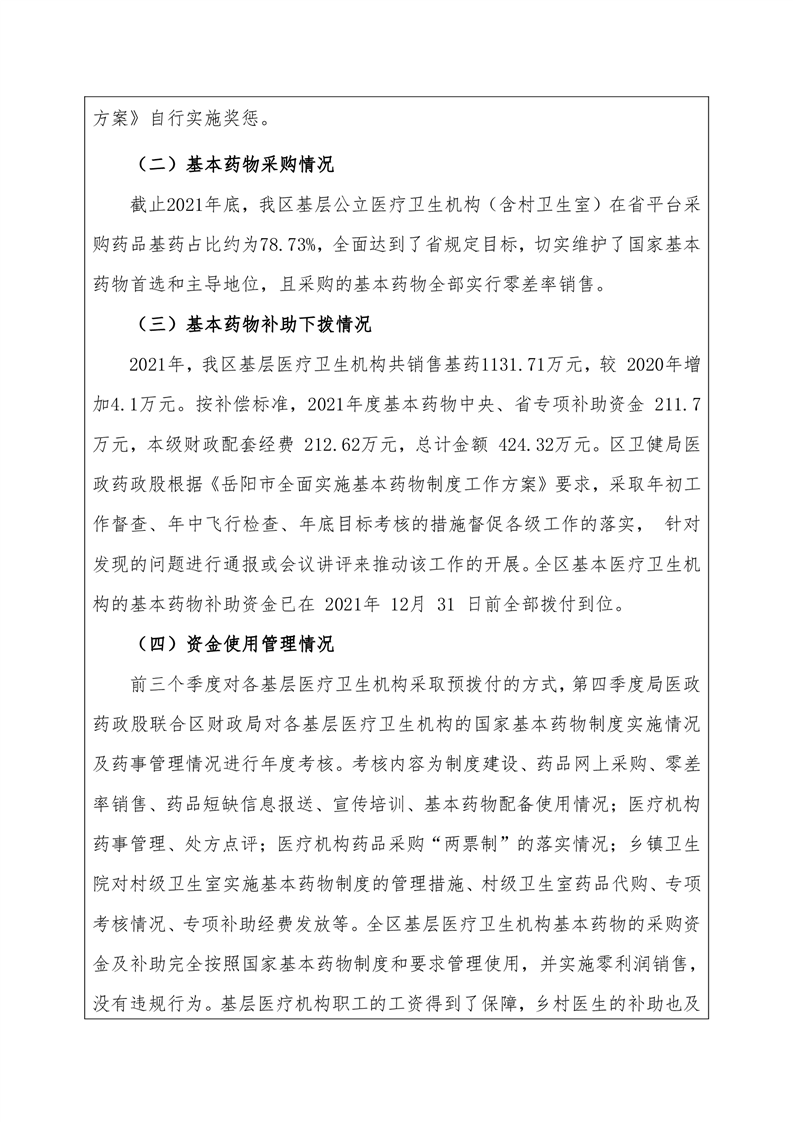 2021年度君山区卫健局基本药物销售补助项目绩效评价自评报告
