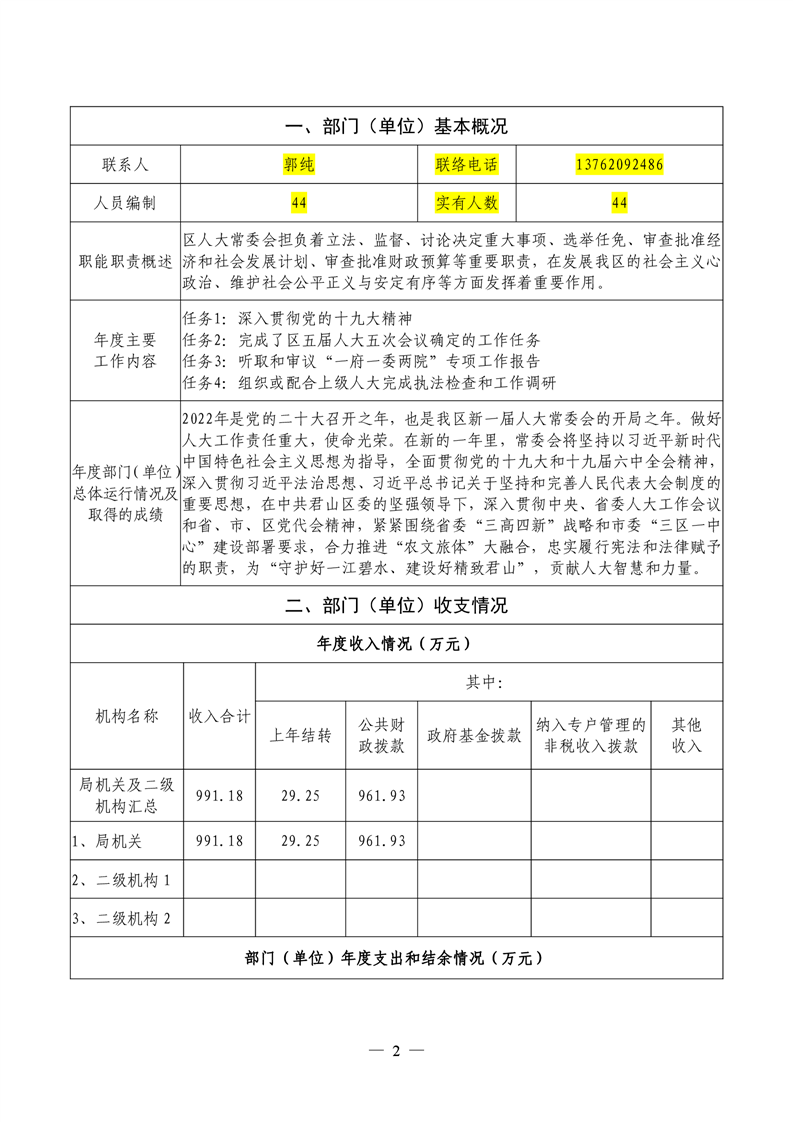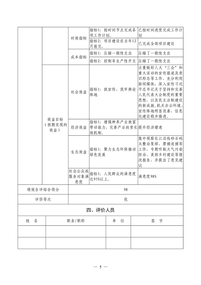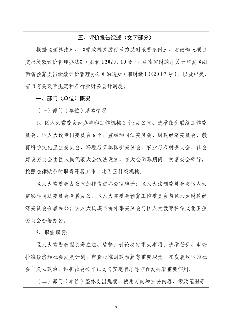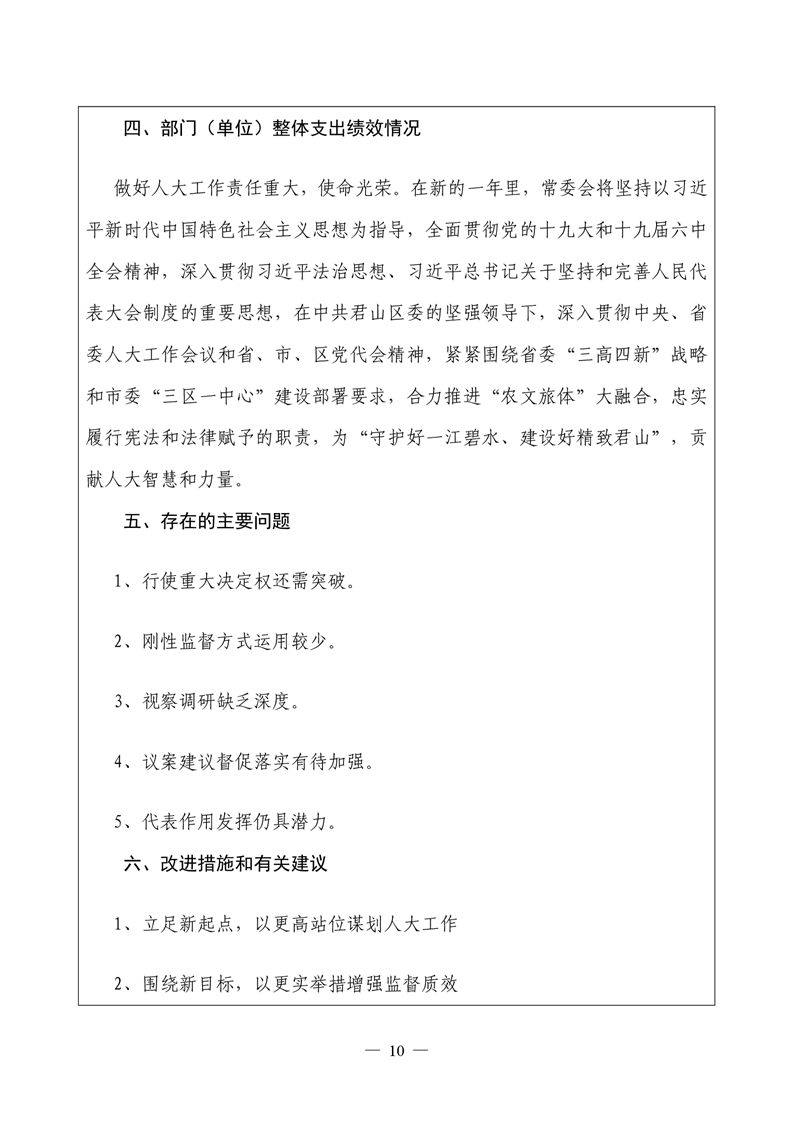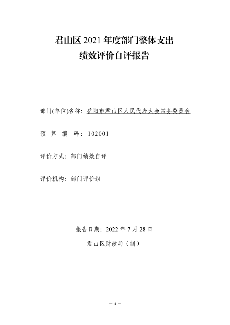 君山区2021年度人民代表大会常务委员会整体支出绩效评价自评报告