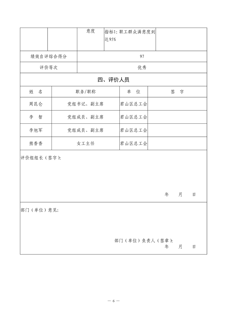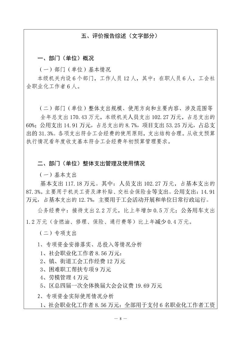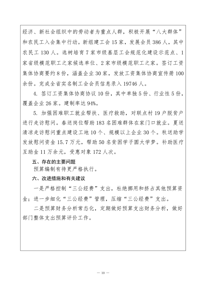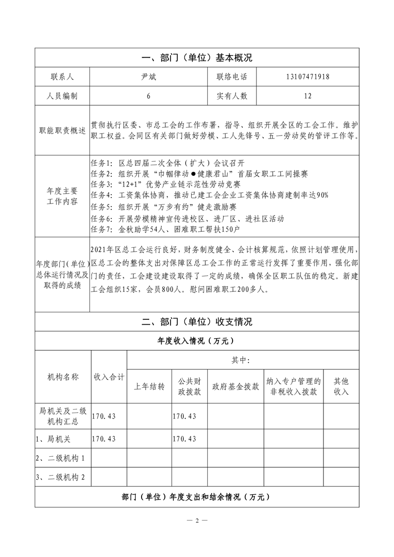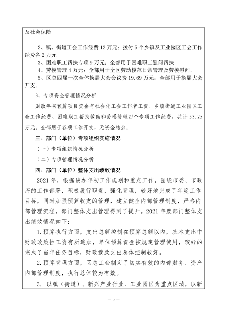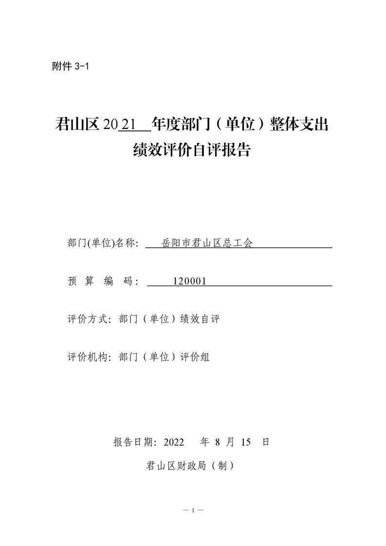 君山区2021年度君山区总工会整体支出绩效评价自评报告