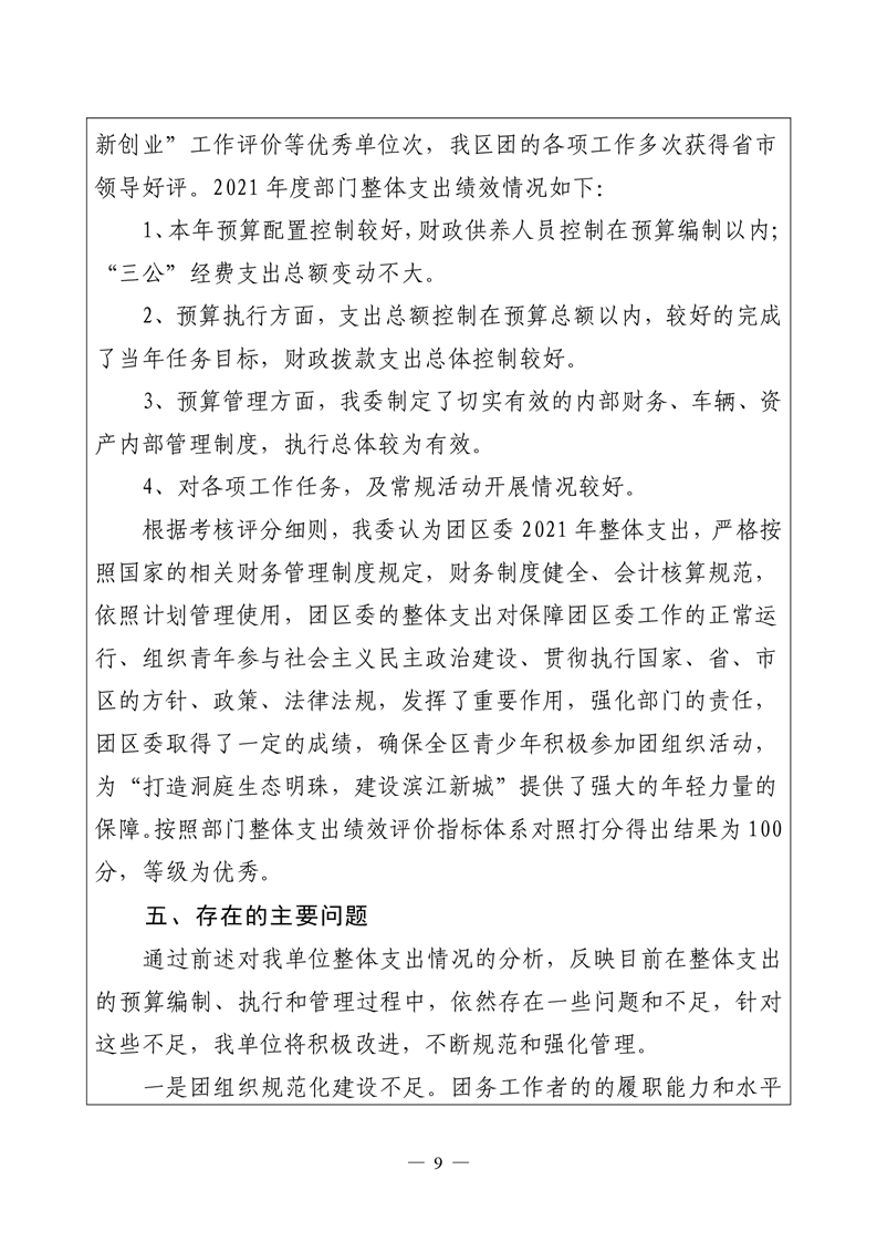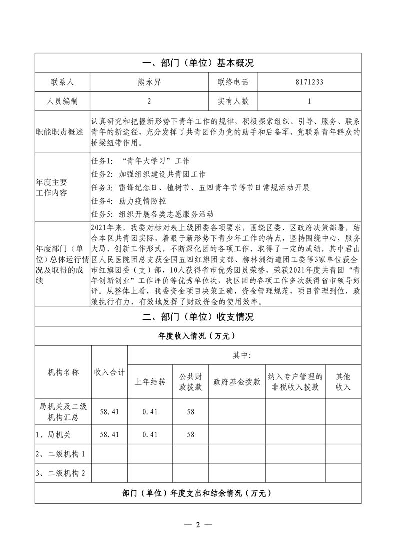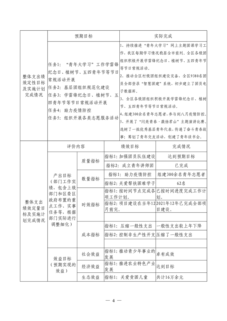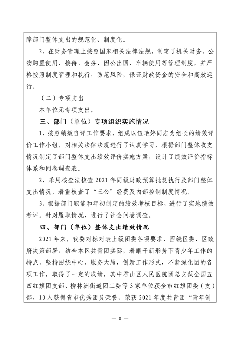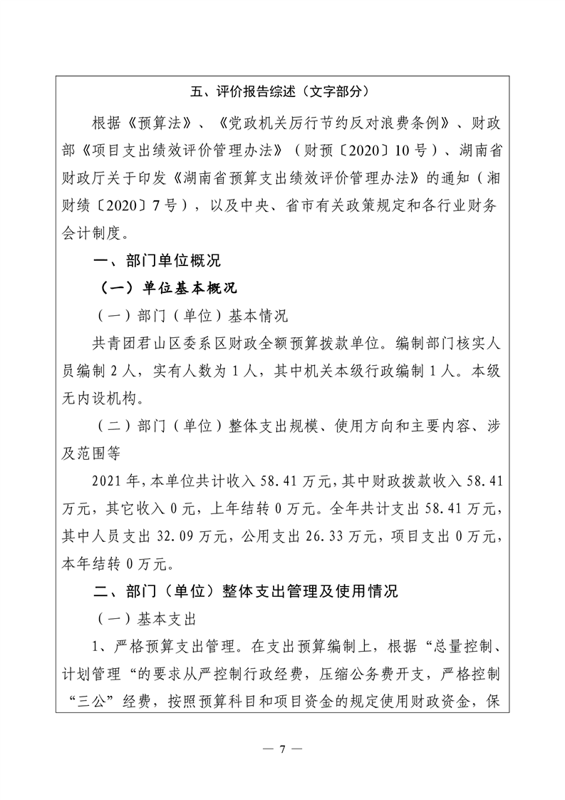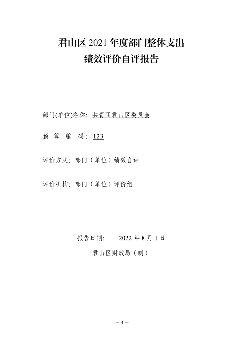 君山区2021年度共青团君山区委员会整体支出绩效评价自评报告