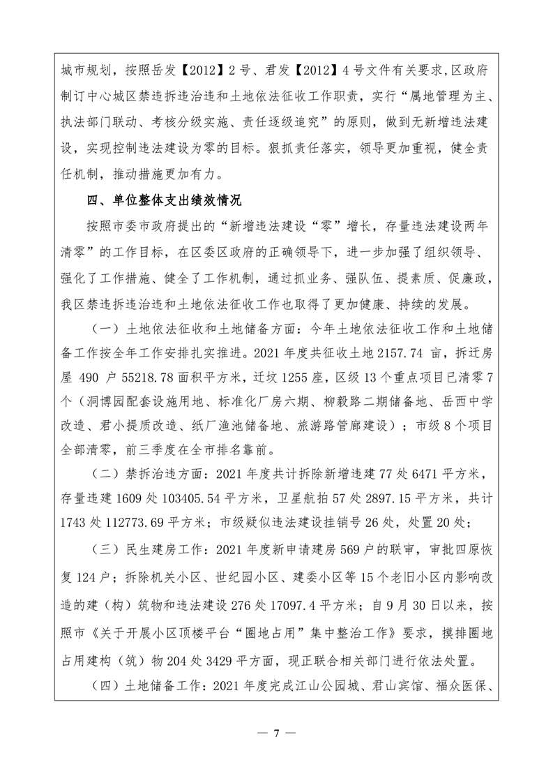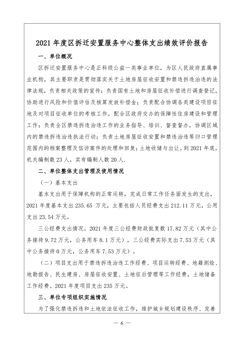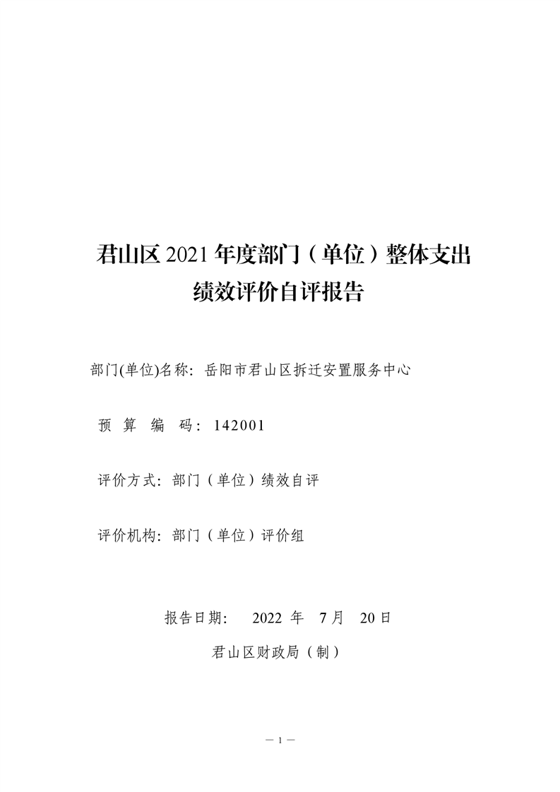 君山区2021年度拆迁安置服务中心整体支出绩效评价自评报告