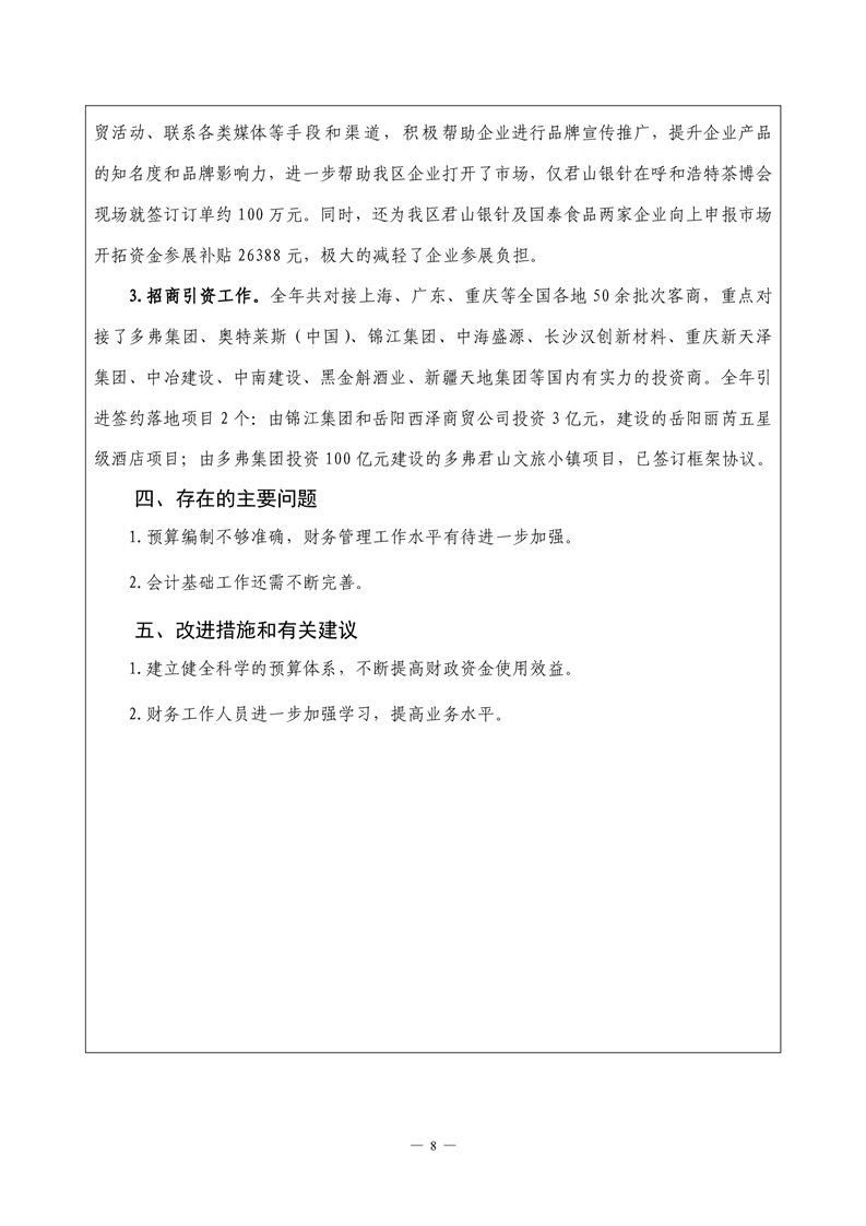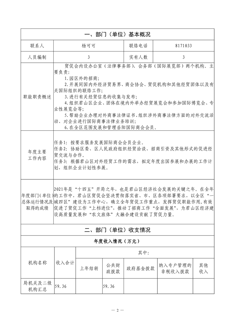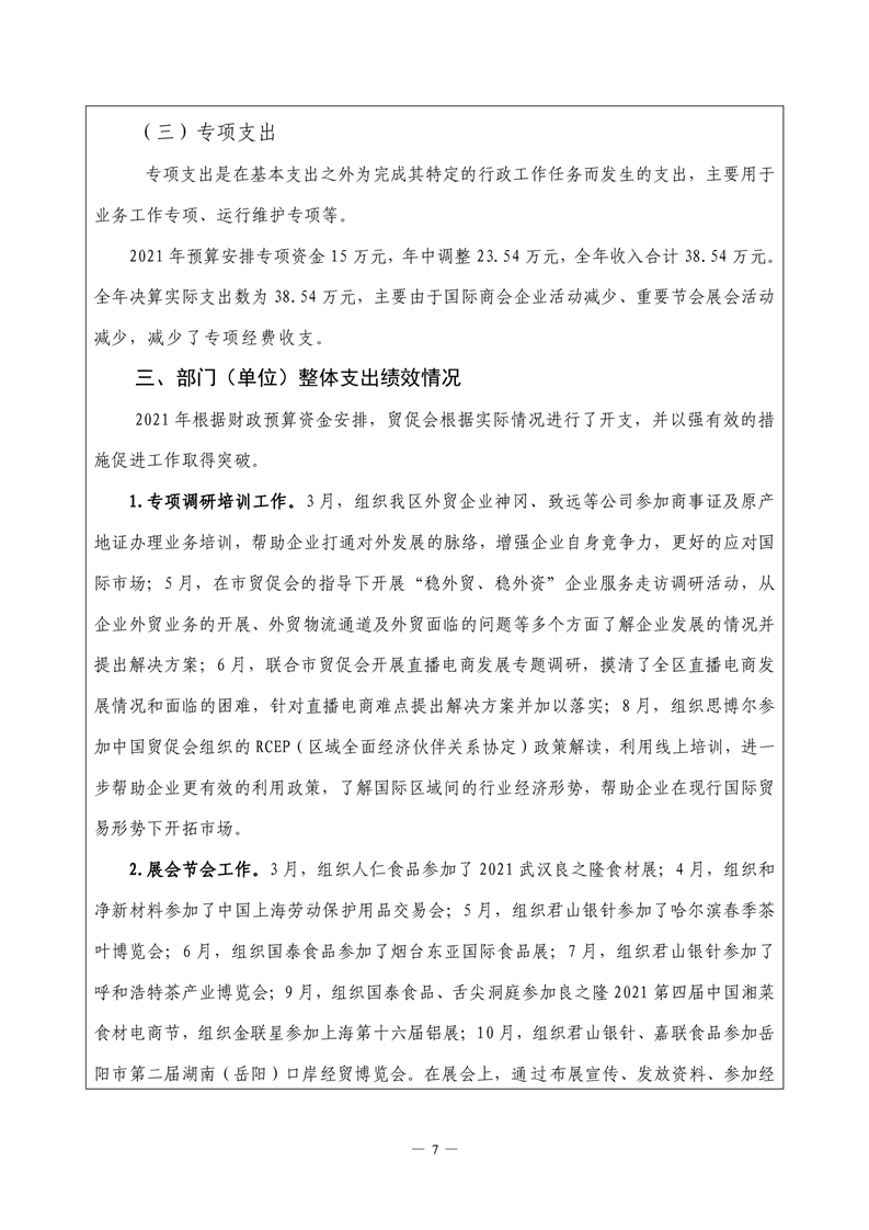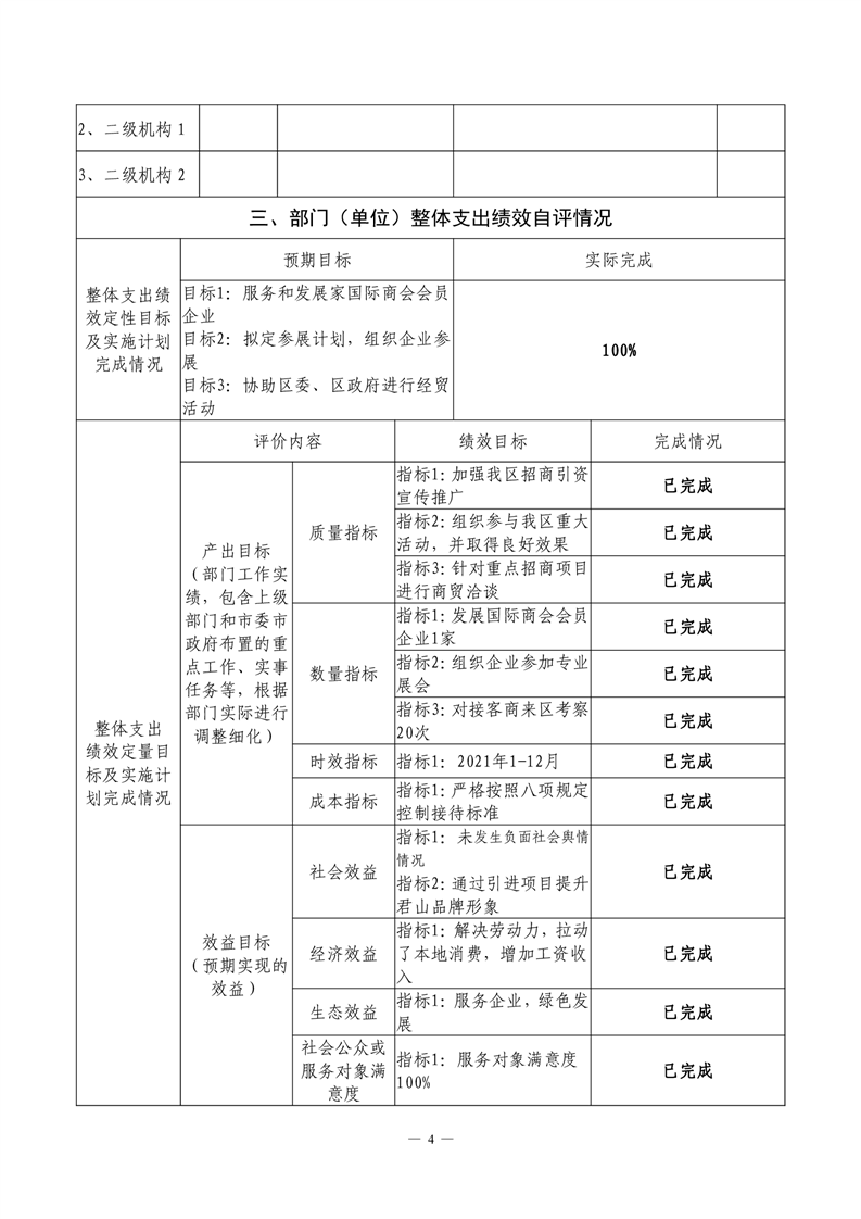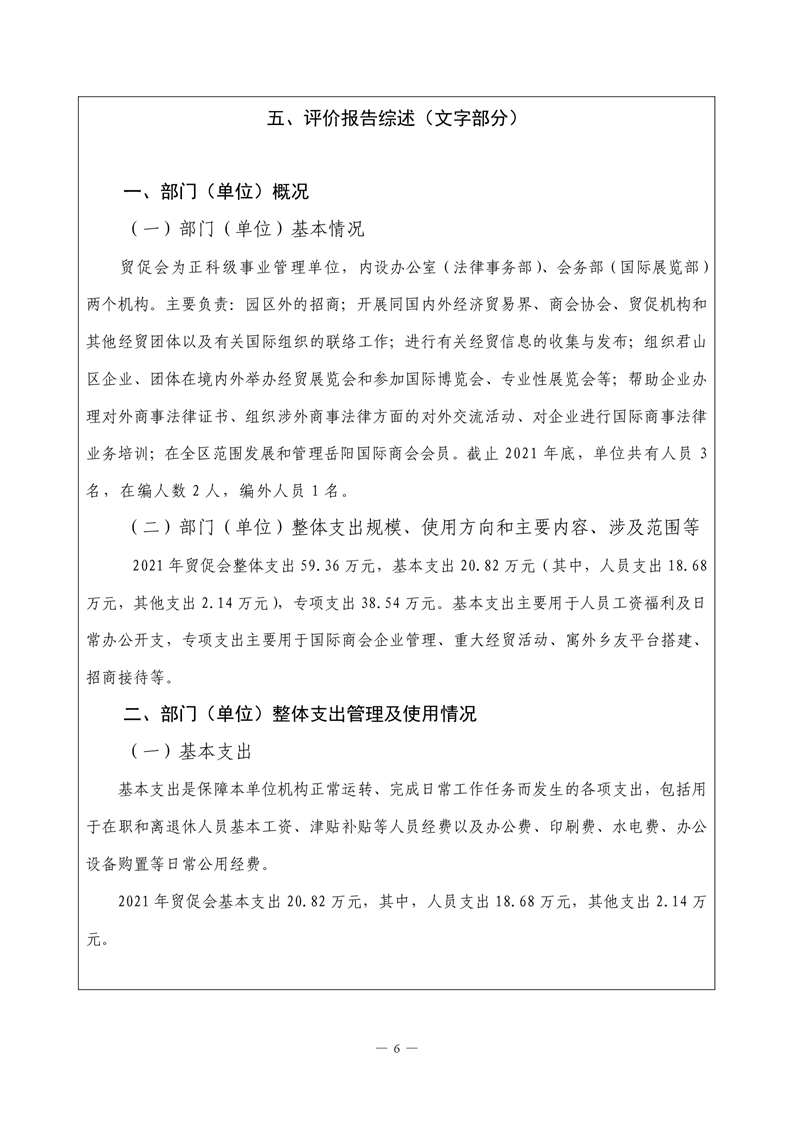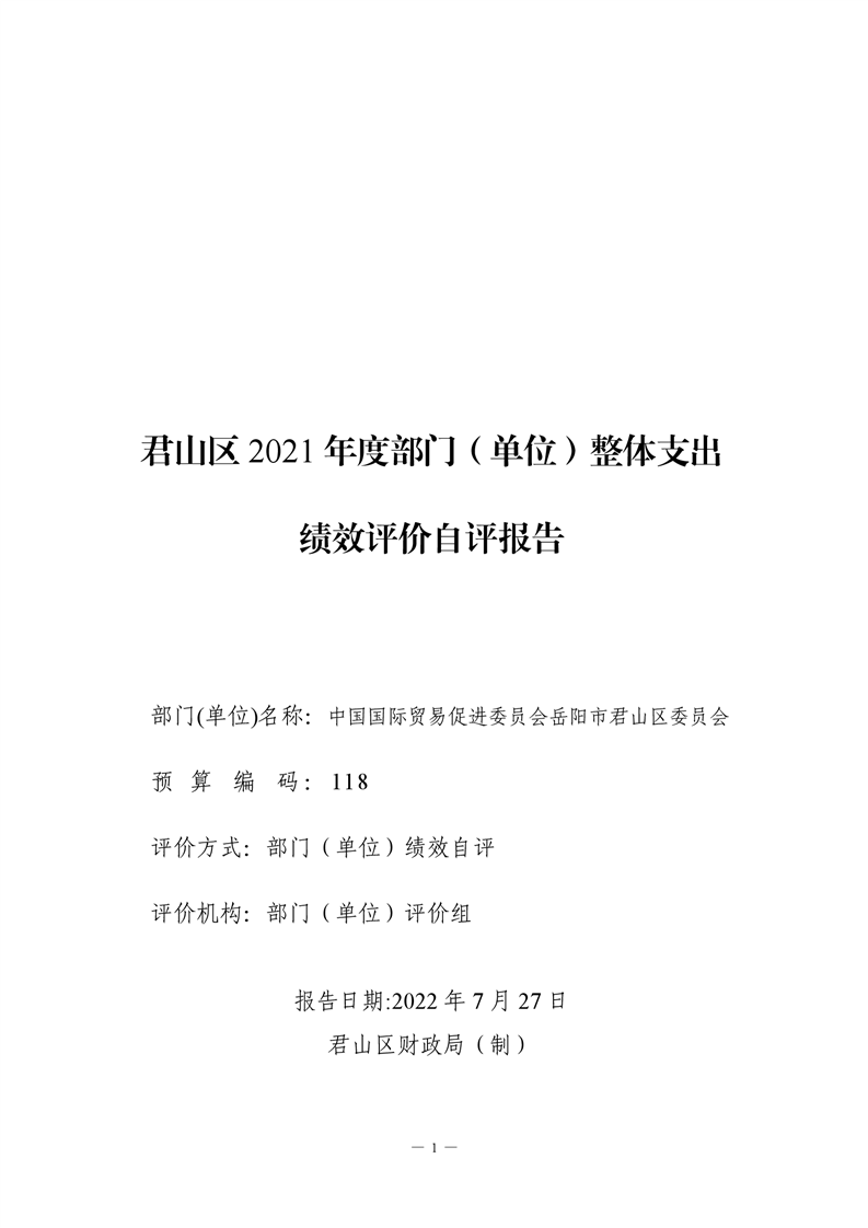 君山区2021年度贸促会整体支出绩效评价自评报告