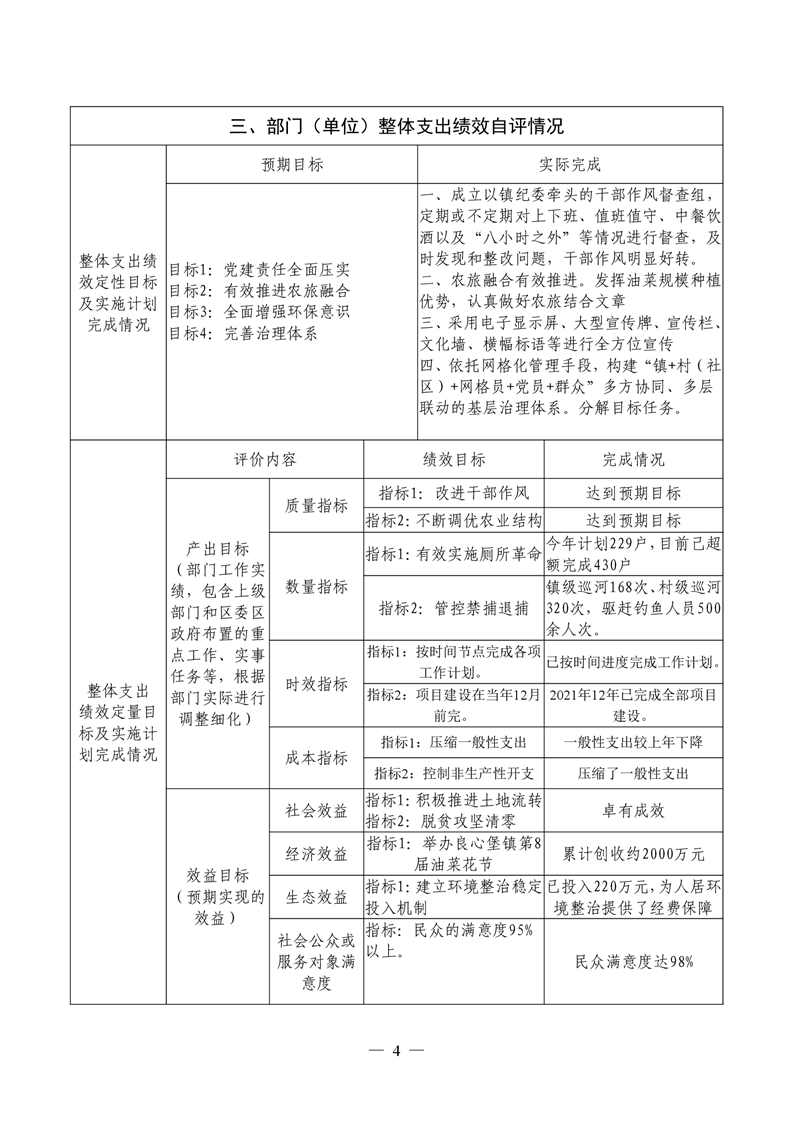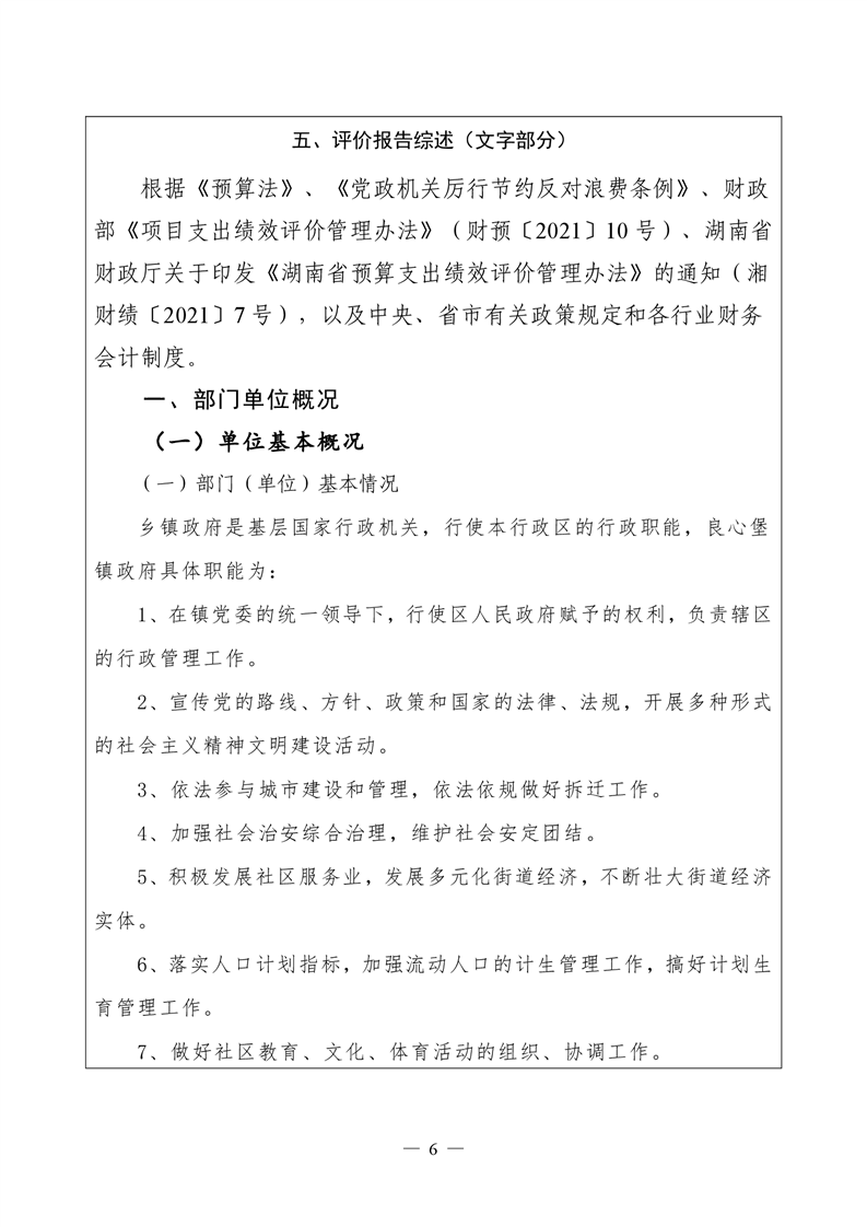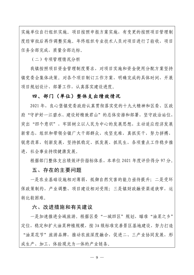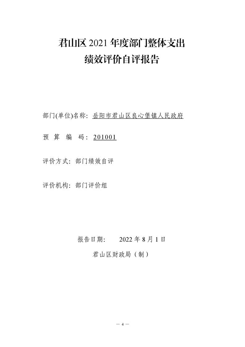 君山区2021年度良心堡镇整体支出绩效评价自评报告