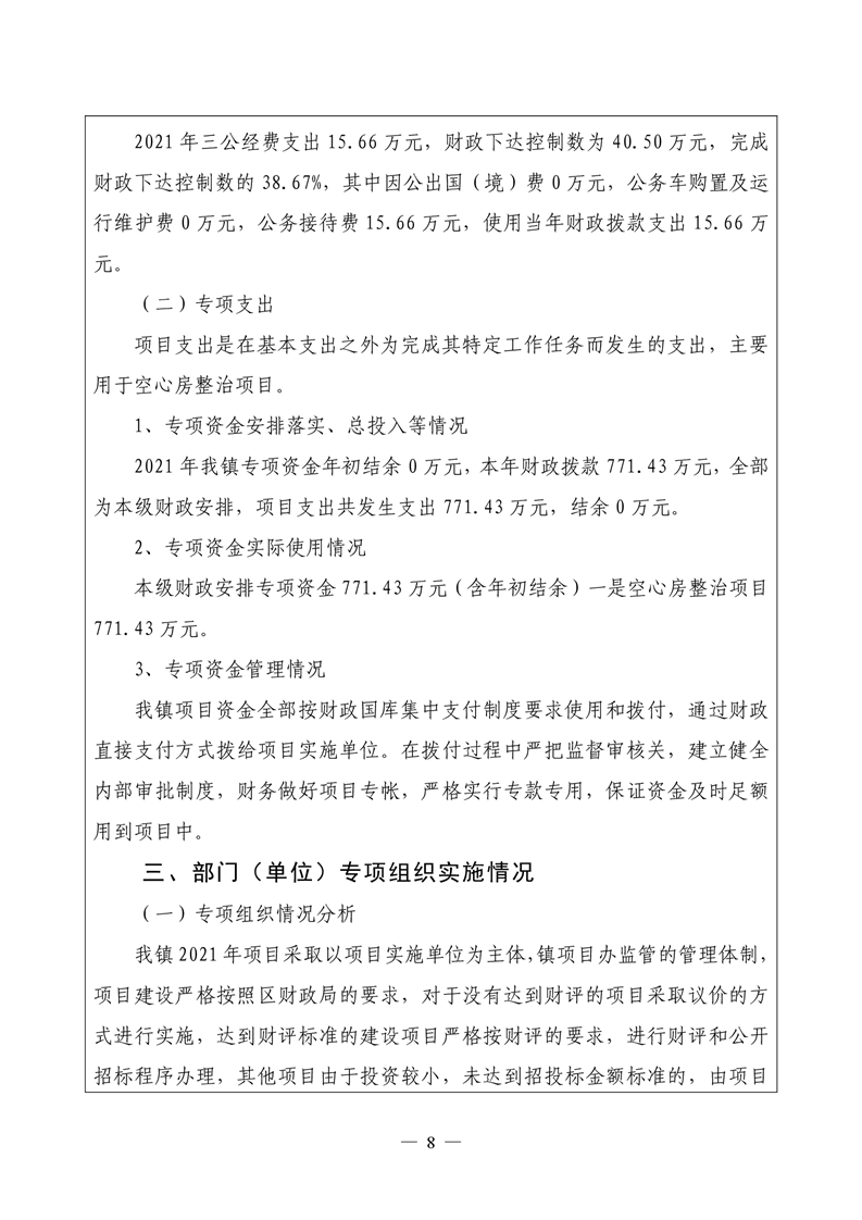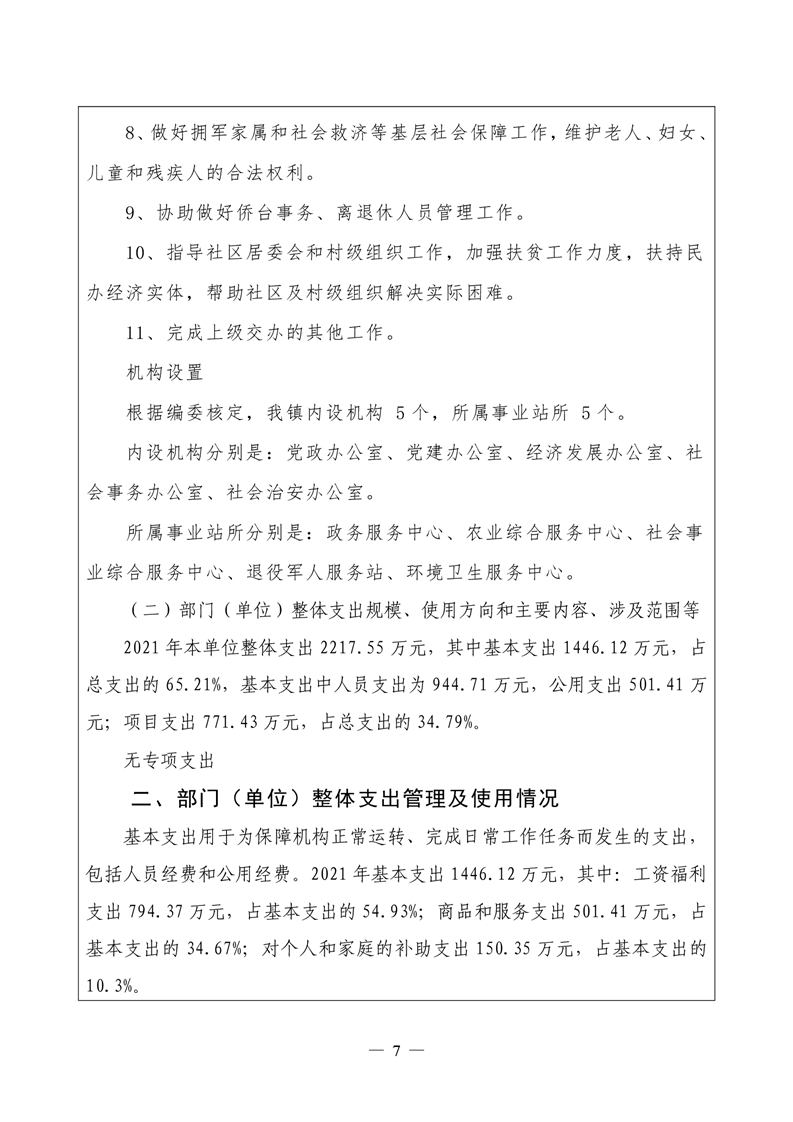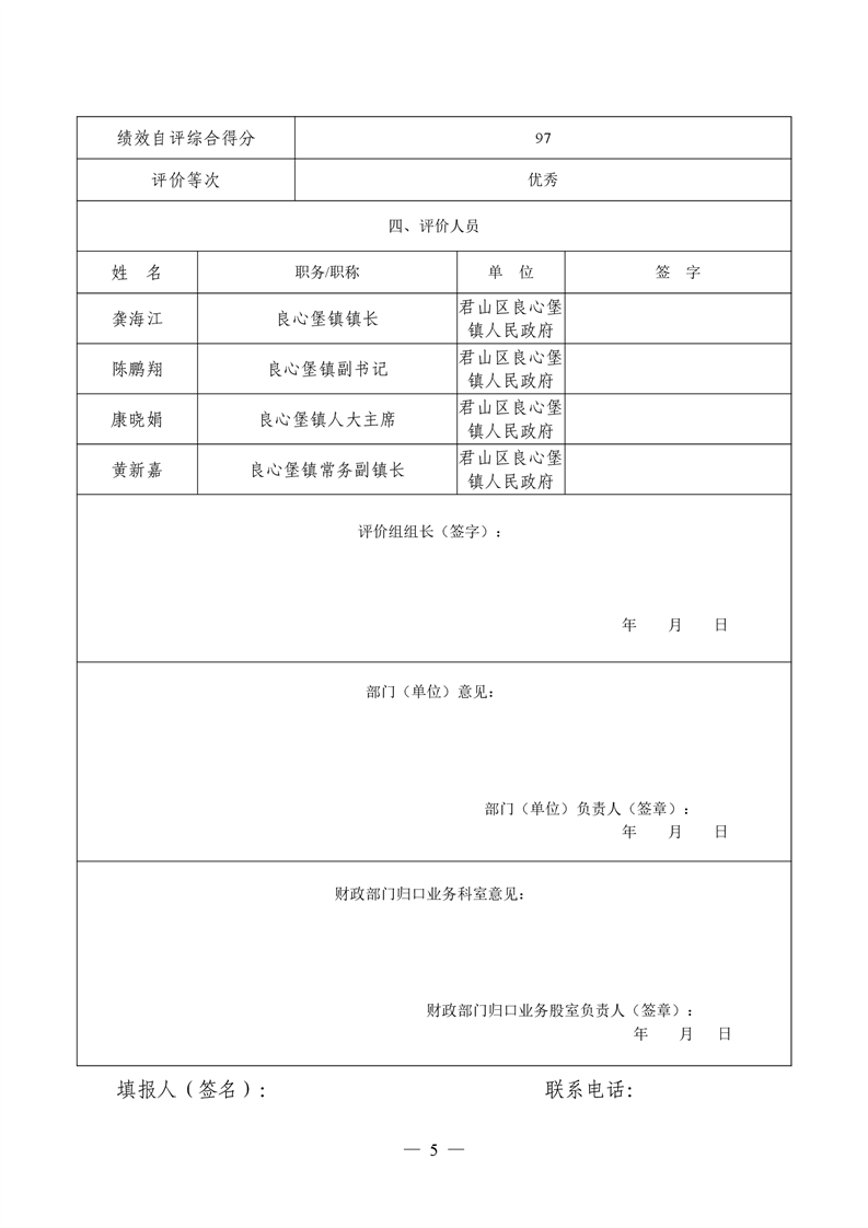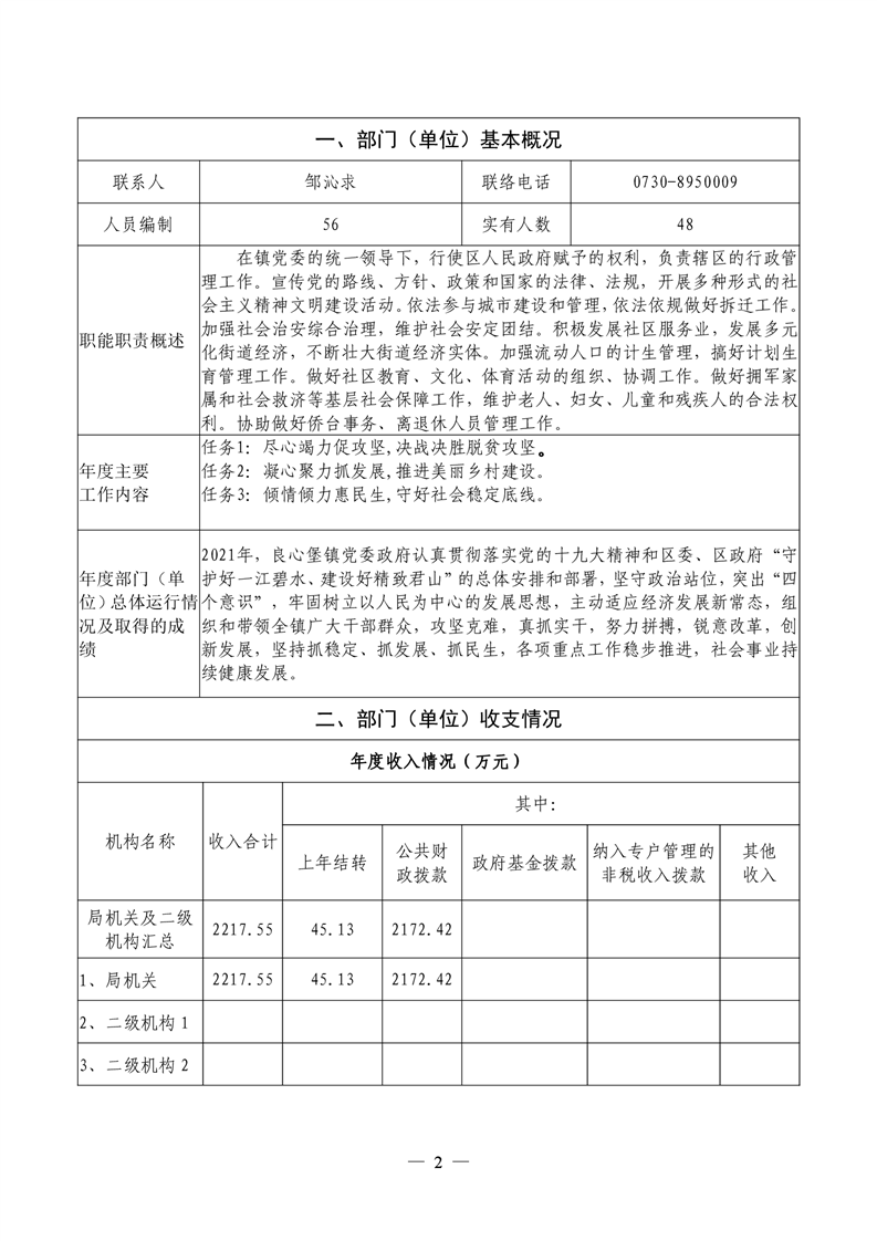君山区2021年度良心堡镇整体支出绩效评价自评报告