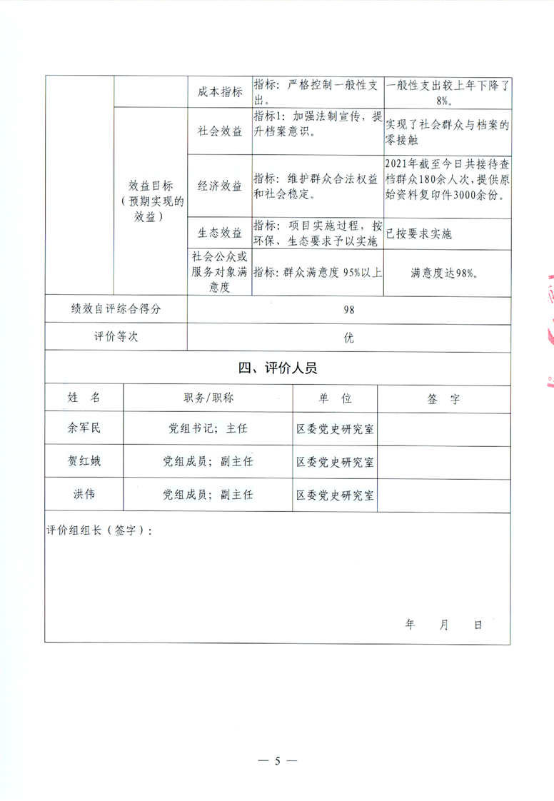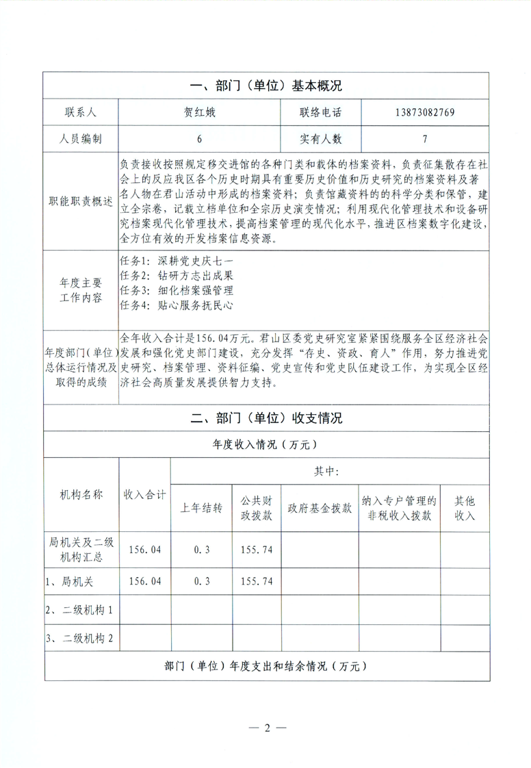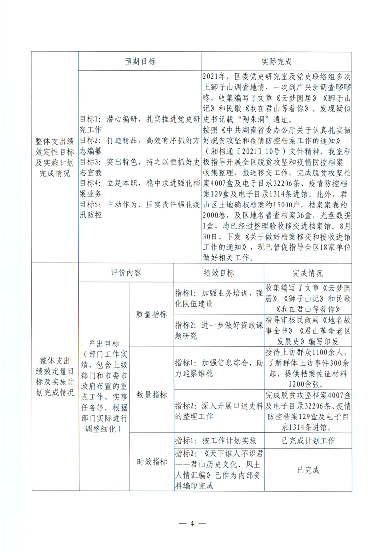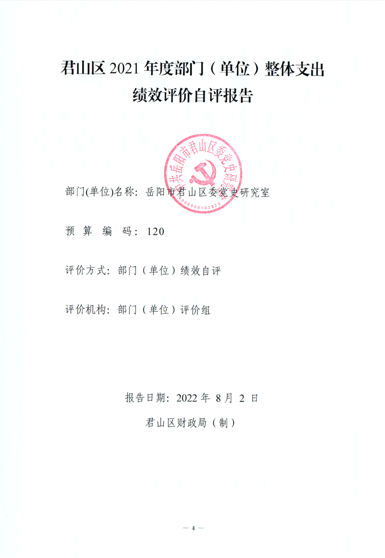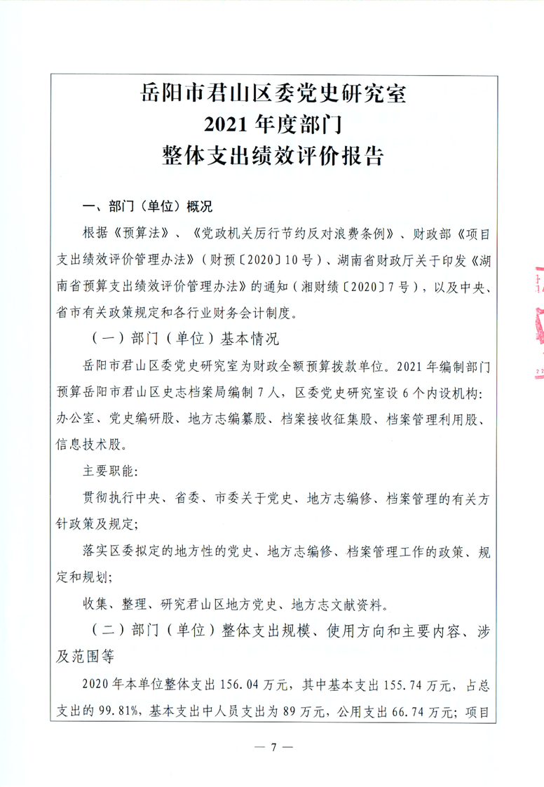 君山区2021年度区委党史研究室整体支出绩效评价自评报告