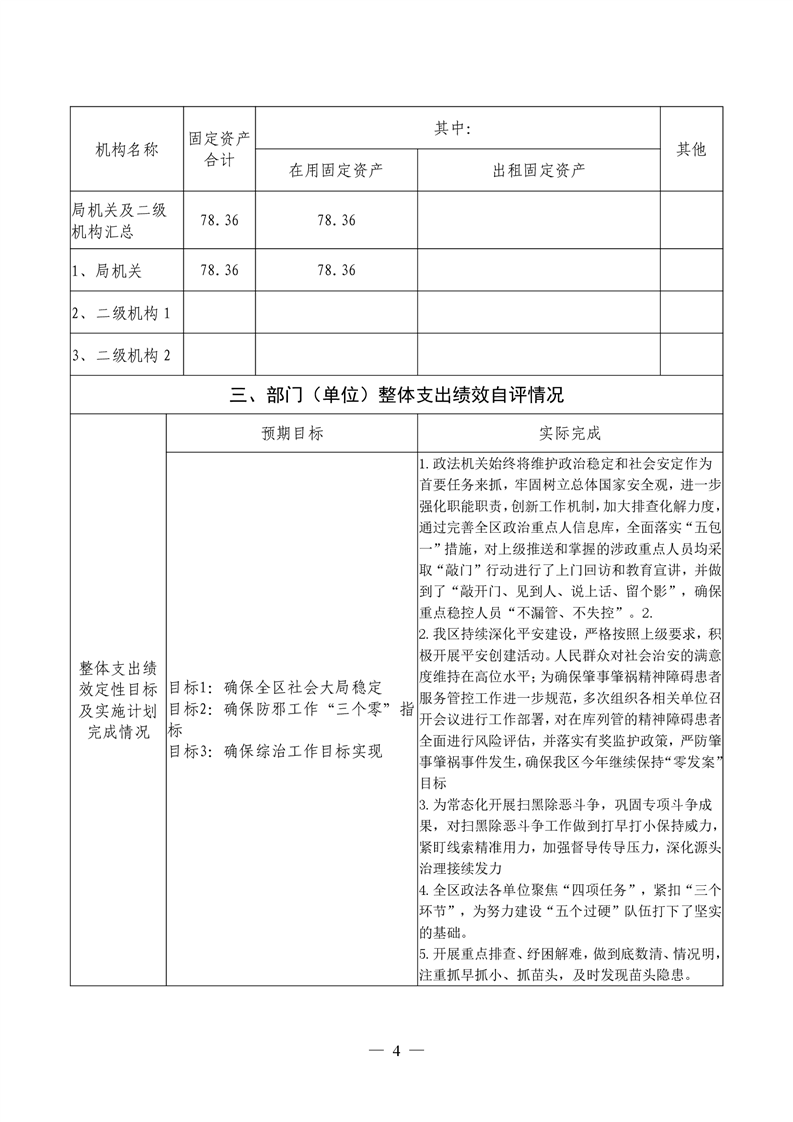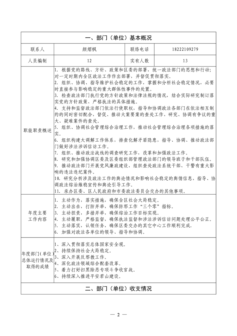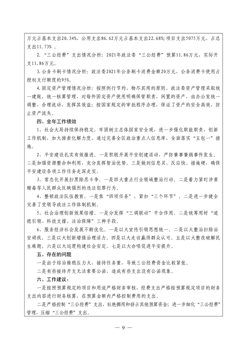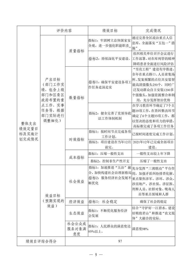 君山区2021年度君山区委政法委员会整体支出绩效评价自评报告