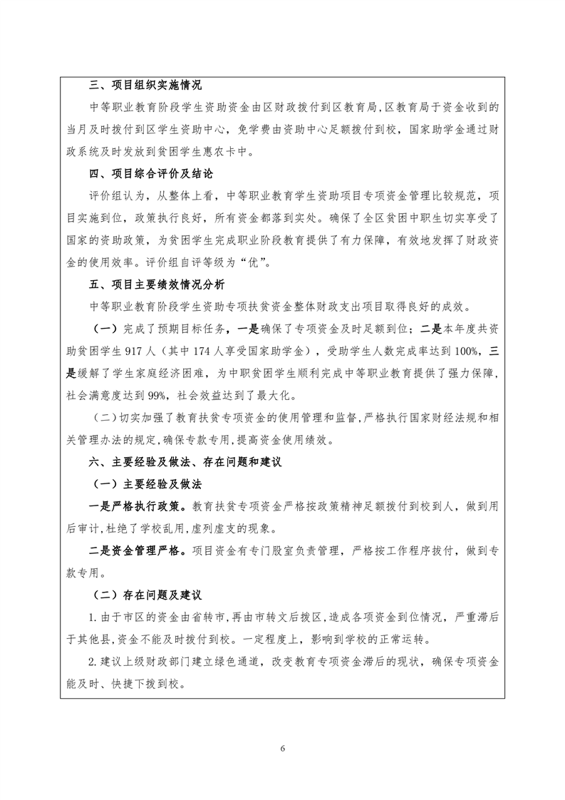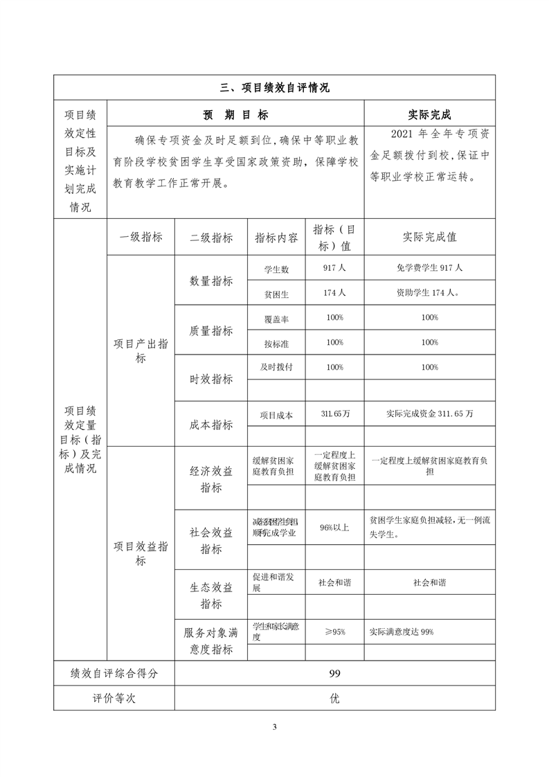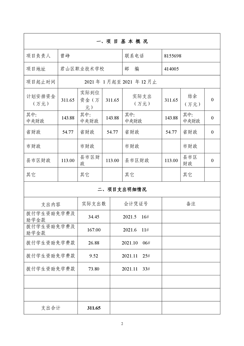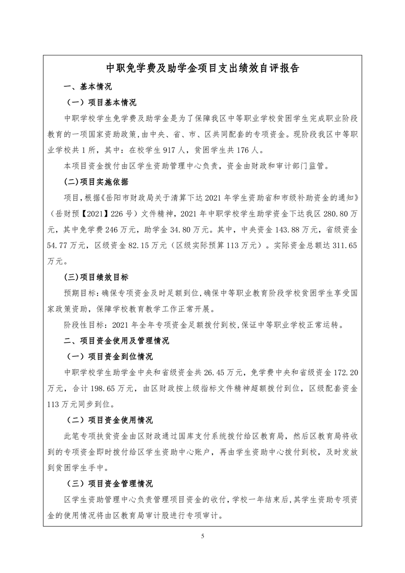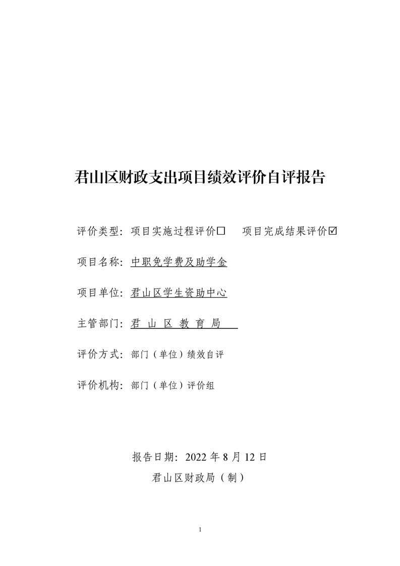 2021年度君山区教育局中职免学费及助学金项目绩效评价自评报告