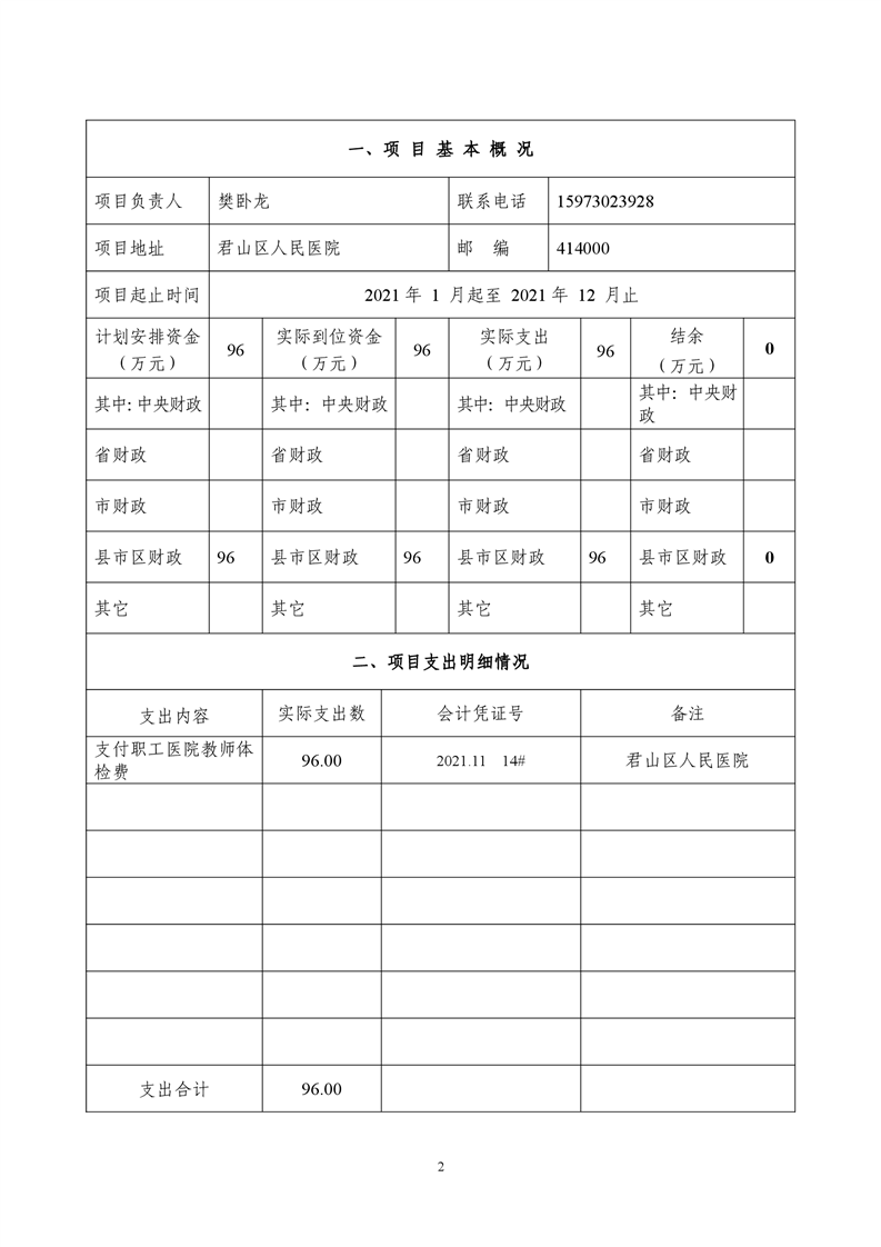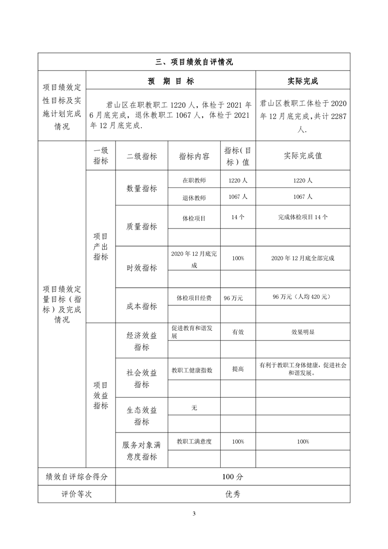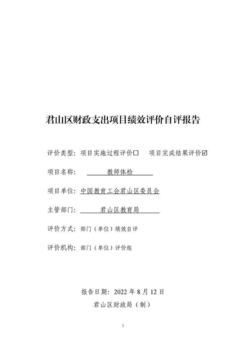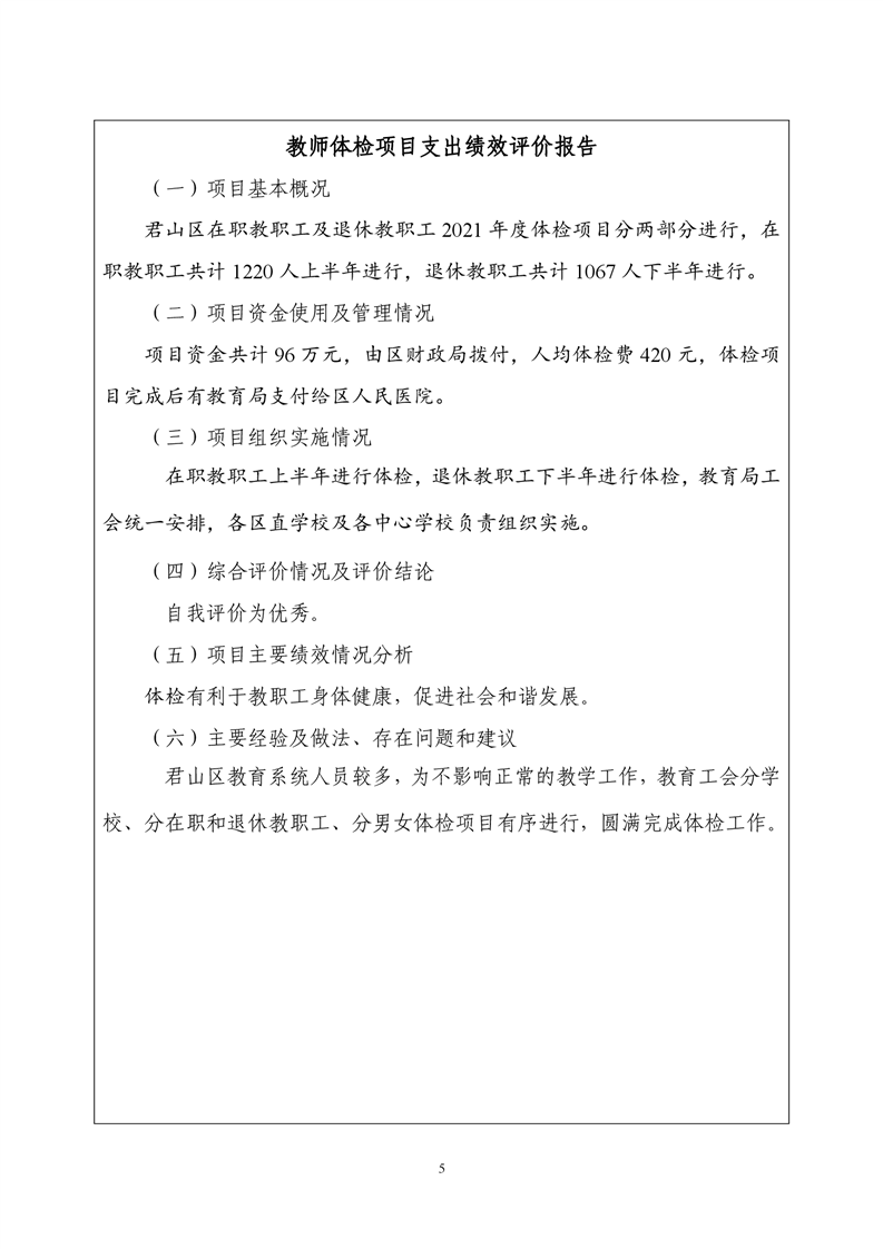 2021年度君山区教育局教师体检项目绩效评价自评报告