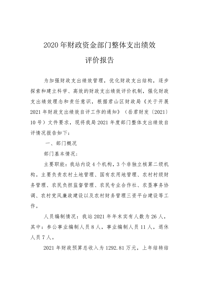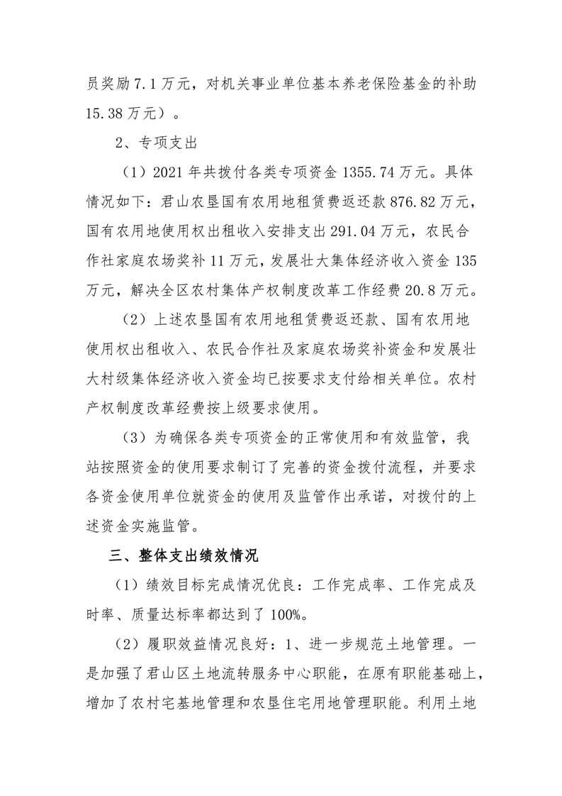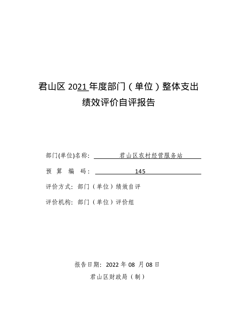 君山区2021年度农村经营服务站整体支出绩效评价自评报告