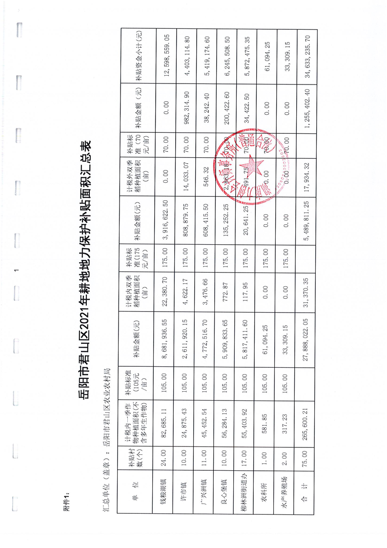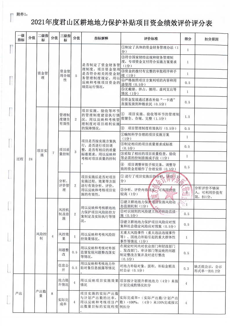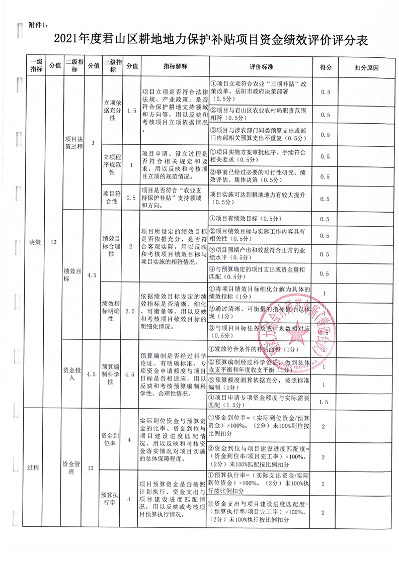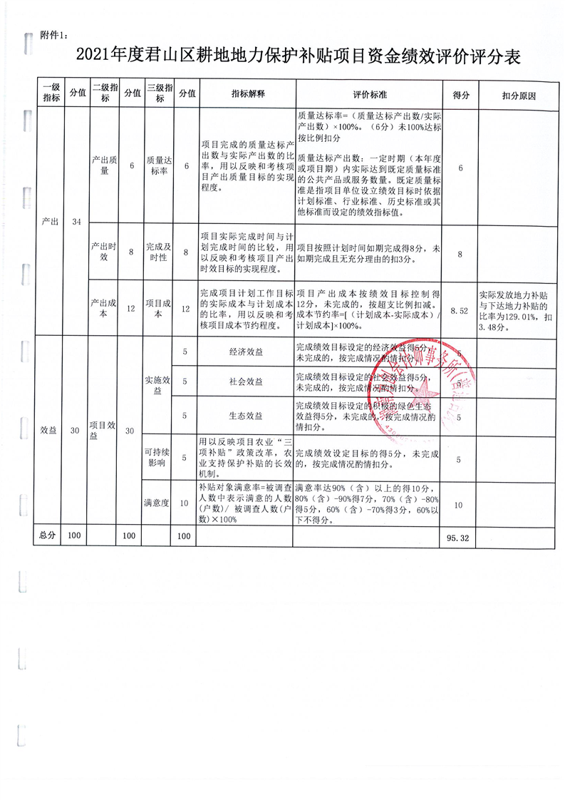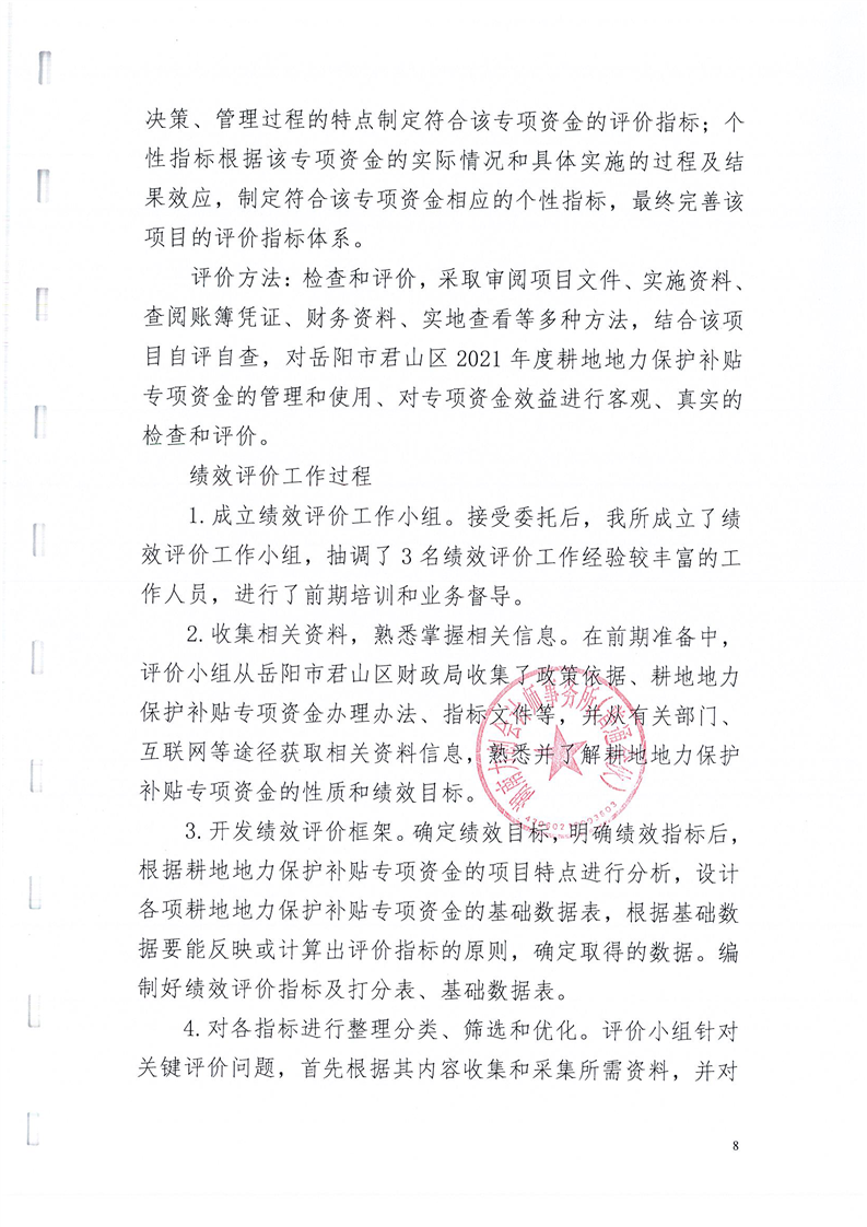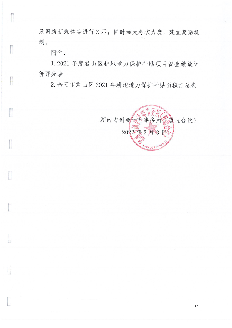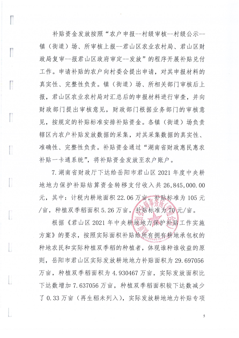 岳阳市君山区2021年度耕地地力保护补贴专项资金绩效评价报告书